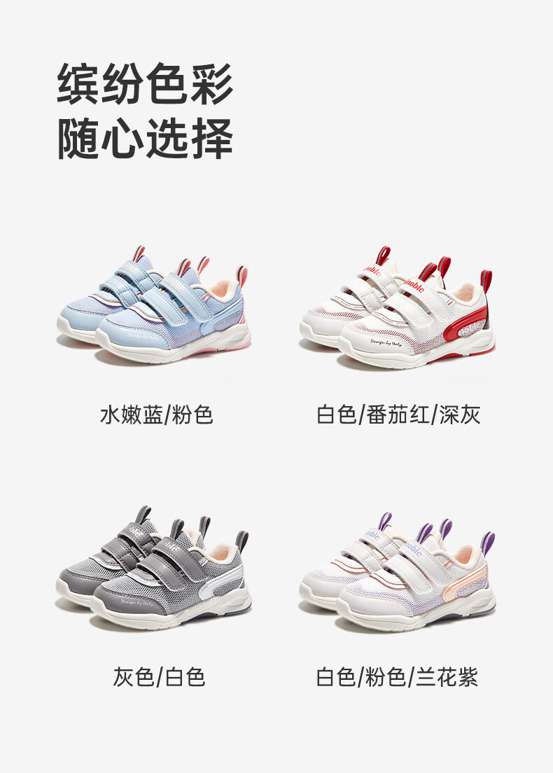 基诺浦(ginoble)学步鞋 春季1-5岁男女宝宝软底小童鞋机能鞋耐磨春秋款GW1289 水嫩蓝/粉色 24 150mm 脚长14.6-15.5cm