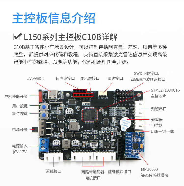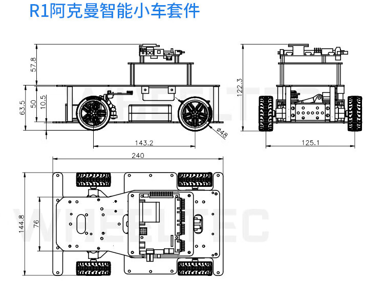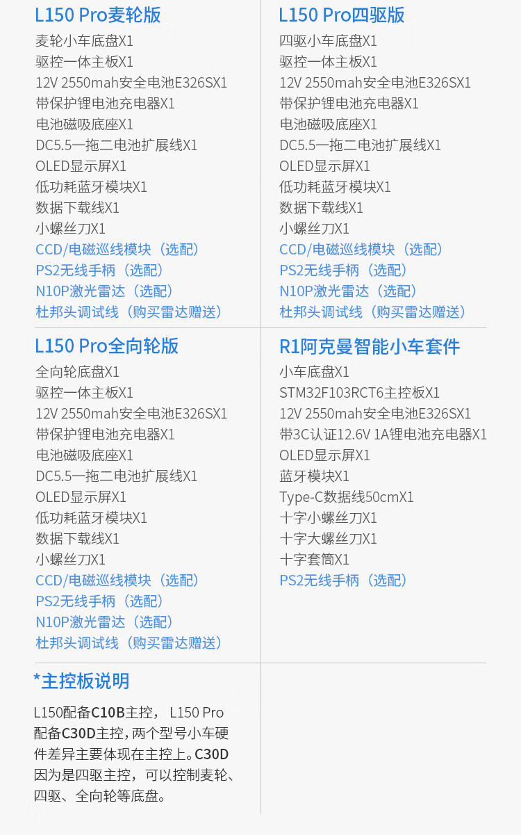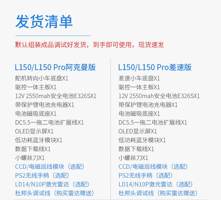 WHEELTEC STM32激光雷达巡线避障智能小车L150避障跟随视觉巡线寻迹智能机器人编程APP遥控底盘 L150 Pro阿克曼版 含N10P