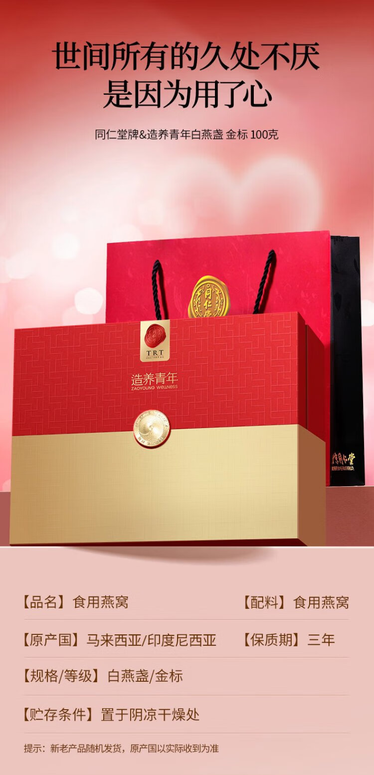 Caja de regalo de nido de pájaro seco Tongrentang, regalo de nutrición materna, regalo de año nuevo, regalo de cumpleaños para madre mayor, etiqueta plateada de calidad 250 g 250 g * 1 caja