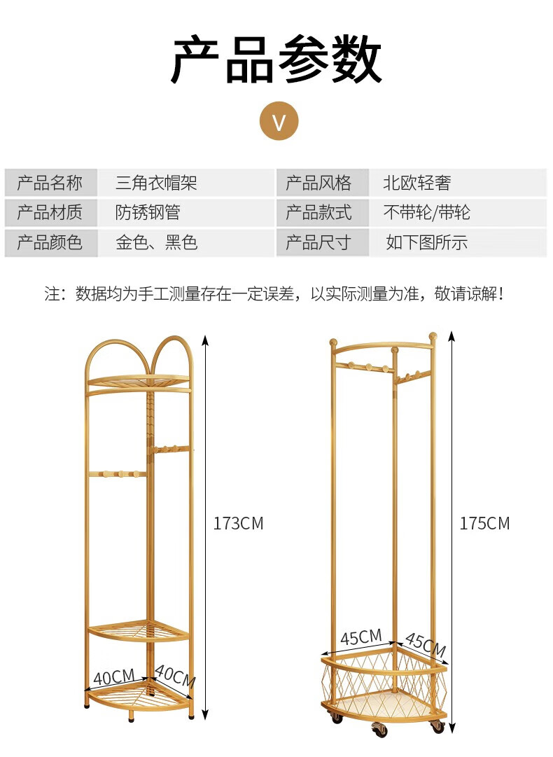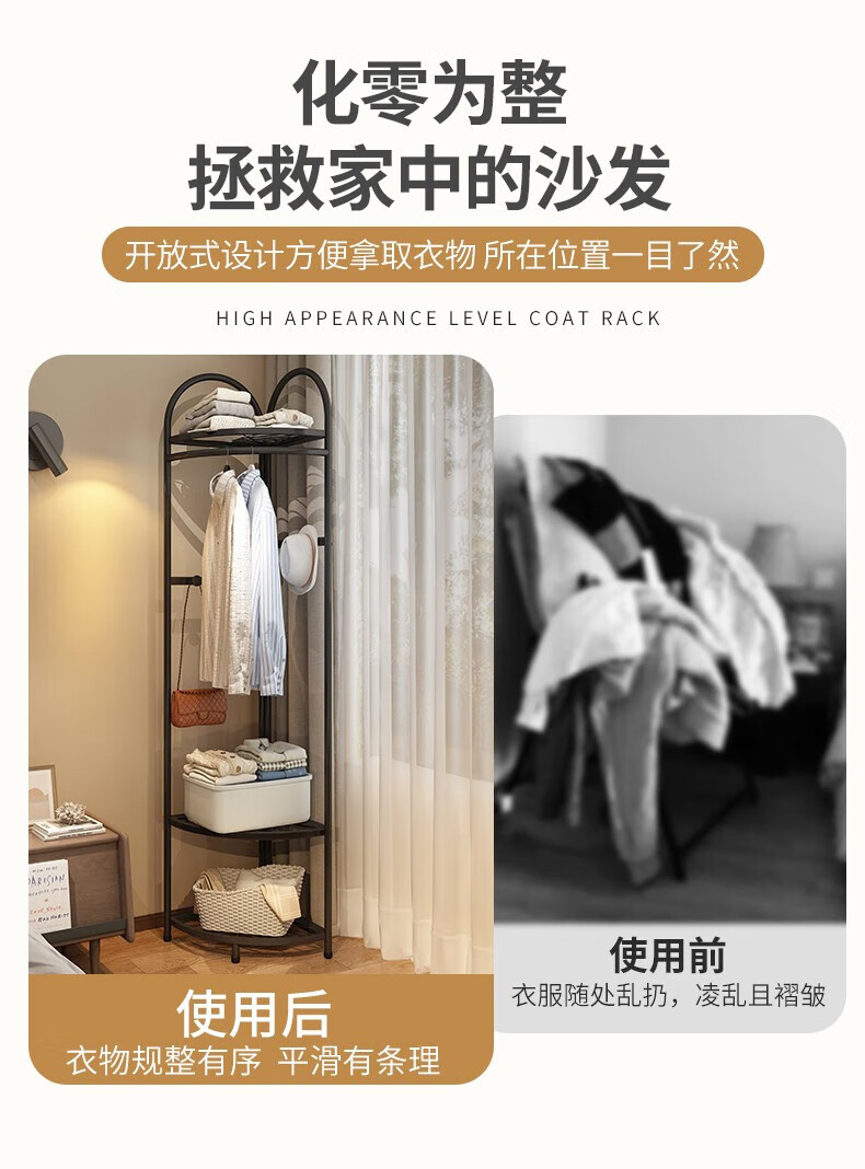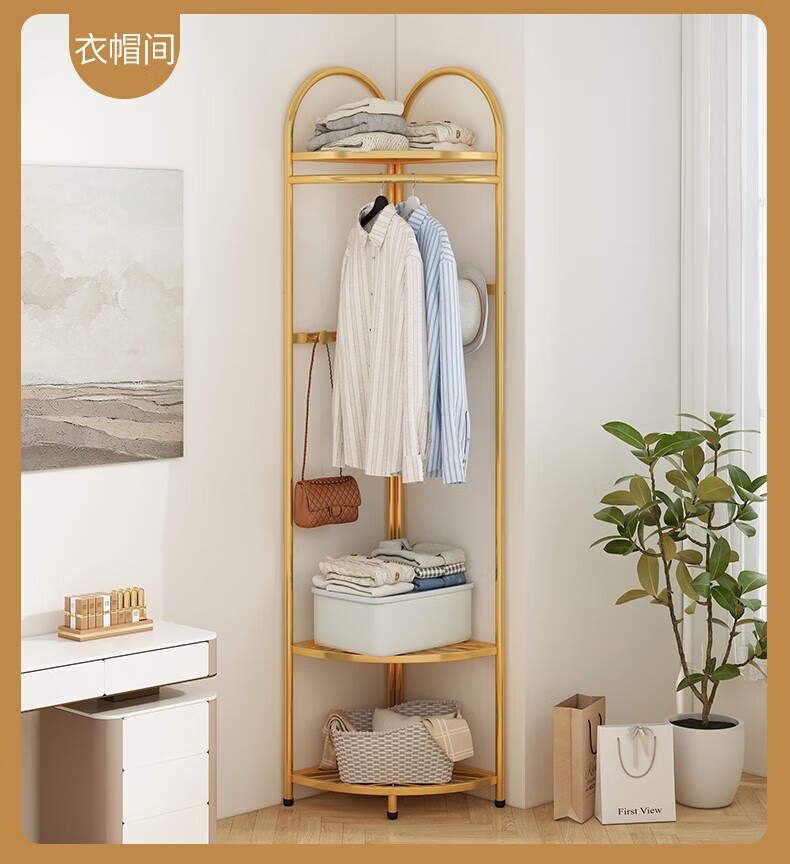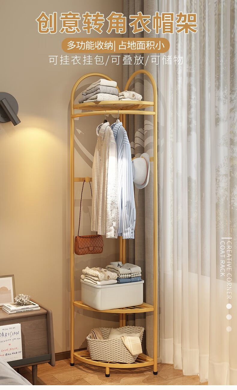 索尔诺(SuoErnuo)转角衣帽架卧室落地轻奢创意衣架靠墙挂衣架衣服架家用房间收纳架 衣帽架9858Y【黑色】