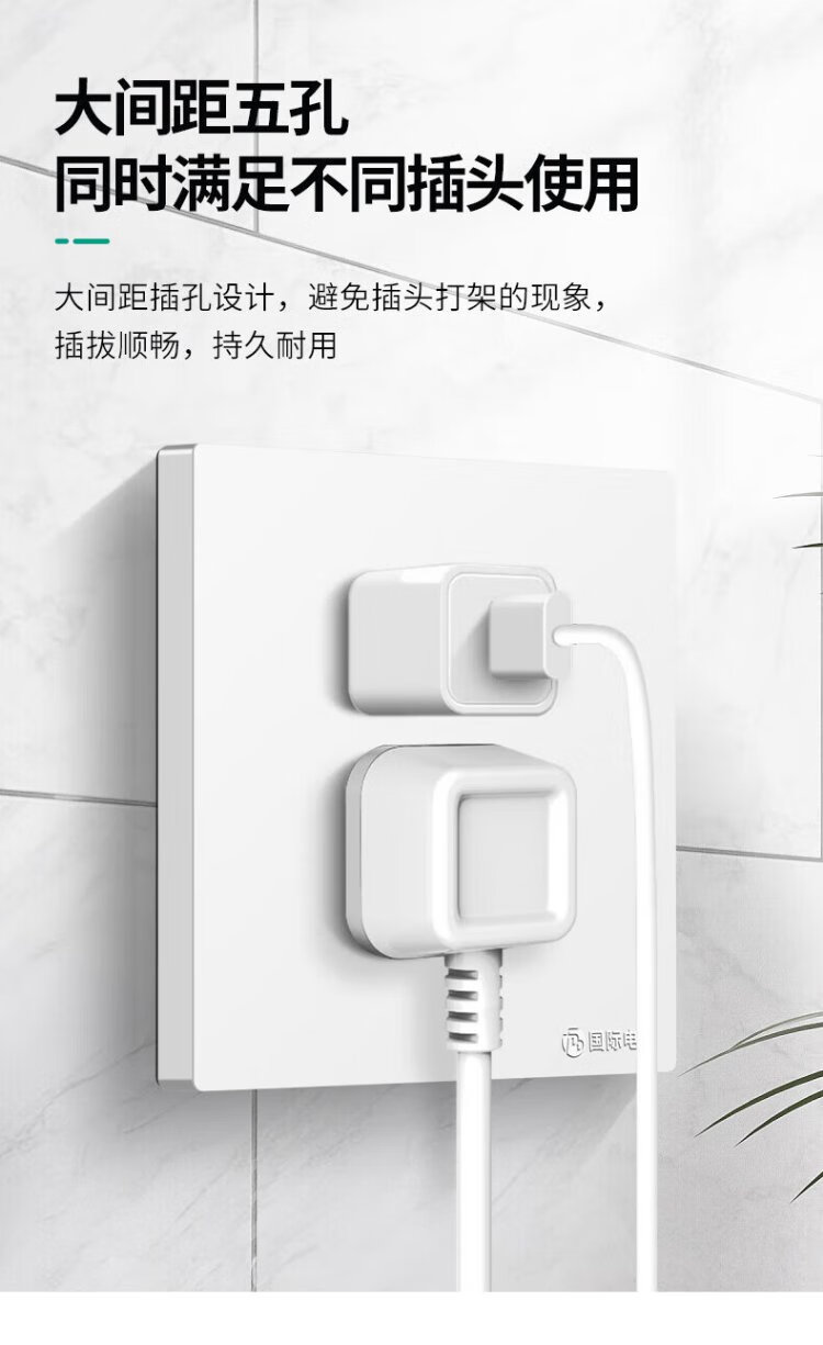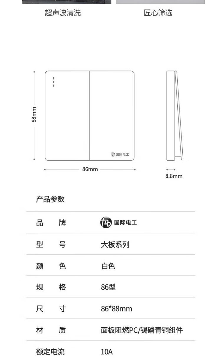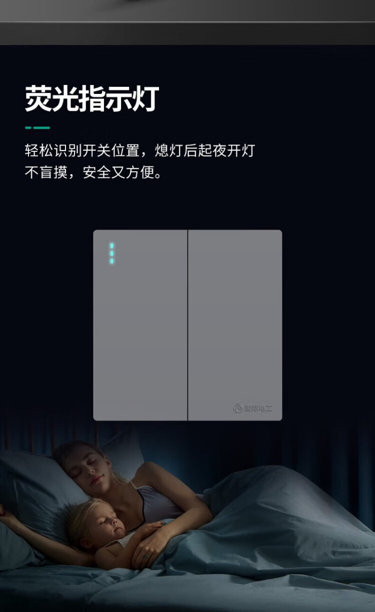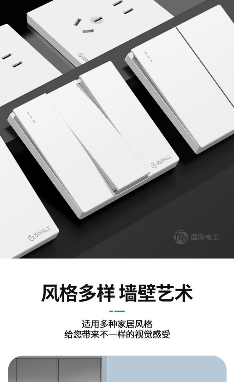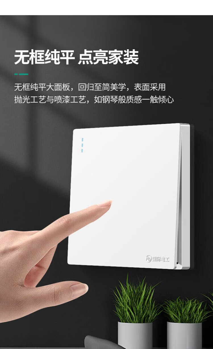 国际电工86型开关插座大面板墙壁暗装家用一开5五孔三孔空调插座白色 一开单控