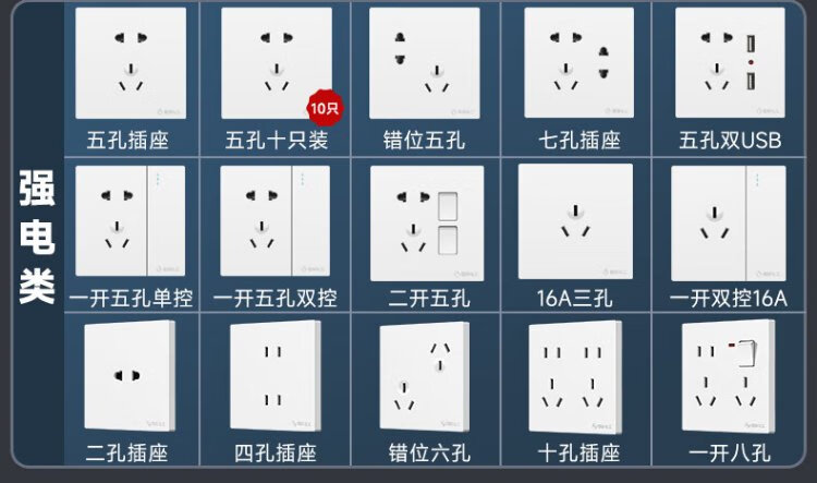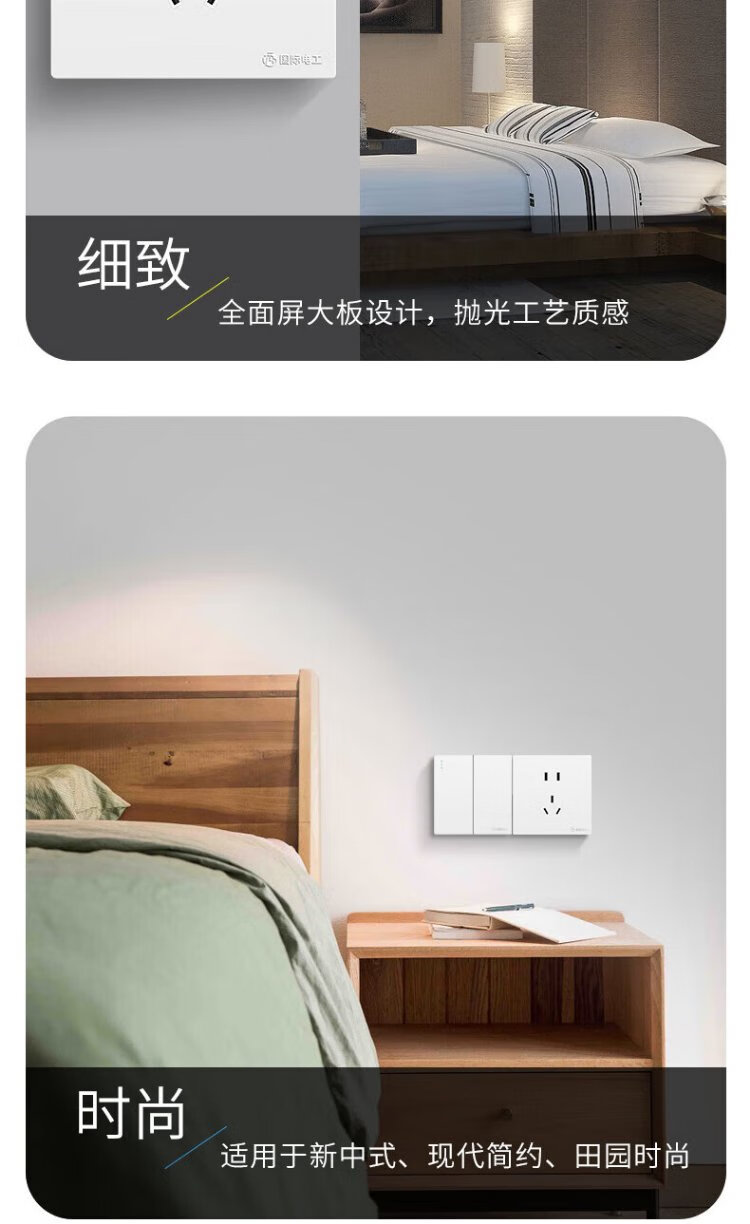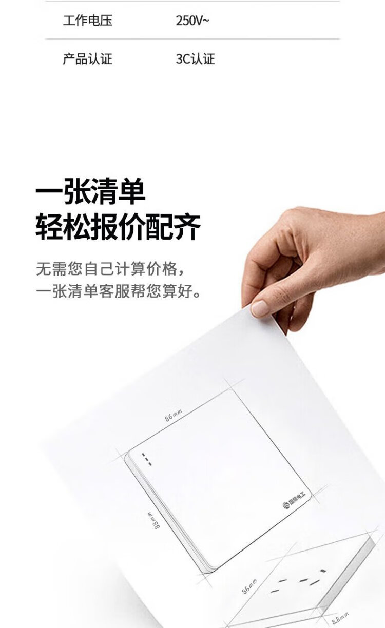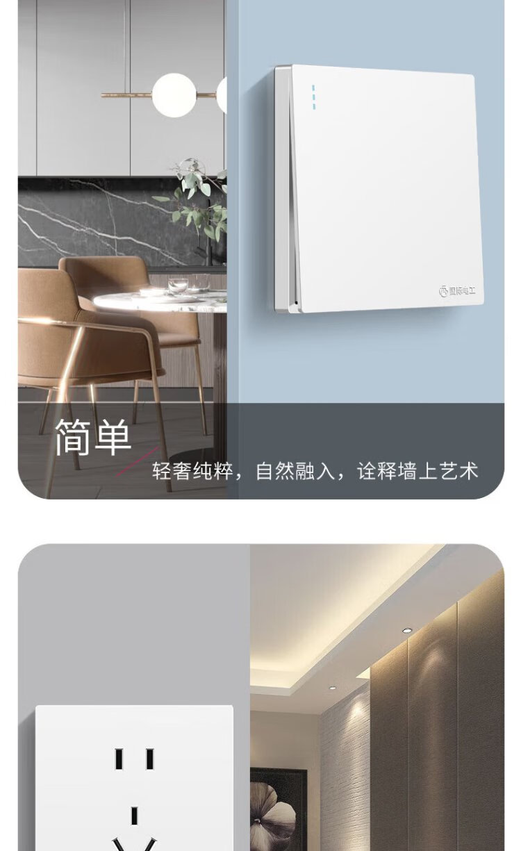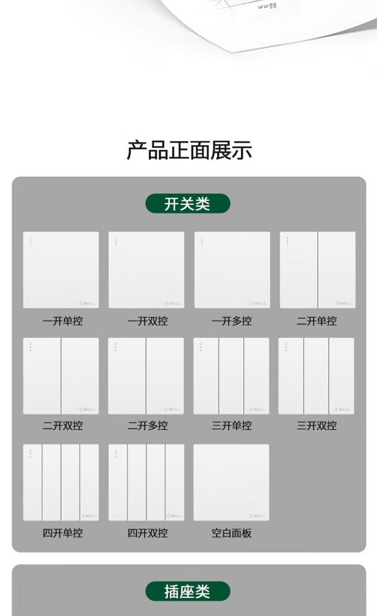 国际电工86型开关插座大面板墙壁暗装家用一开5五孔三孔空调插座白色 一开单控
