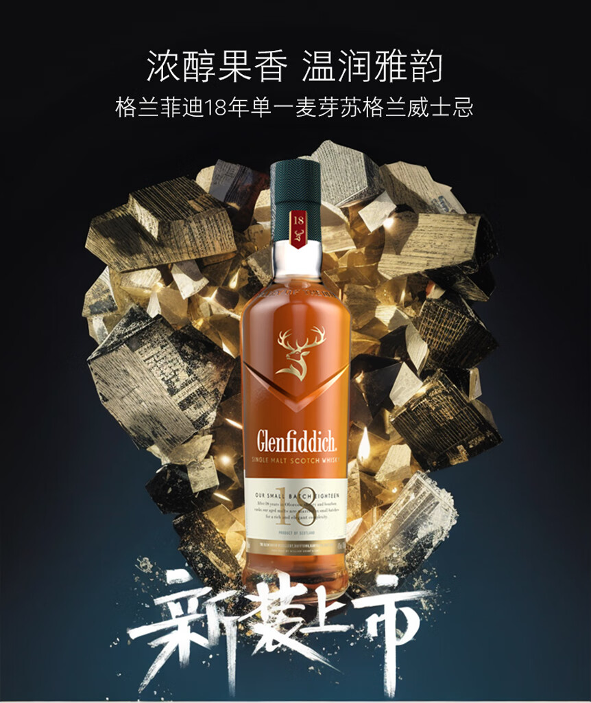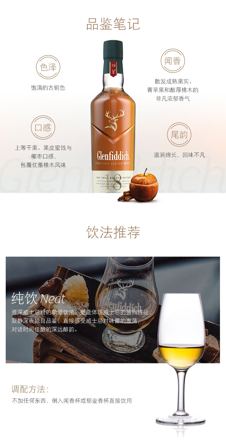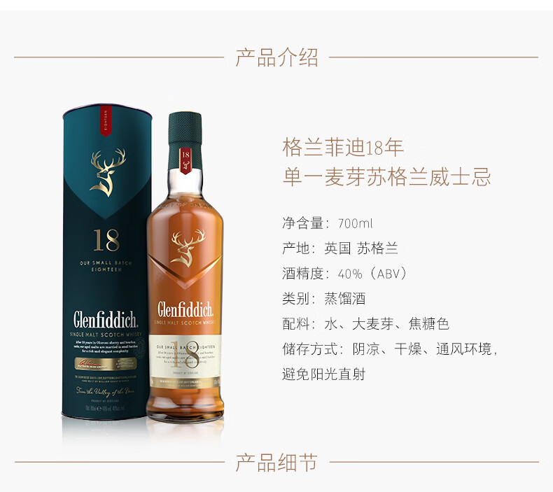 Glenfiddich (GLENFIDDICH) Escocia Edición Ultramar Whisky de malta única Reino Unido Área de producción de Speyside Botella original Importado En caja Glenfiddich 18 años 700 ml en caja