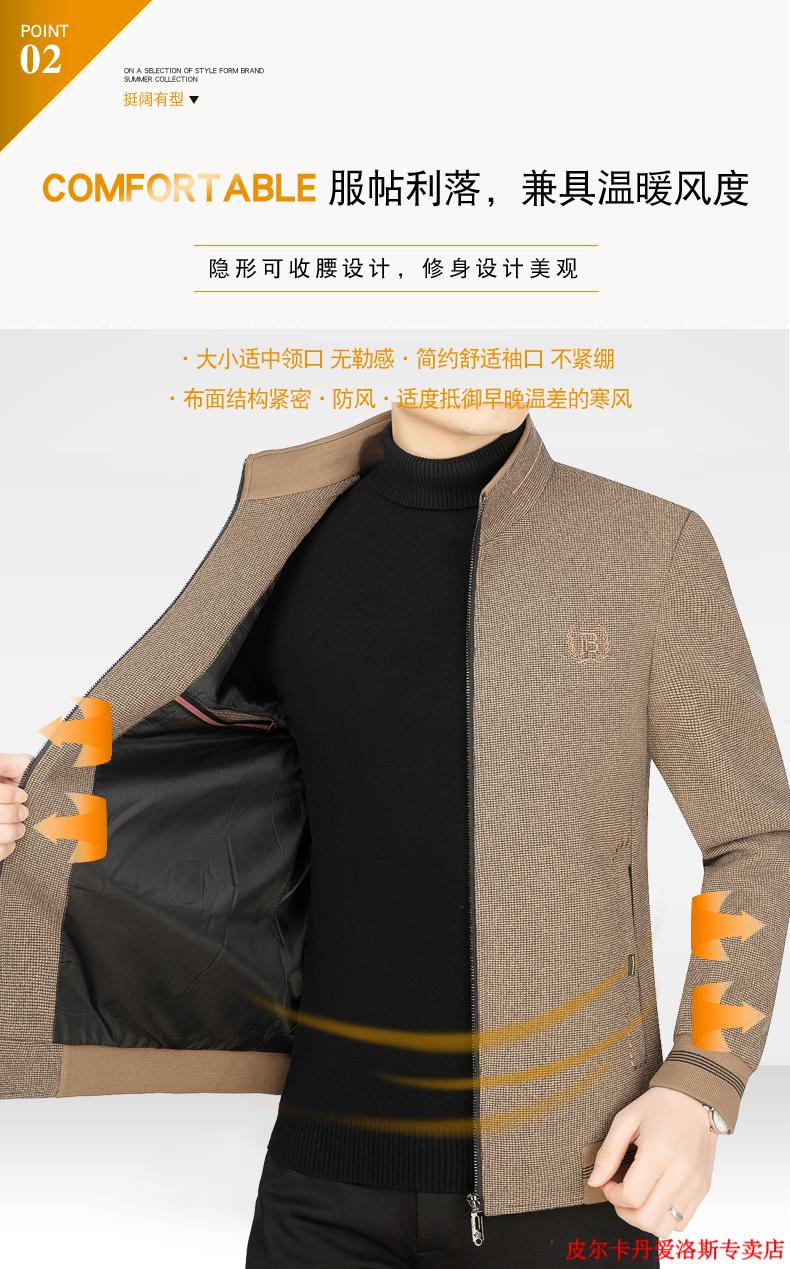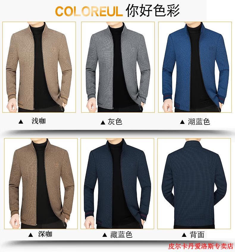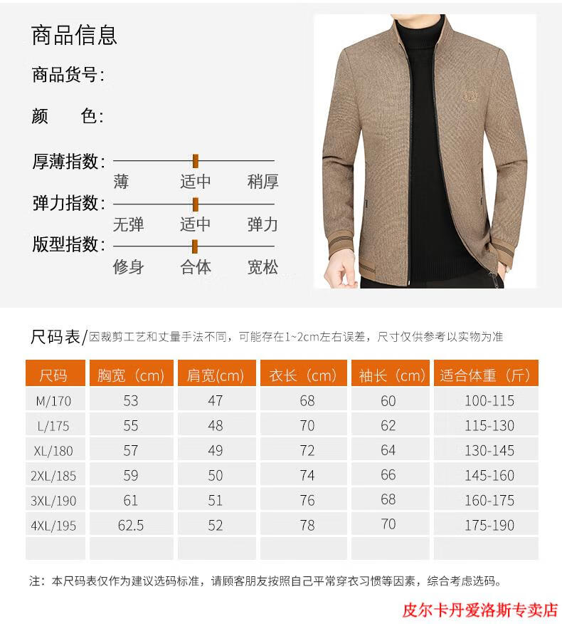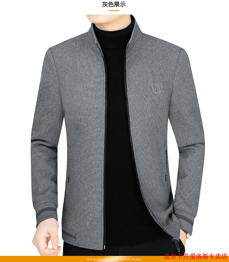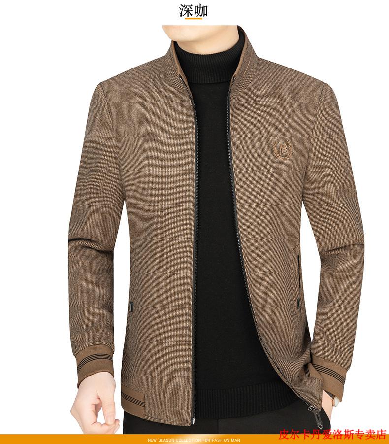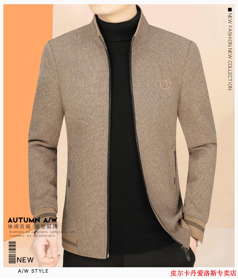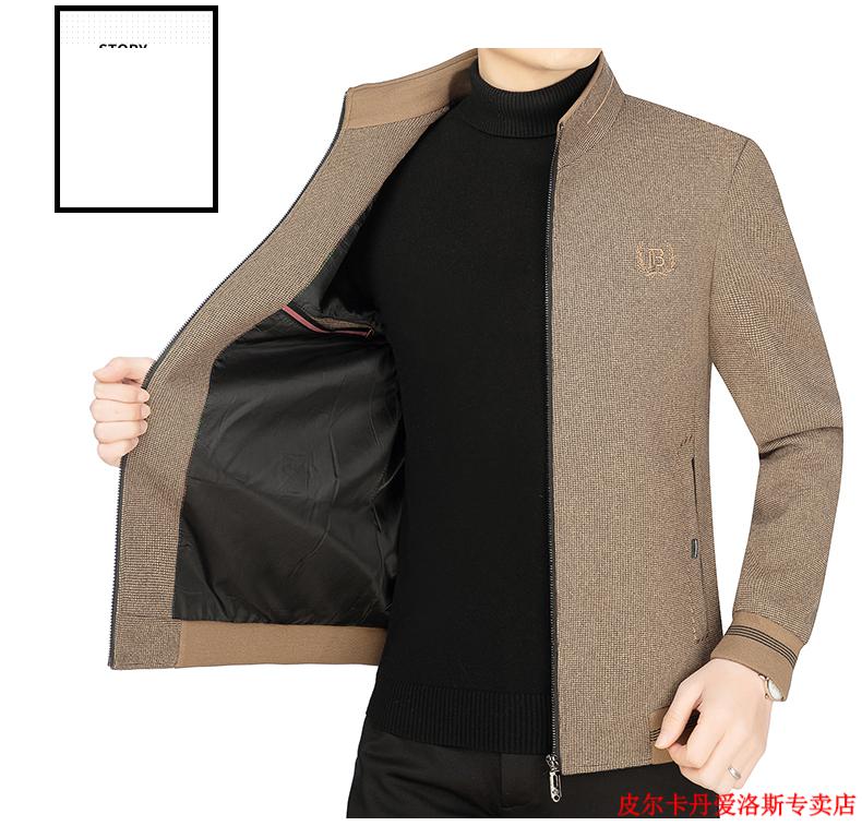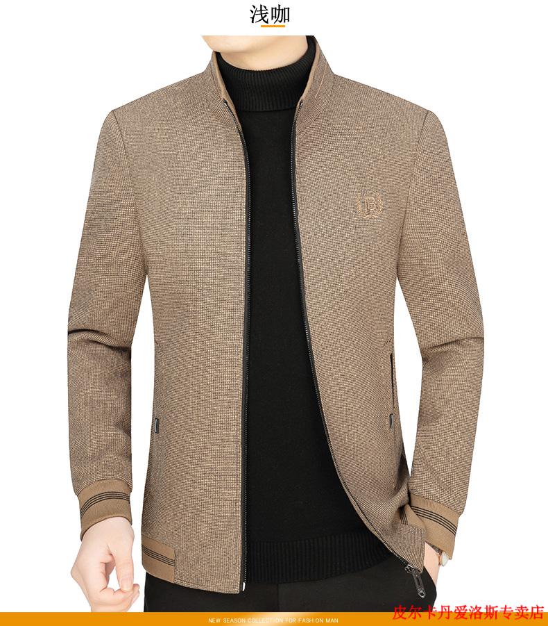 Мужская шерстяная куртка с воротником стойкой бренда Pierre Cardin, мужская шерстяная повседневная куртка весна-осень 2023, топы для мужчин кофейного цвета 1509 165 (95-105Jin Jin соответствует 0,5 кг)