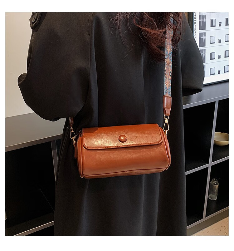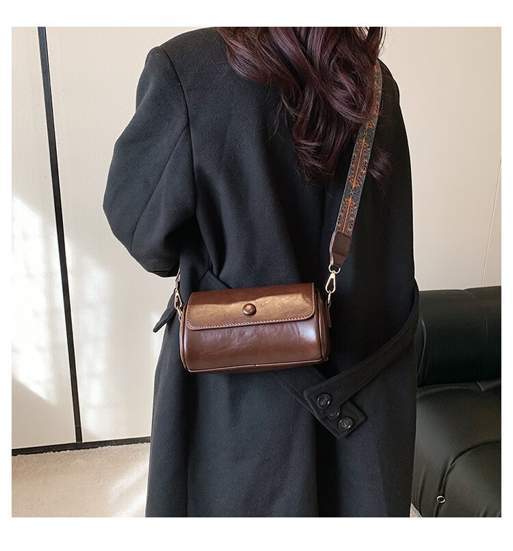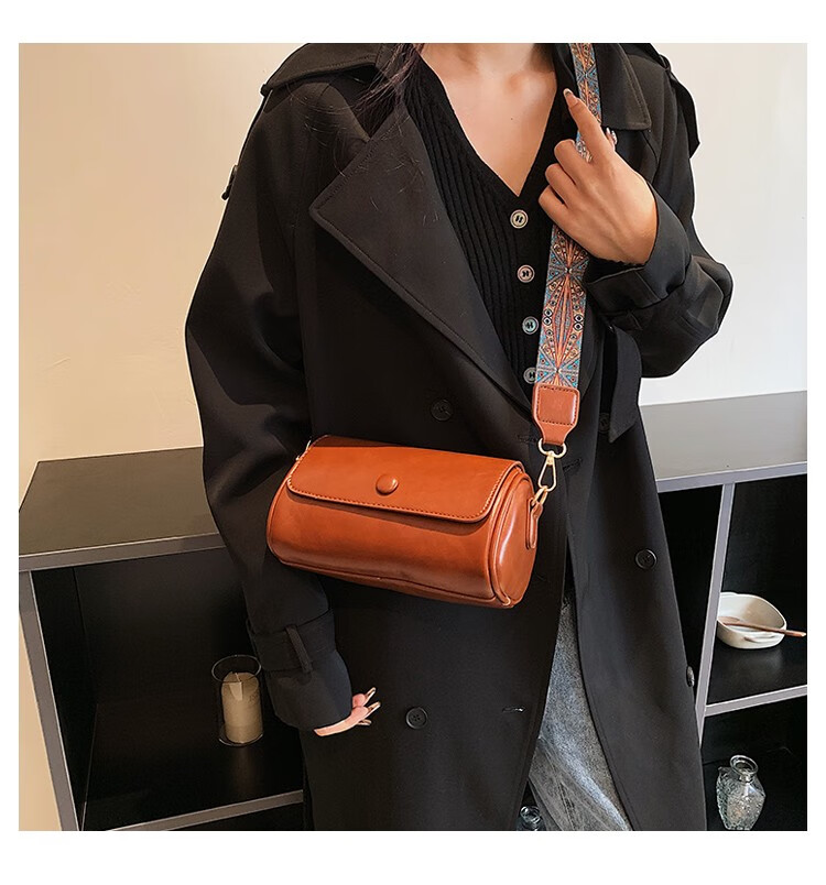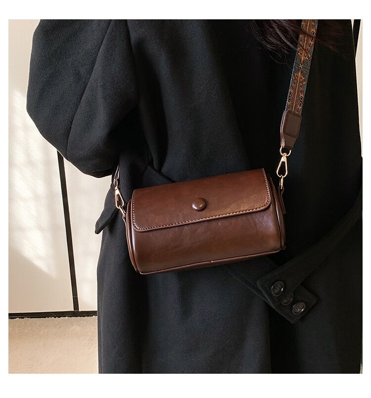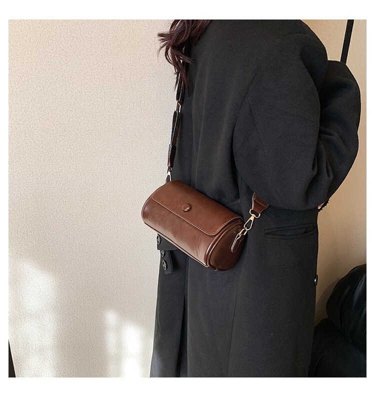 Baoke Snail Retro Kleine Tasche Damentasche Nische 2023 Chinesischer Valentinstag Trendiger Herbst und Winter Vielseitige Breitband-Einzelschulter-Umhängetasche Zylindertasche Kaffeefarbe