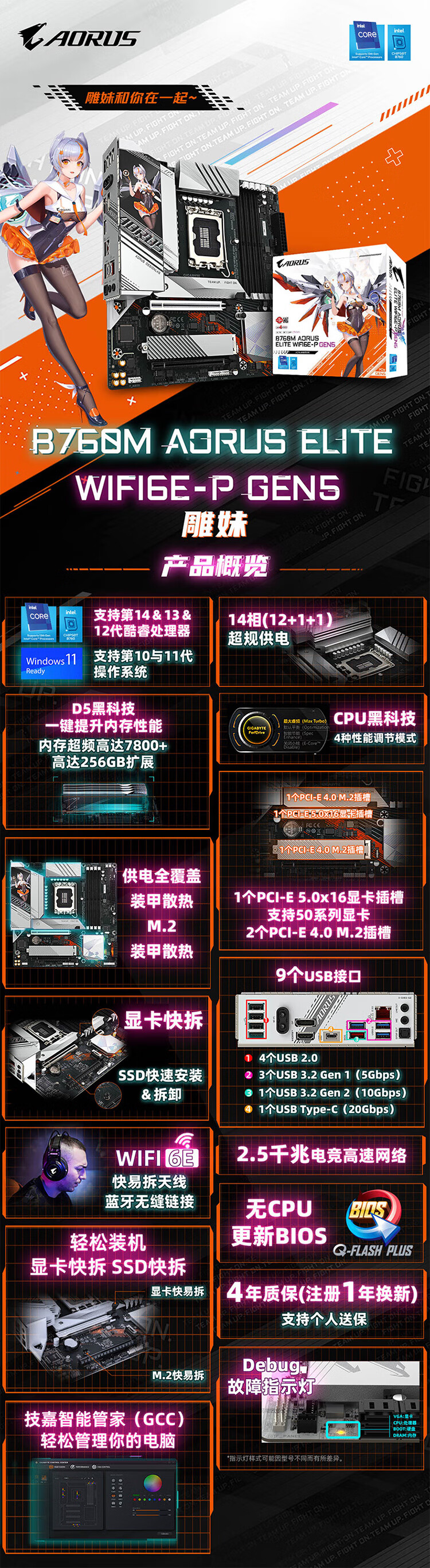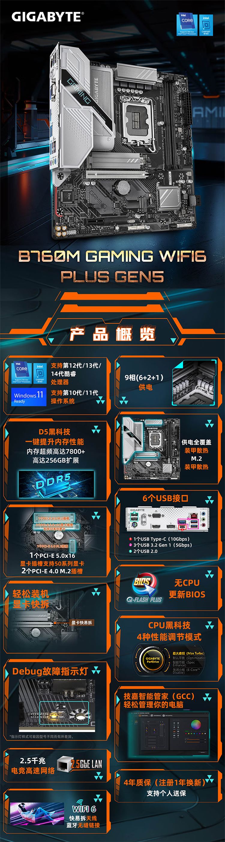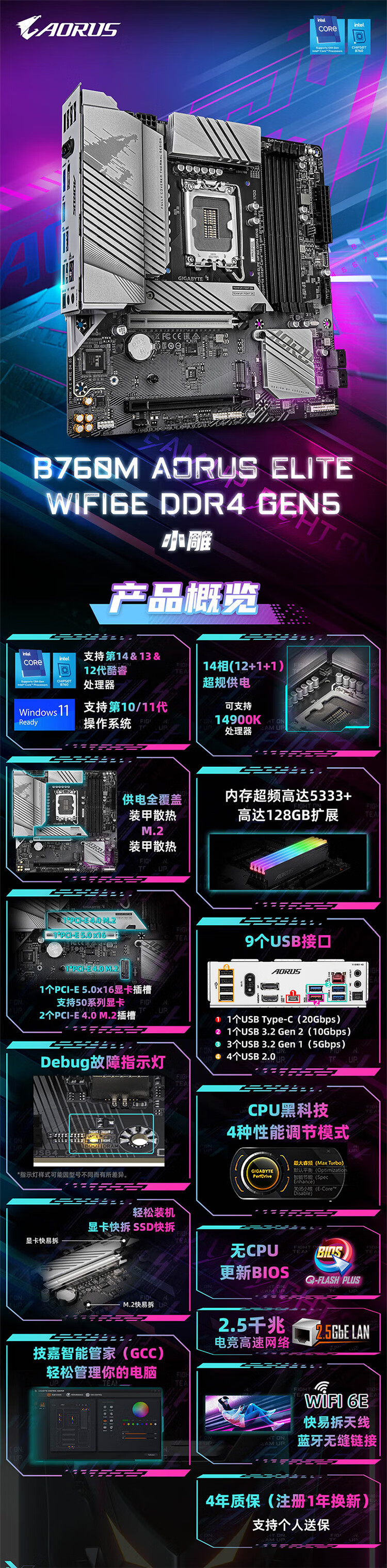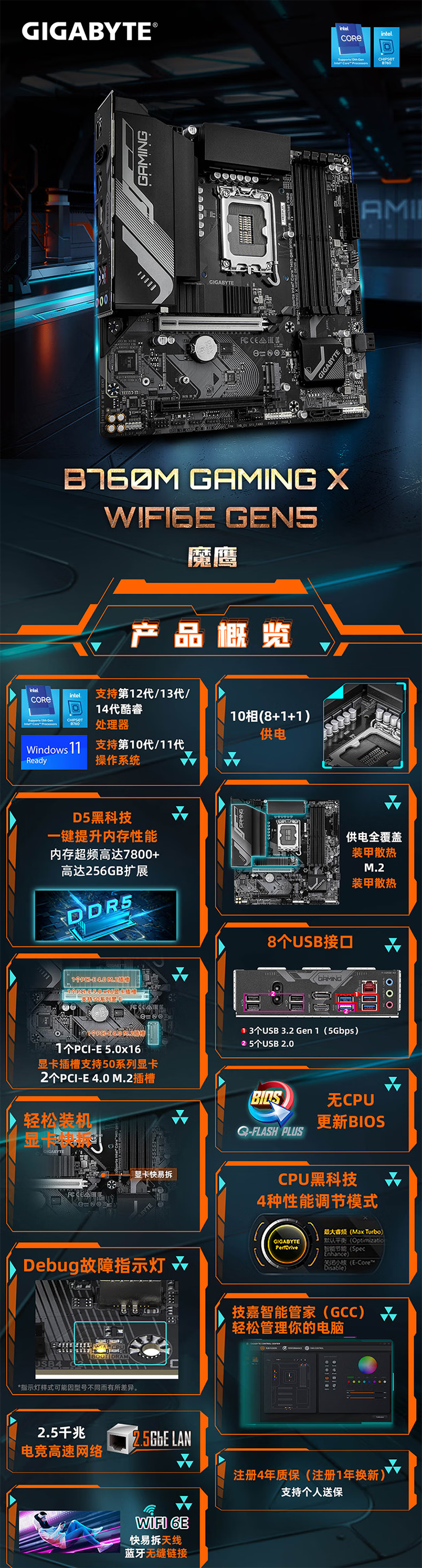 技嘉英特尔i5 12490F/12600KF/13400F/13490F+B760主板CPU套装 板u套装 主板套装 B760M GAMING AC D4魔鹰wifi 13490F (10核16线程)无核显无散热器