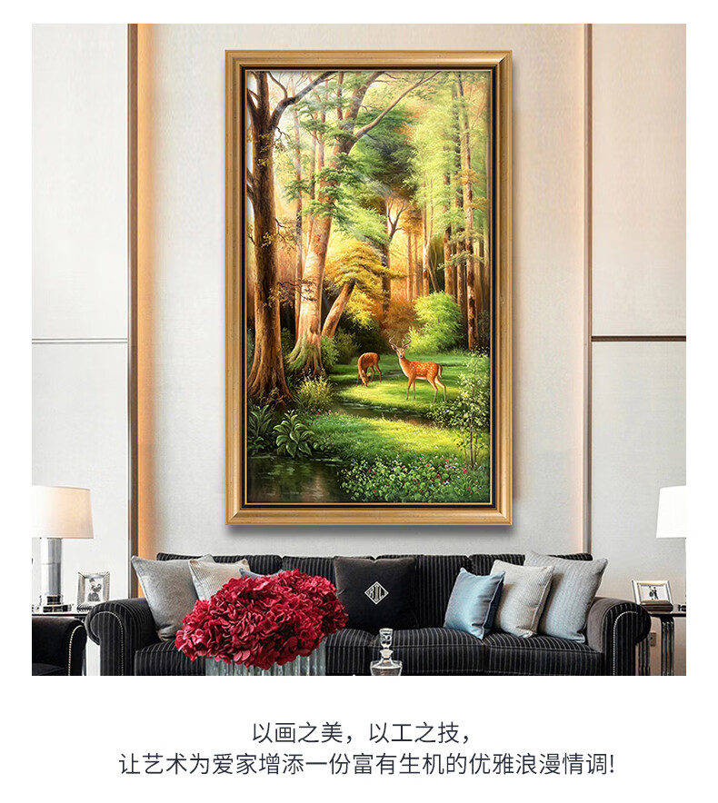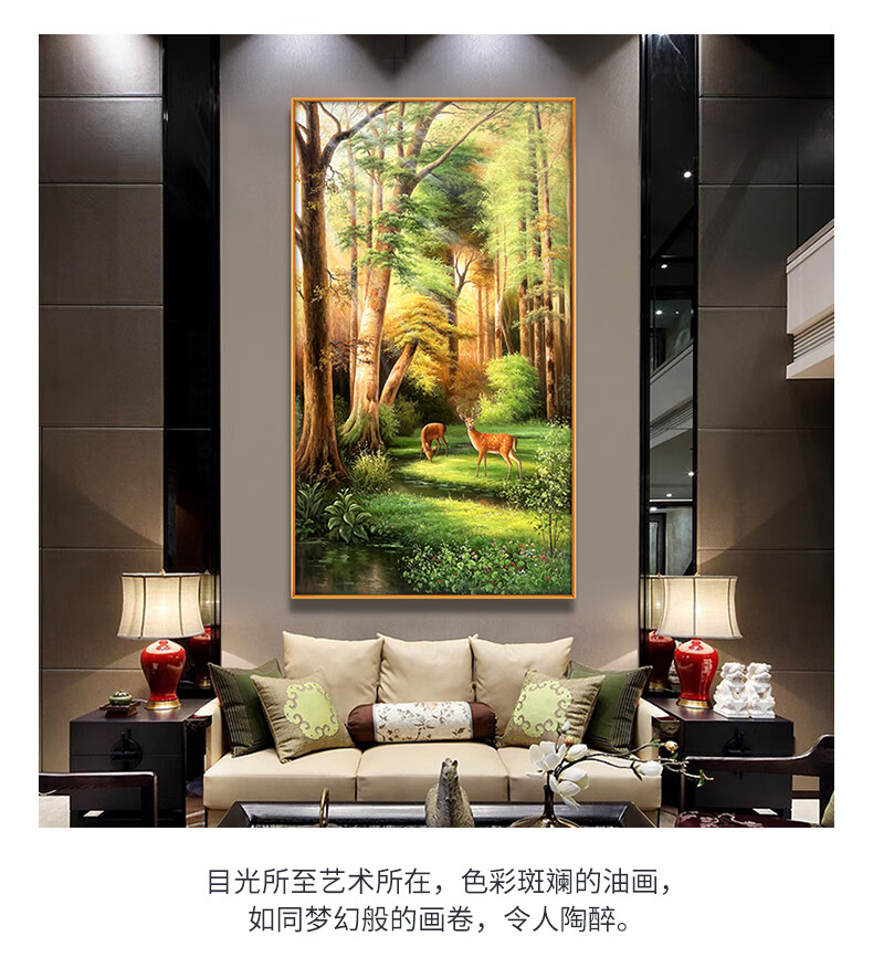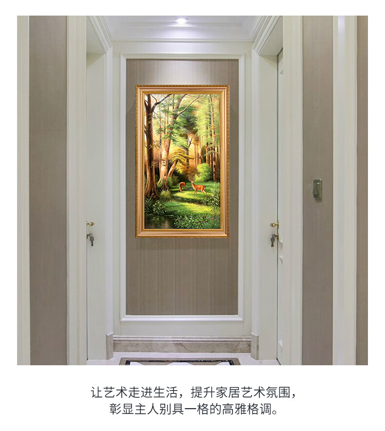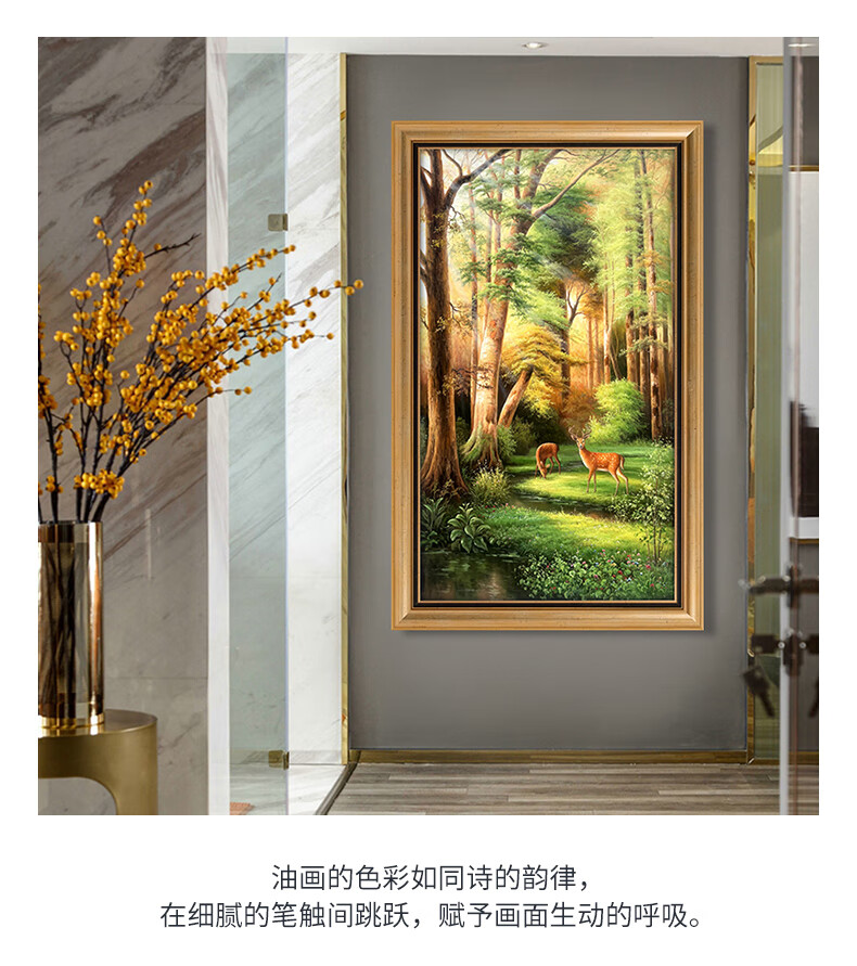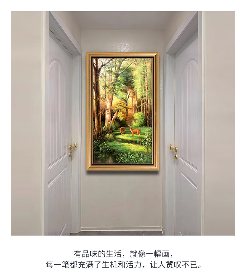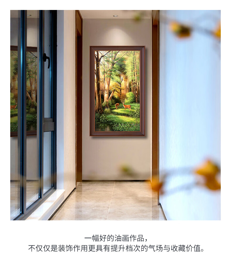 帝旗 高端原创手绘麋鹿风景油画欧式入户玄关装饰画走廊过道挂画竖版 692金实木框 80X160