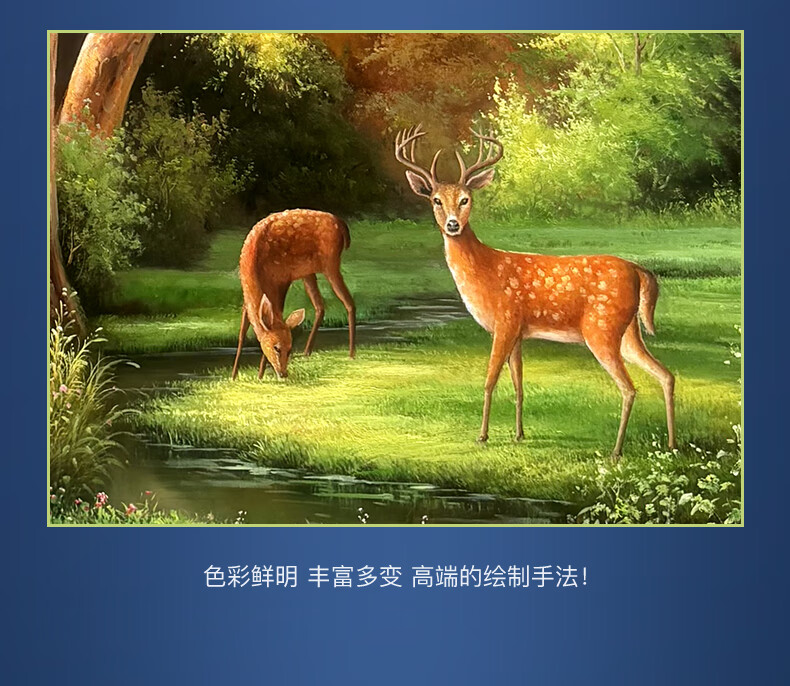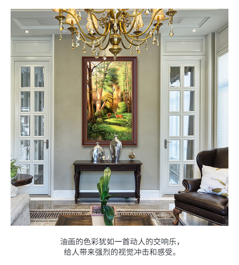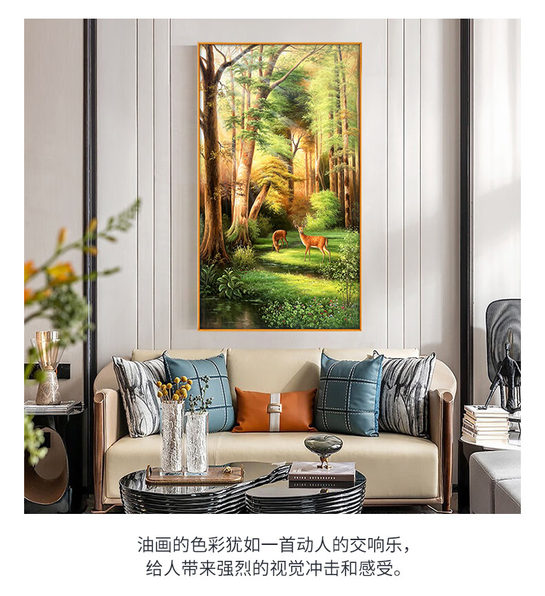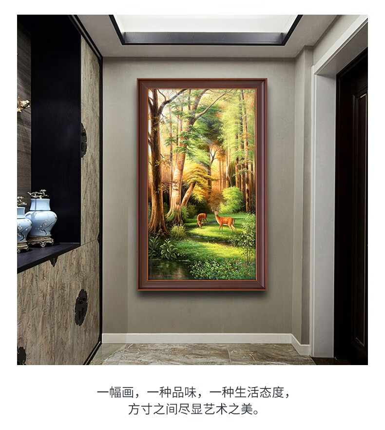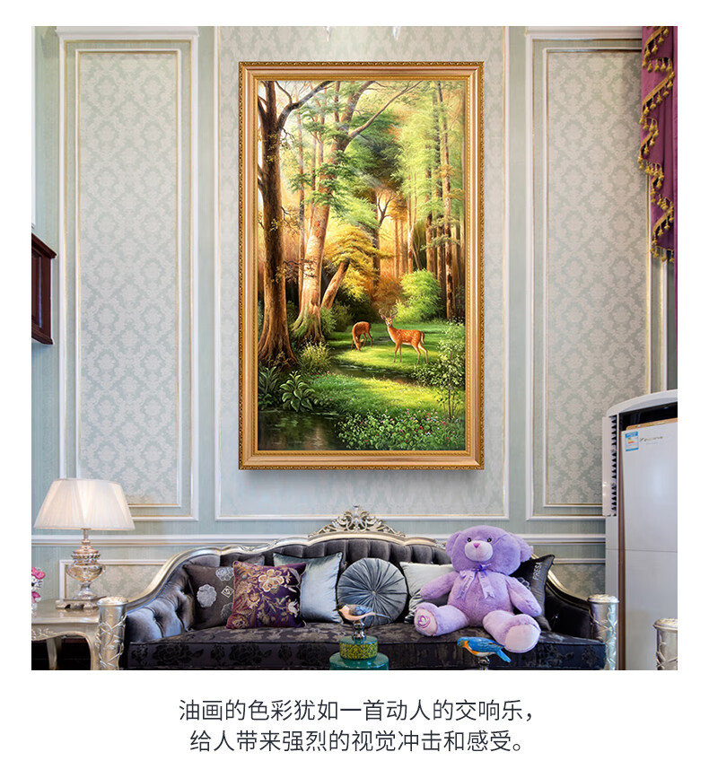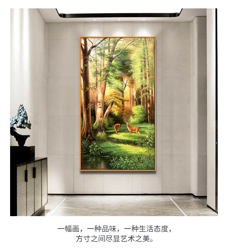 帝旗 高端原创手绘麋鹿风景油画欧式入户玄关装饰画走廊过道挂画竖版 692金实木框 80X160