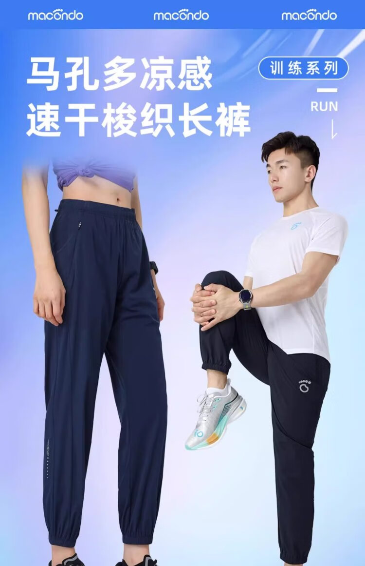 马孔多(macondo)冰丝梭织长裤 男裤夏季薄款 户外马拉松田径跑步运动裤 凉感科技 男款(黑色) L