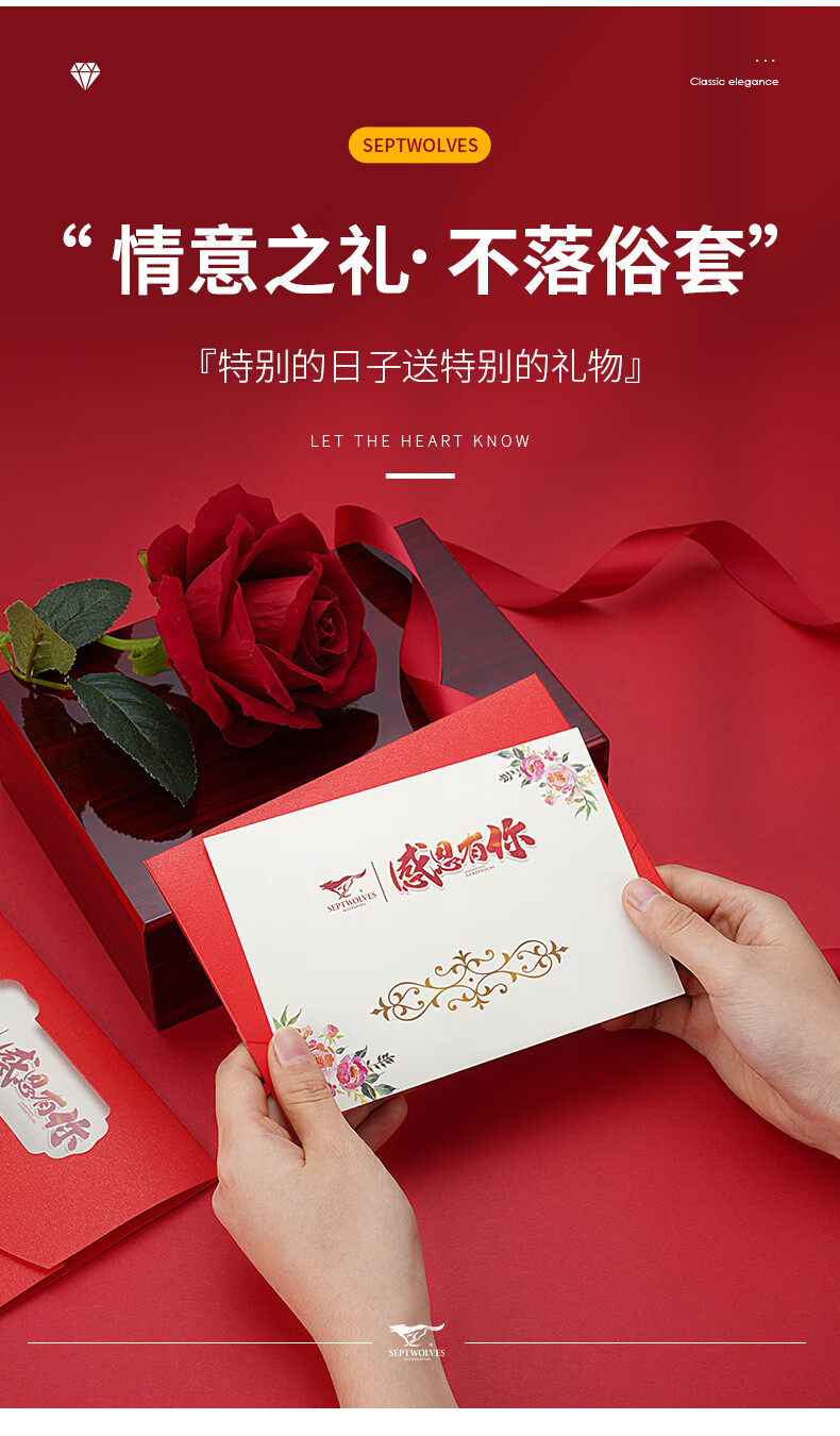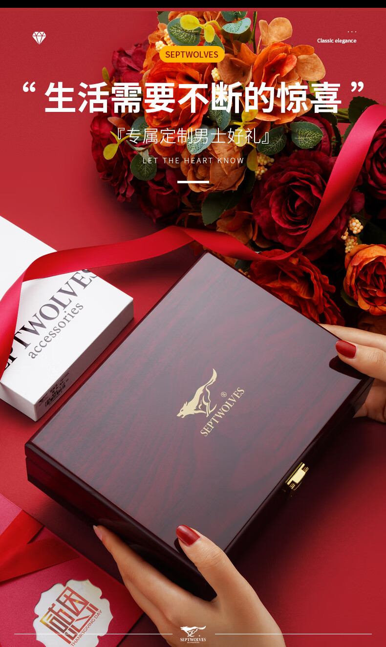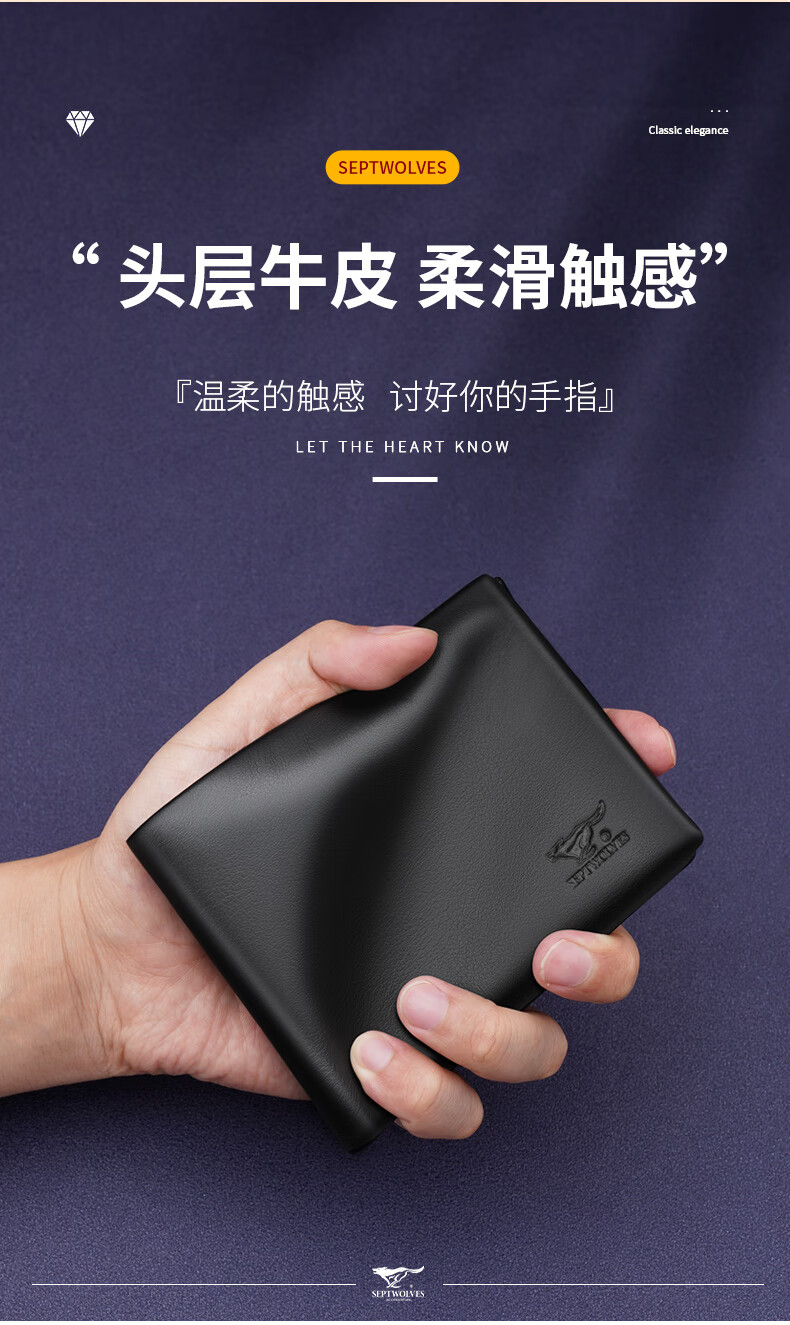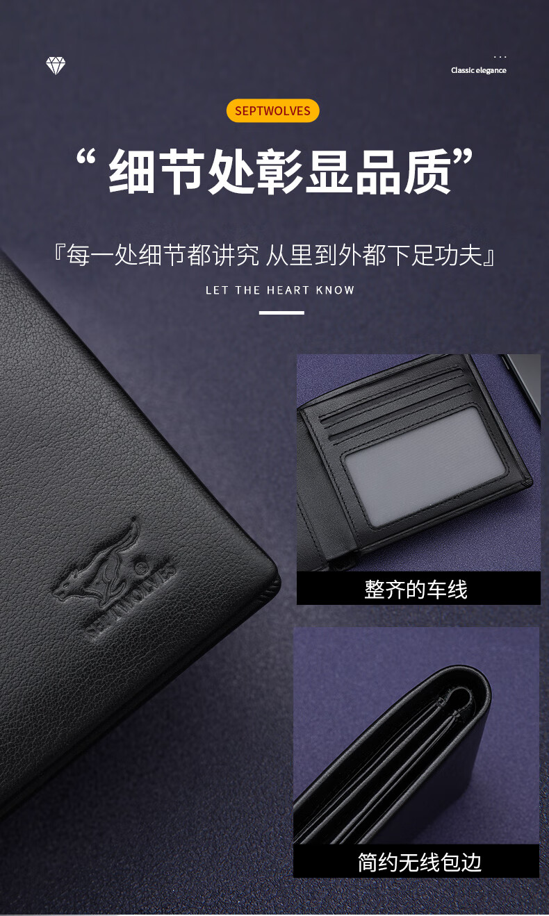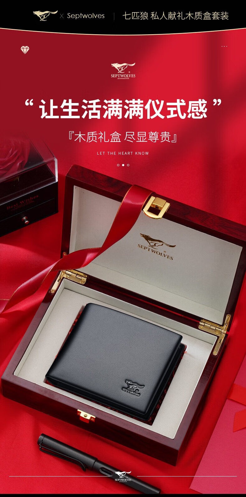 七匹狼(SEPTWOLVES)男士钱包男短款真皮钱夹商务休闲卡包实用生日礼物送男友老公老公 黑色款【 红色木礼盒套装】