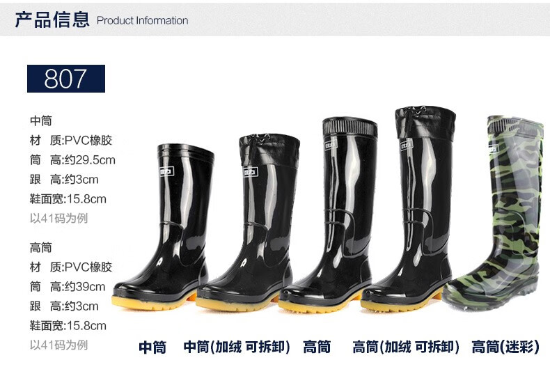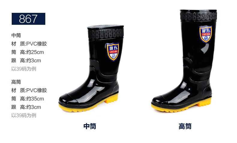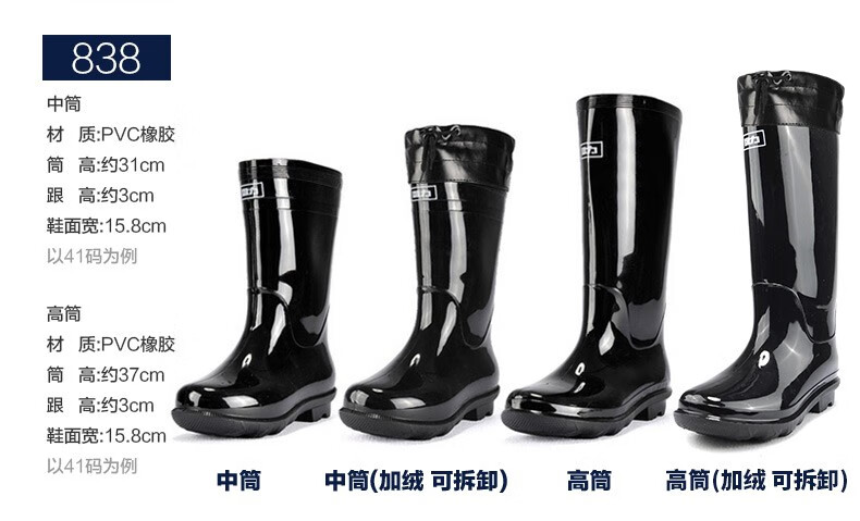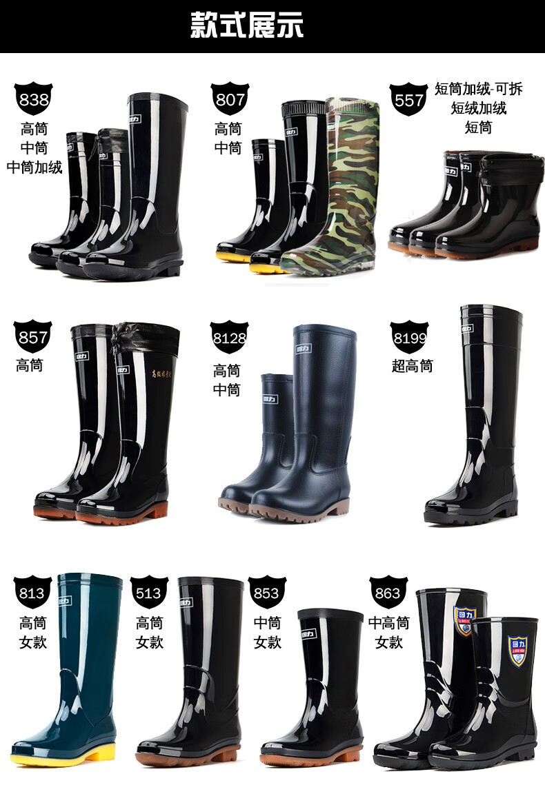 回力雨鞋男中高筒防水鞋户外雨天耐磨胶鞋不易滑雨靴套鞋 838中筒 40