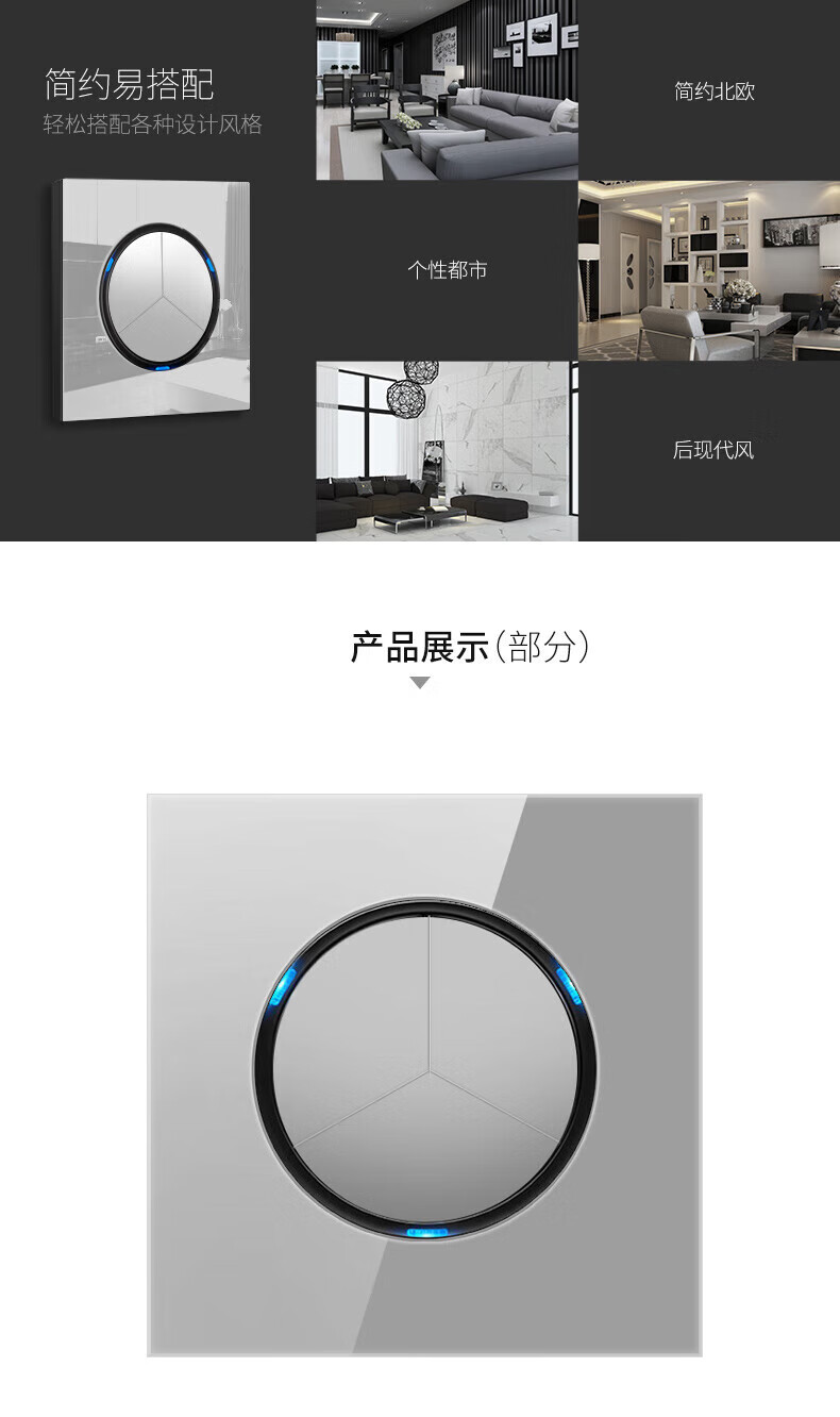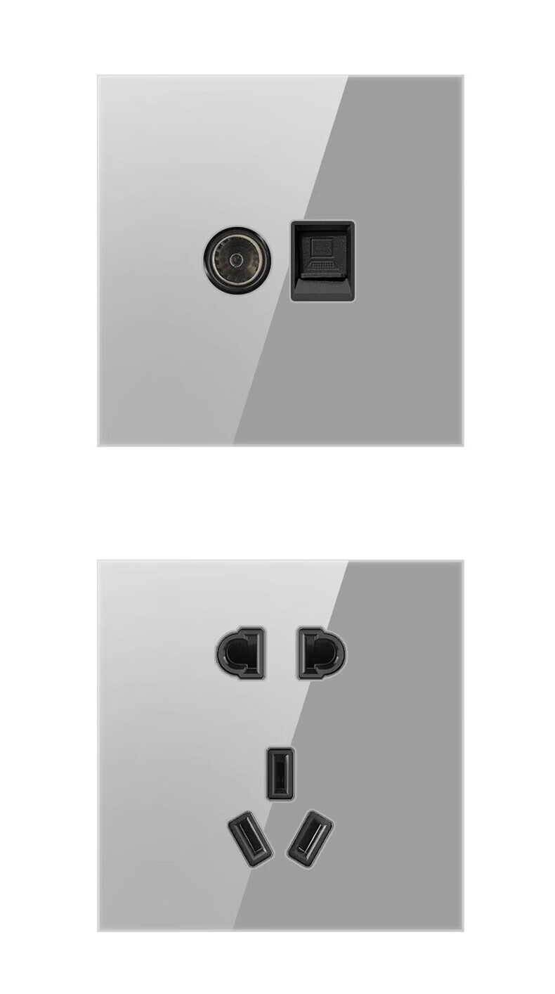 国际电工86型家用墙壁暗装LED轻点开关插座灰色钢化玻璃面板一开双控 一开单控(加厚玻璃面板) 开关 复位开关