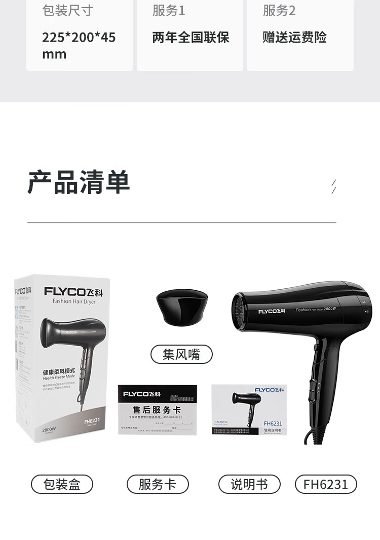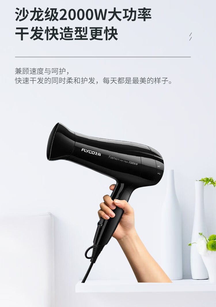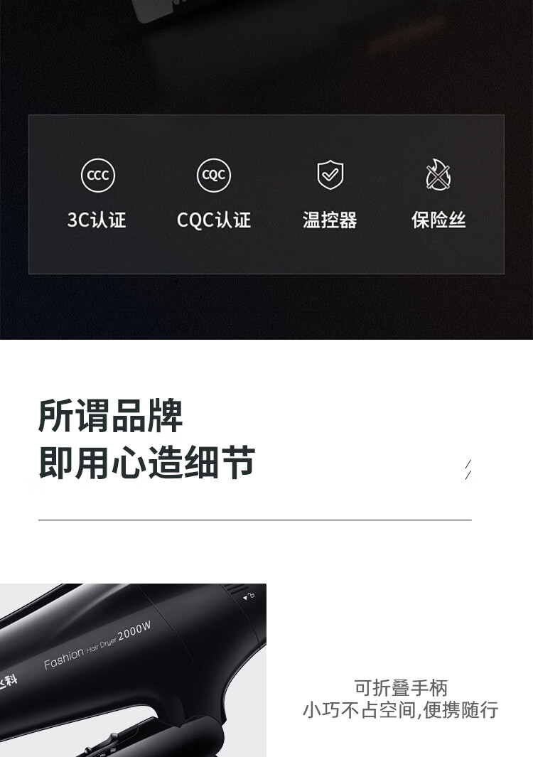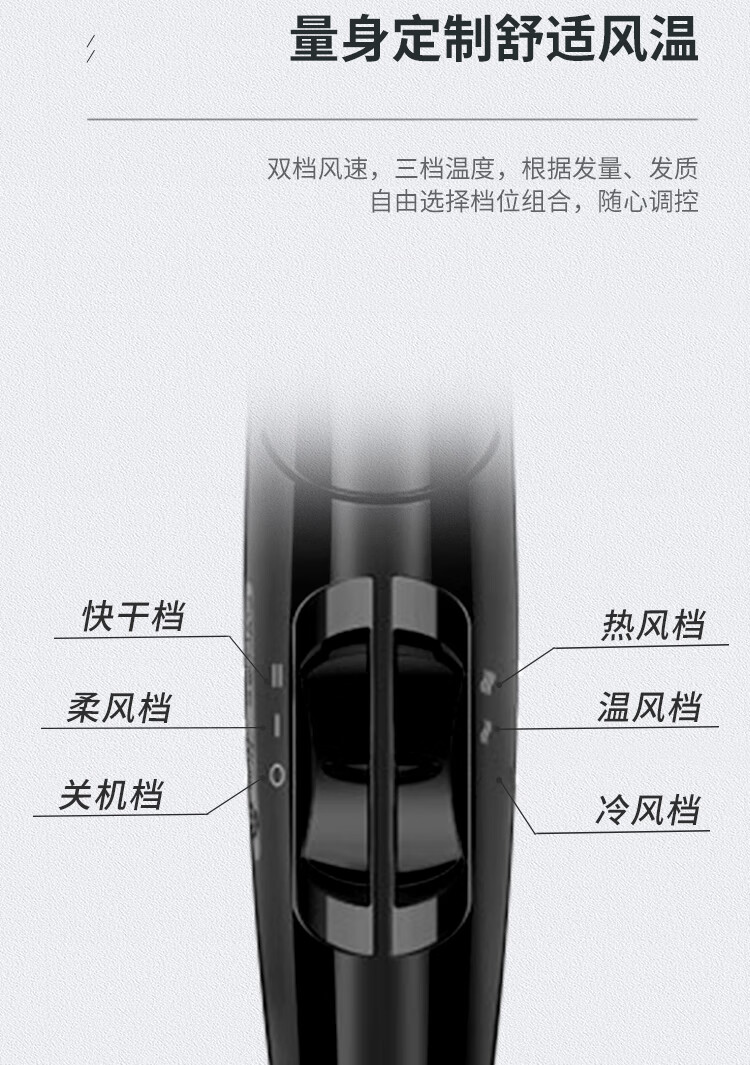 飞科吹风机家用大功率速干折叠电吹风学生宿舍发廊男士专用吹风筒 飞科FH6231黑色+卷发梳