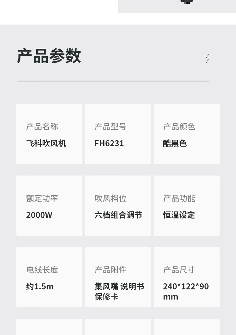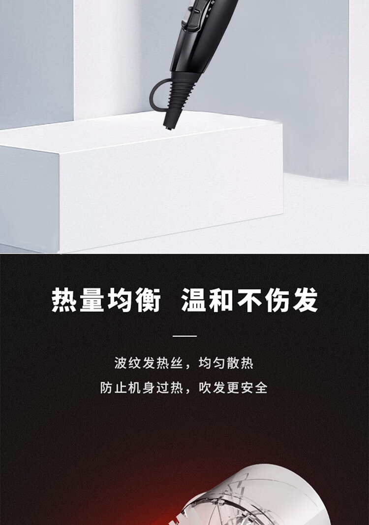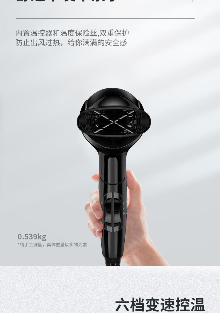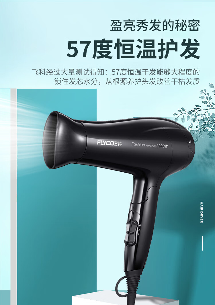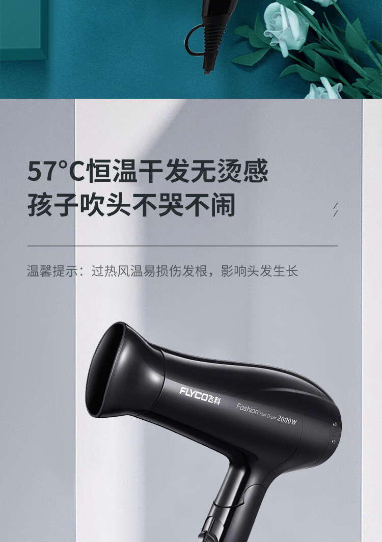 飞科吹风机家用大功率速干折叠电吹风学生宿舍发廊男士专用吹风筒 飞科FH6231黑色+卷发梳