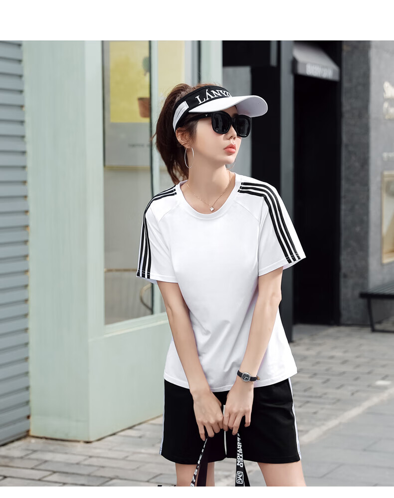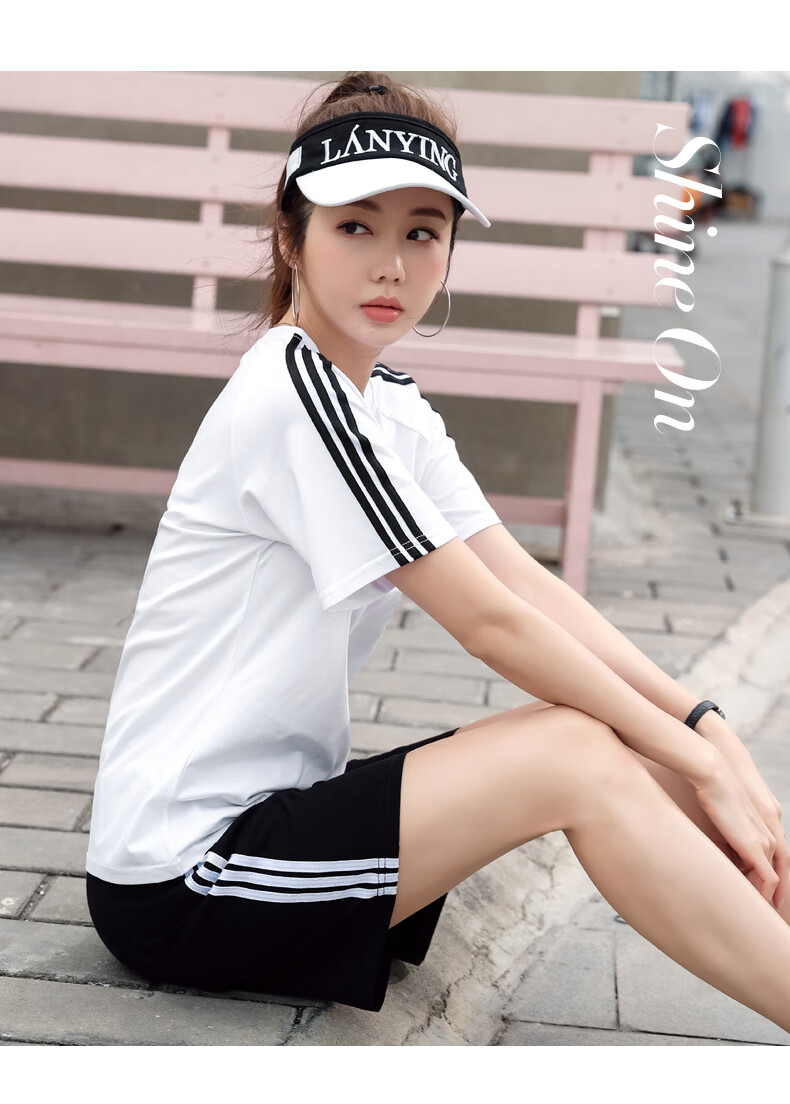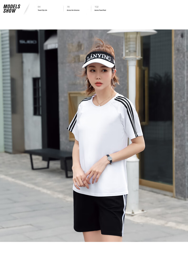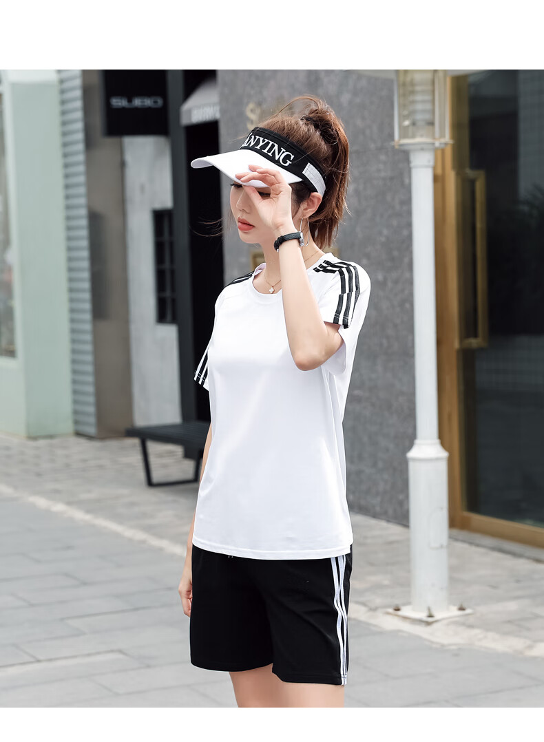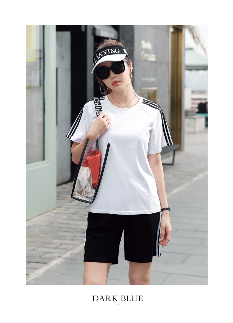 QLHX Li丨Ning Sportanzug Casual Sportswear Anzug Damen Sommer Zweiteiliger Anzug Laufen High School Aufnahmeprüfung Reiner Baumwollkörper 6623 Weißer Anzug L