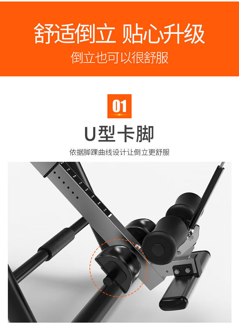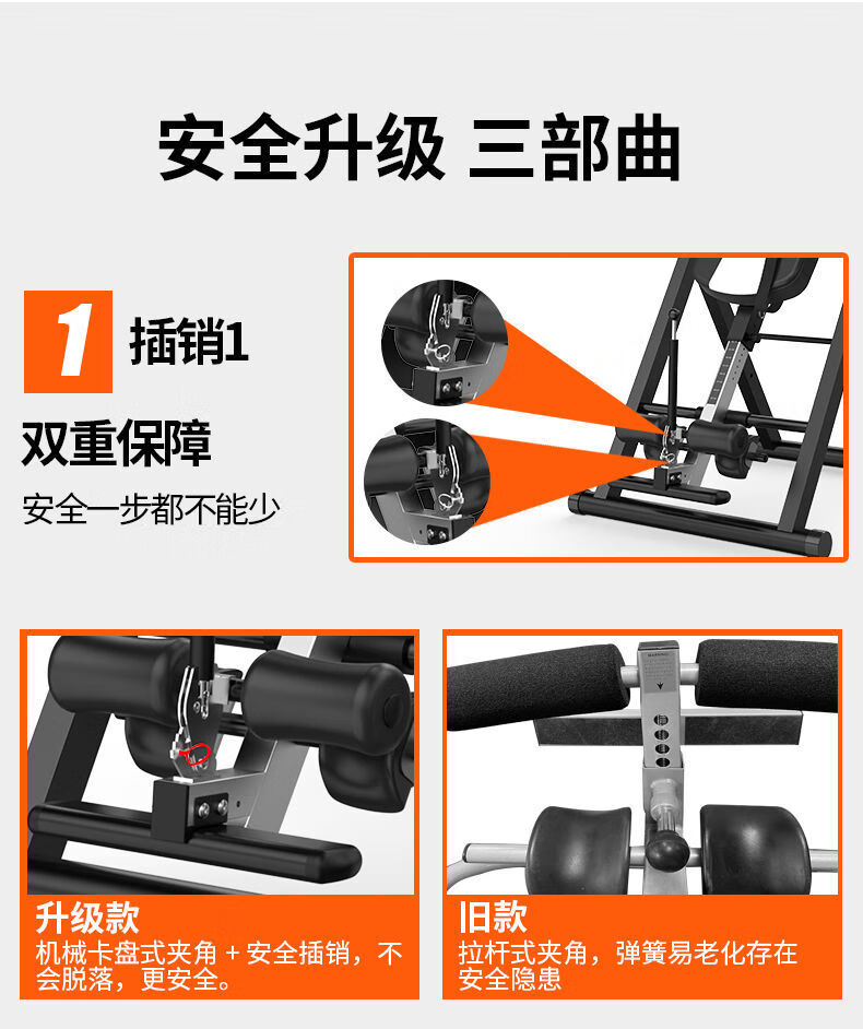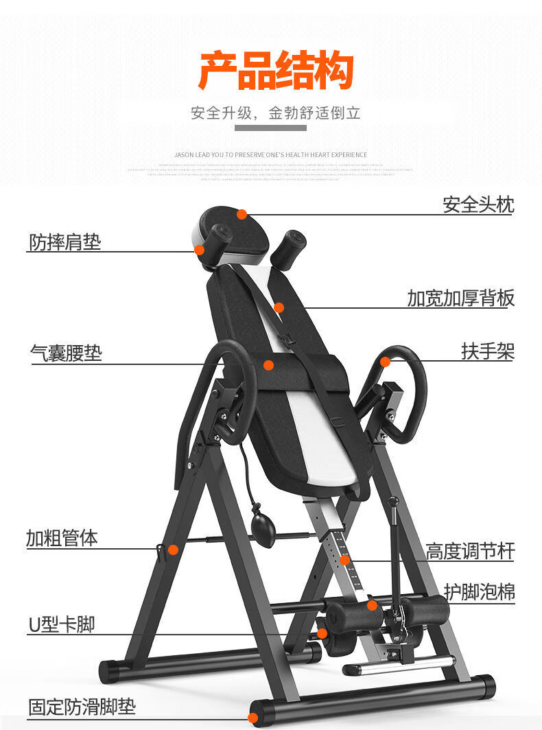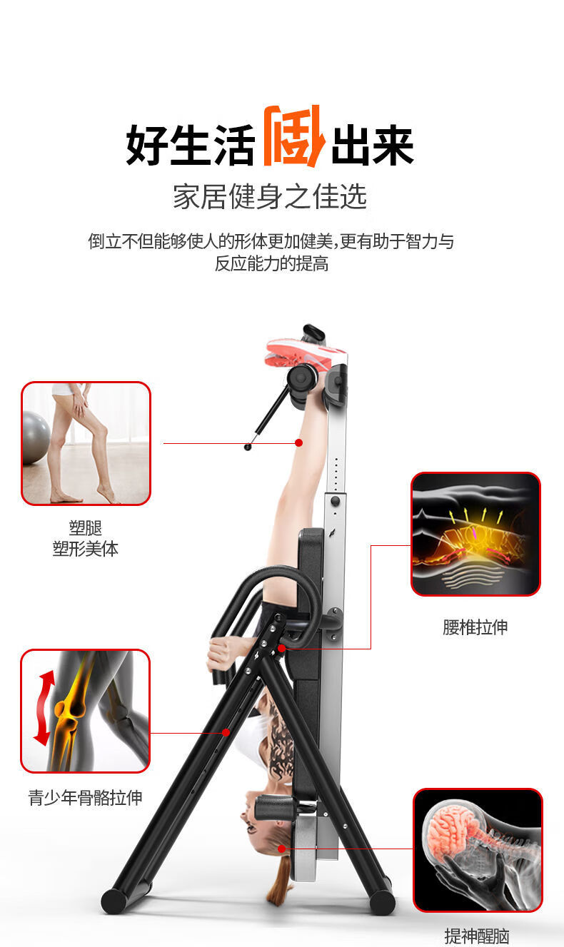 惠旗鹿倒立神器家用健身器材倒立机身高拉伸倒挂辅助长高腰椎牵引倒立器 黑红舒适款+4U形卡脚+气囊腰垫+