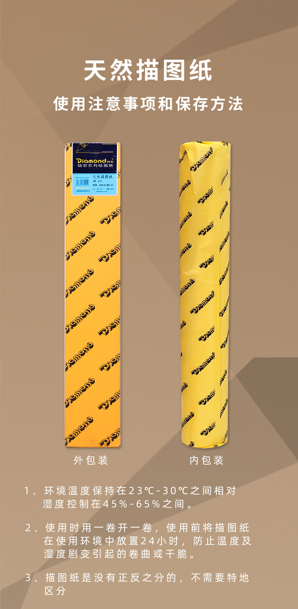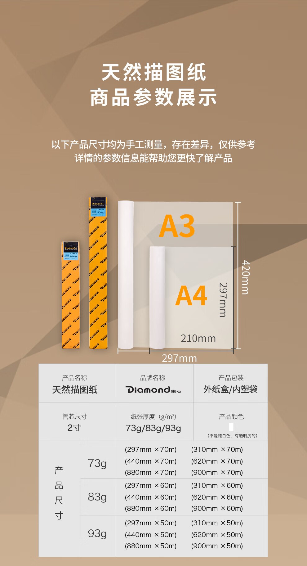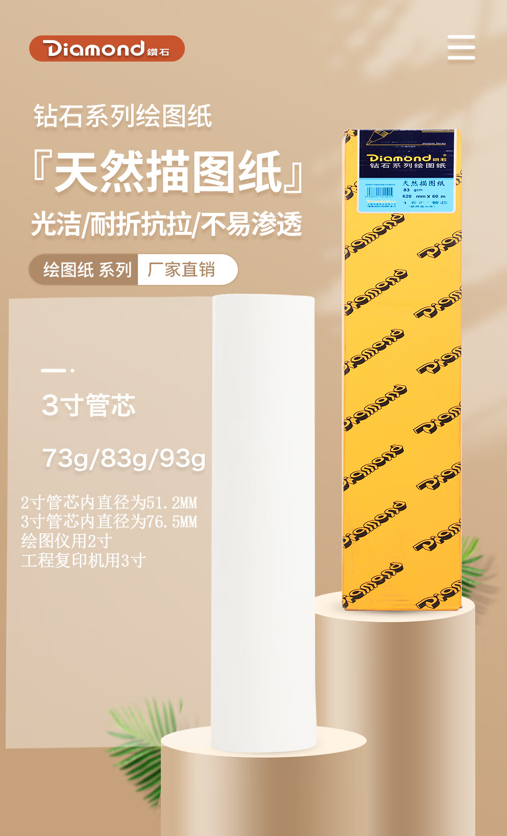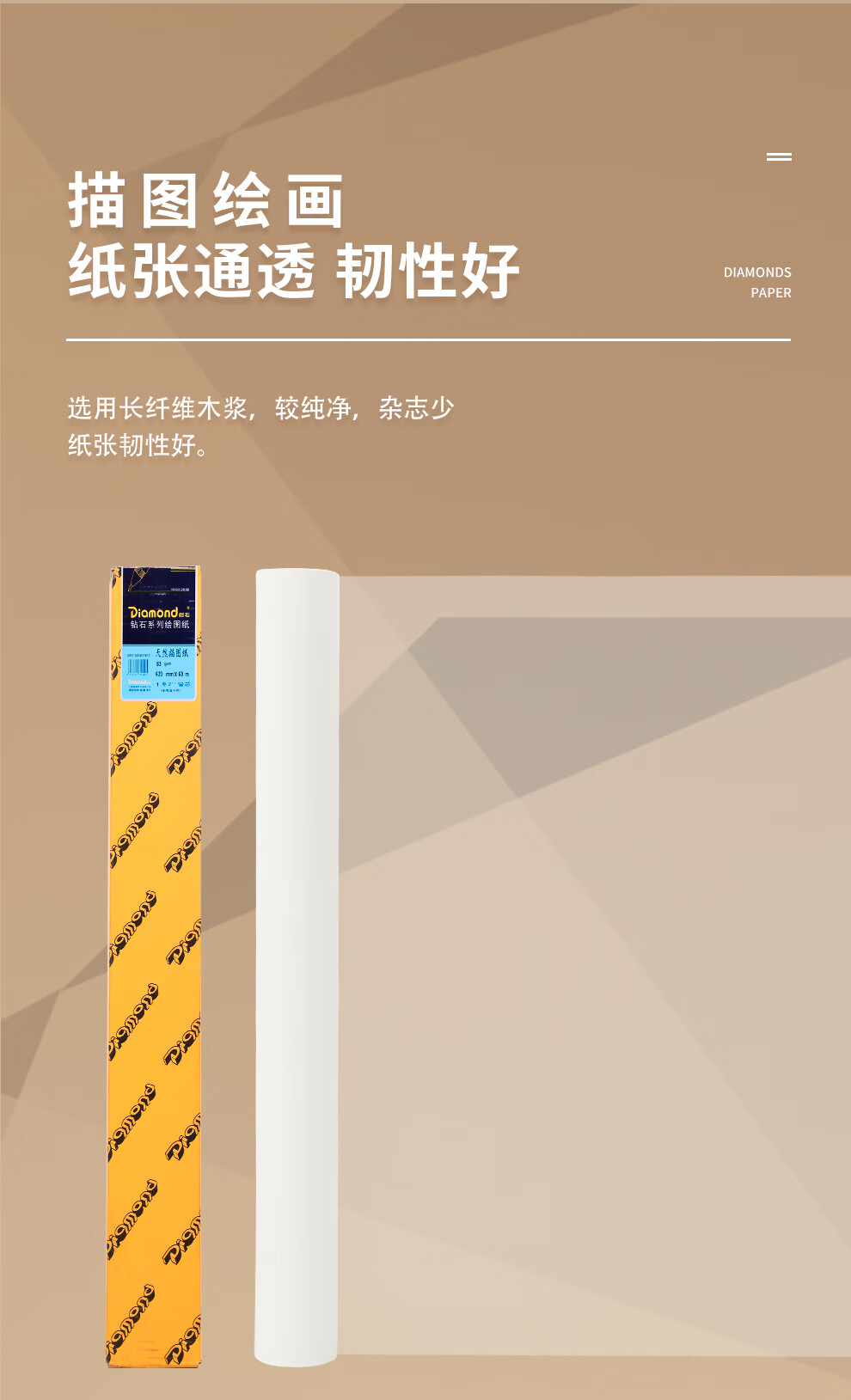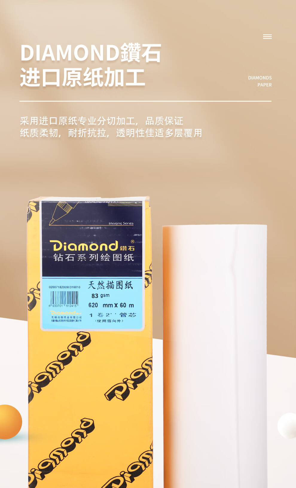 钻石Diamond天然描图纸73g83g93g硫酸纸工程透明卷筒纸三寸管芯激光打印硫酸纸 880mm*150M(93g)3寸/卷