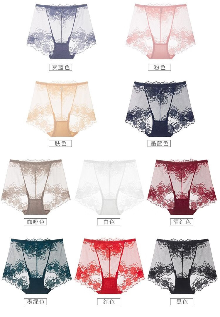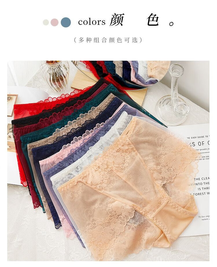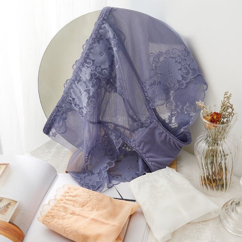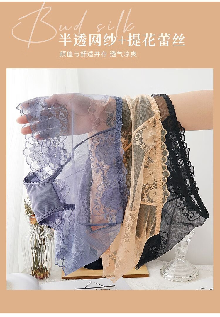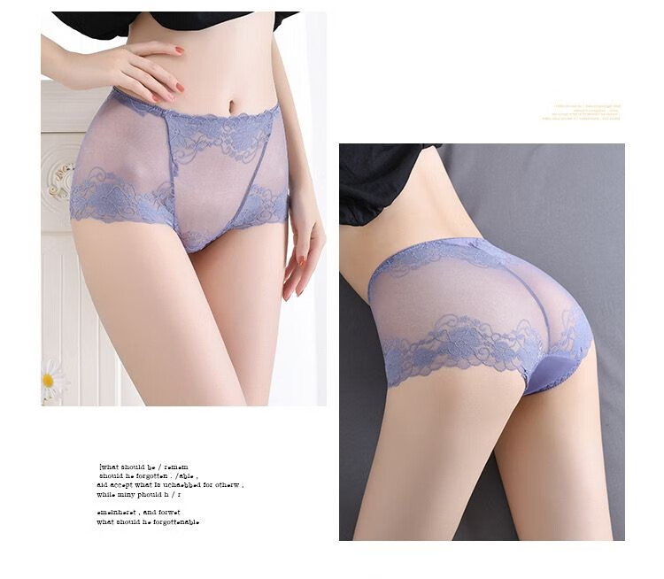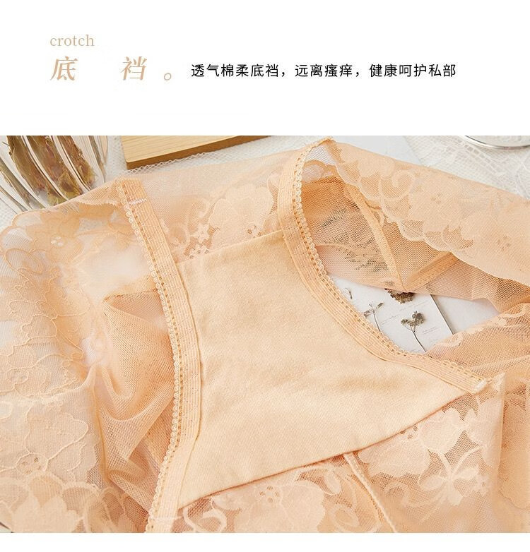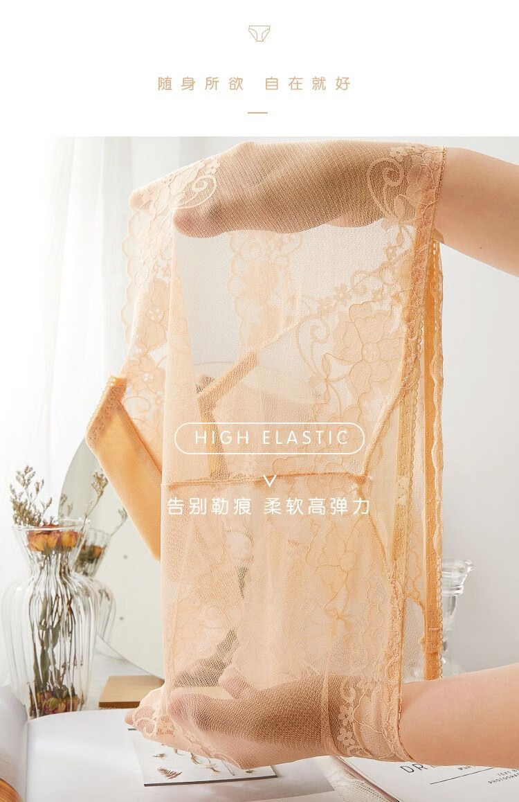 CKPED4条装蕾丝女士内裤女性感冰丝无痕高腰纯棉裆少妇女式大码短裤 粉色_肤色_白色_灰蓝 L 90-115斤