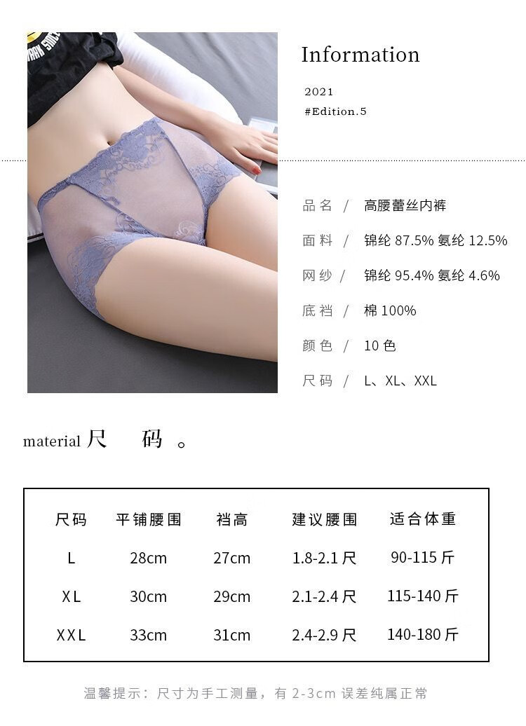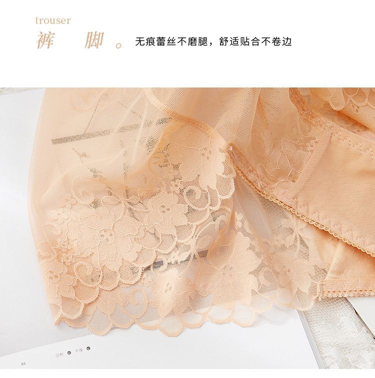 CKPED4条装蕾丝女士内裤女性感冰丝无痕高腰纯棉裆少妇女式大码短裤 粉色_肤色_白色_灰蓝  L 90-115斤