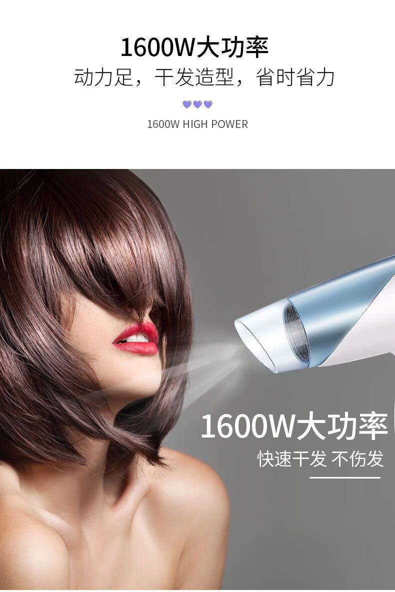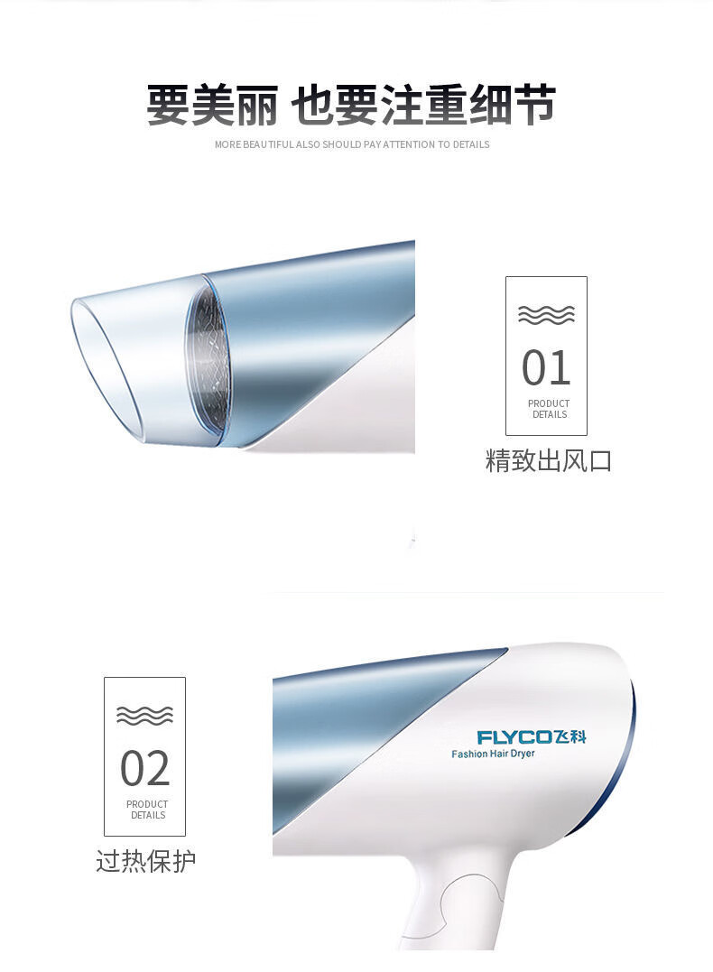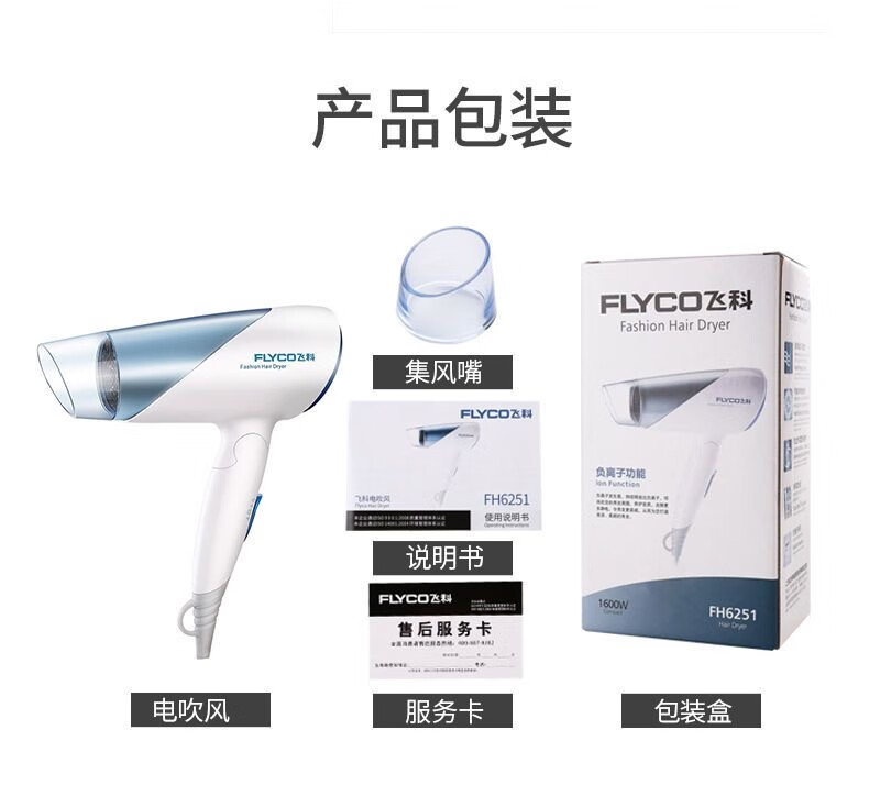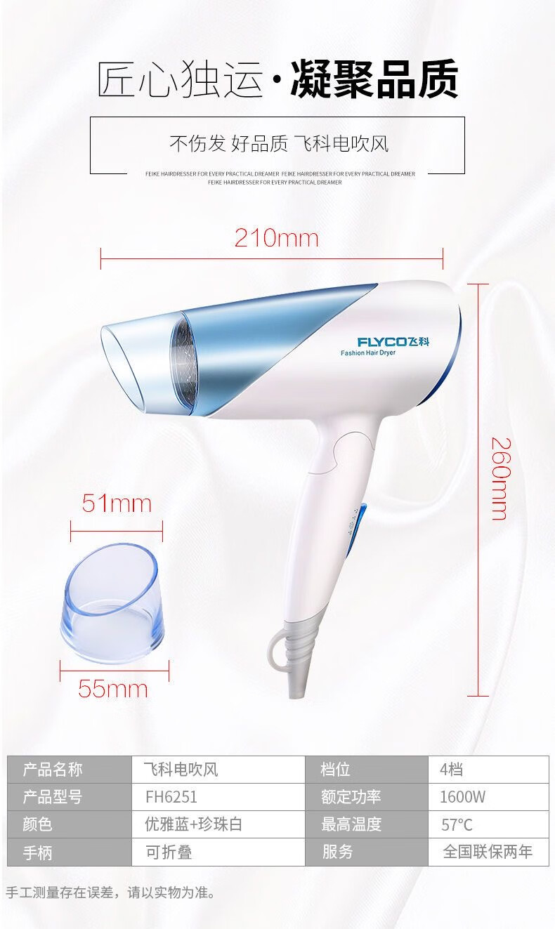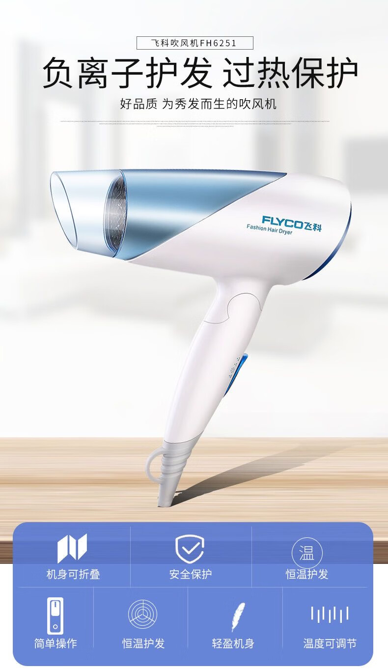 飞科(FLYCO)电吹风机家用大功率吹风筒可折叠便携式吹风机 FH6223蓝色