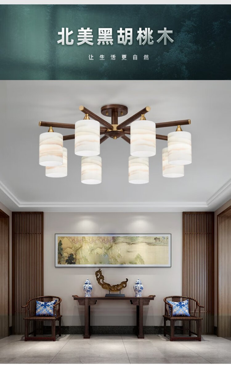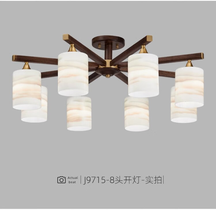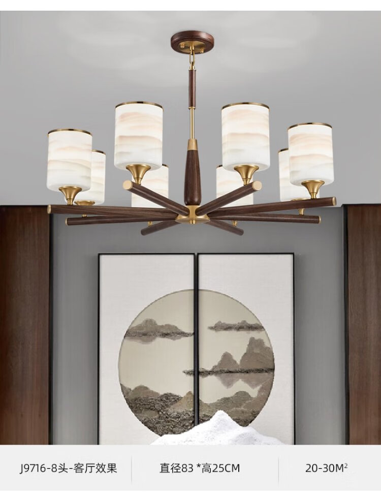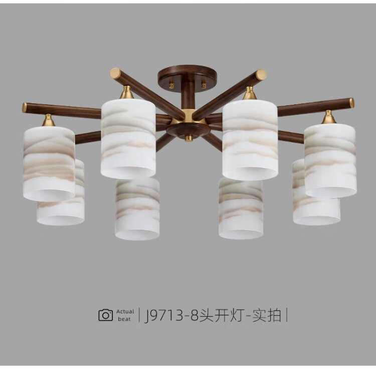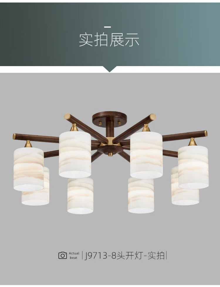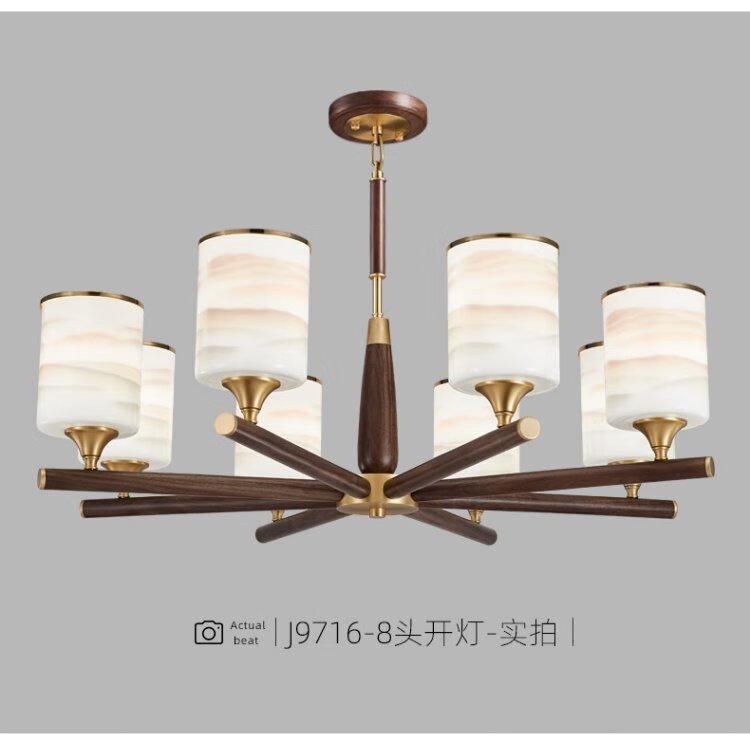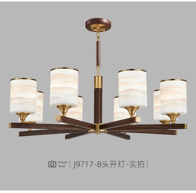 铜心木韵新中式吊灯led简约客厅灯大气黑胡桃实木餐厅卧室灯酒店别墅吊灯 J9717-5头吊灯【不带光源】