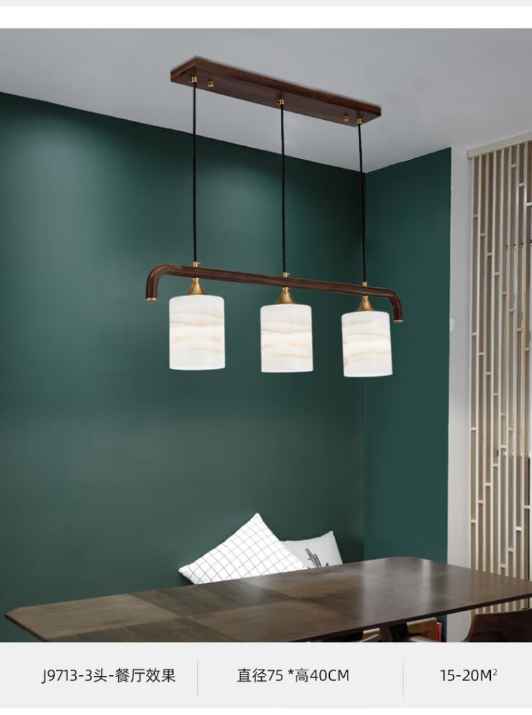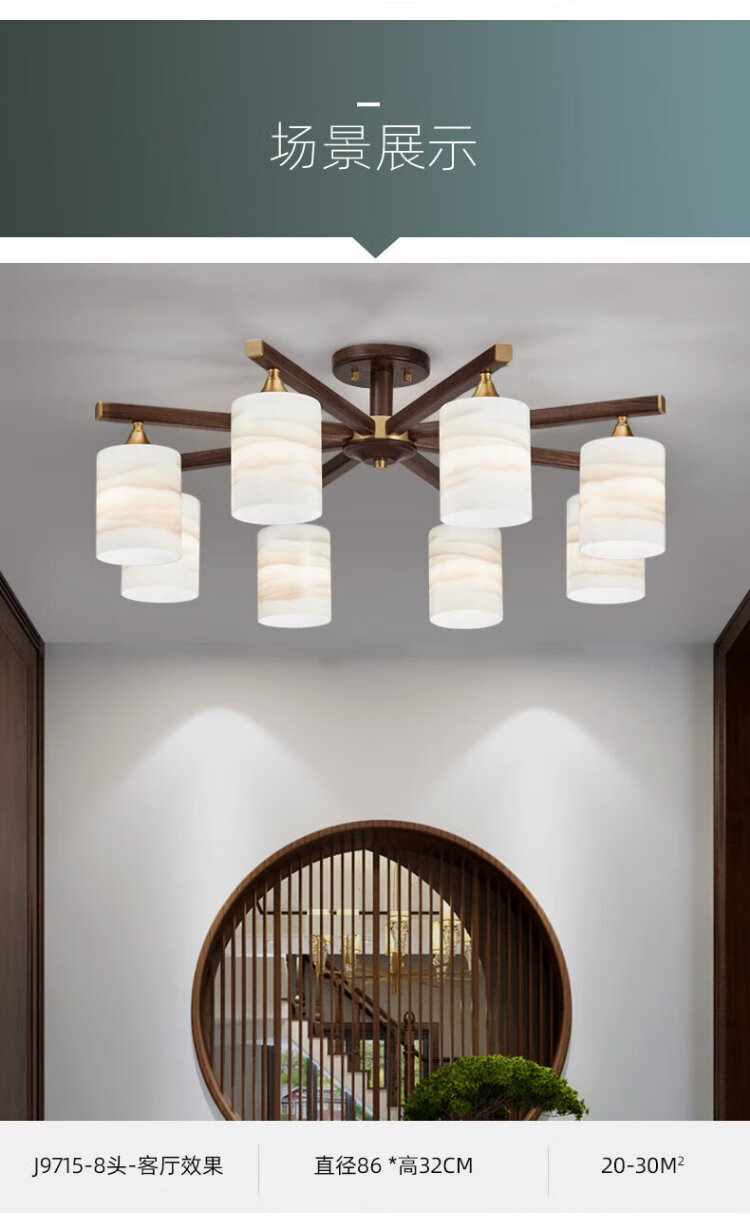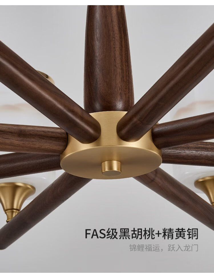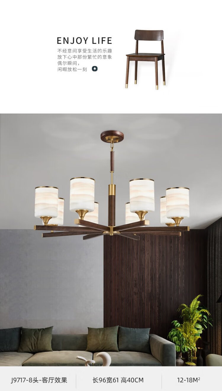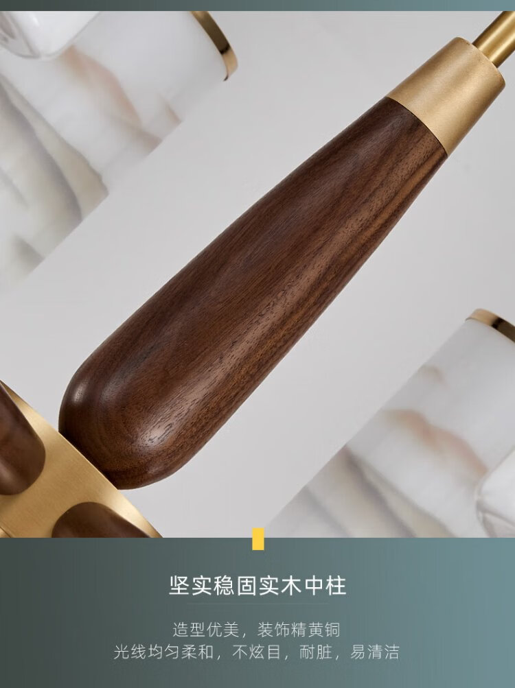 铜心木韵新中式吊灯led简约客厅灯大气黑胡桃实木餐厅卧室灯酒店别墅吊灯 J9717-5头吊灯【不带光源】