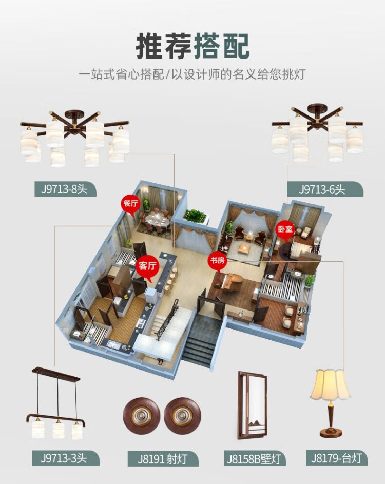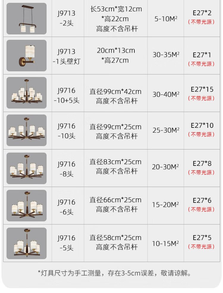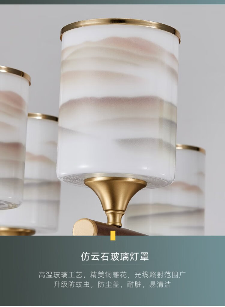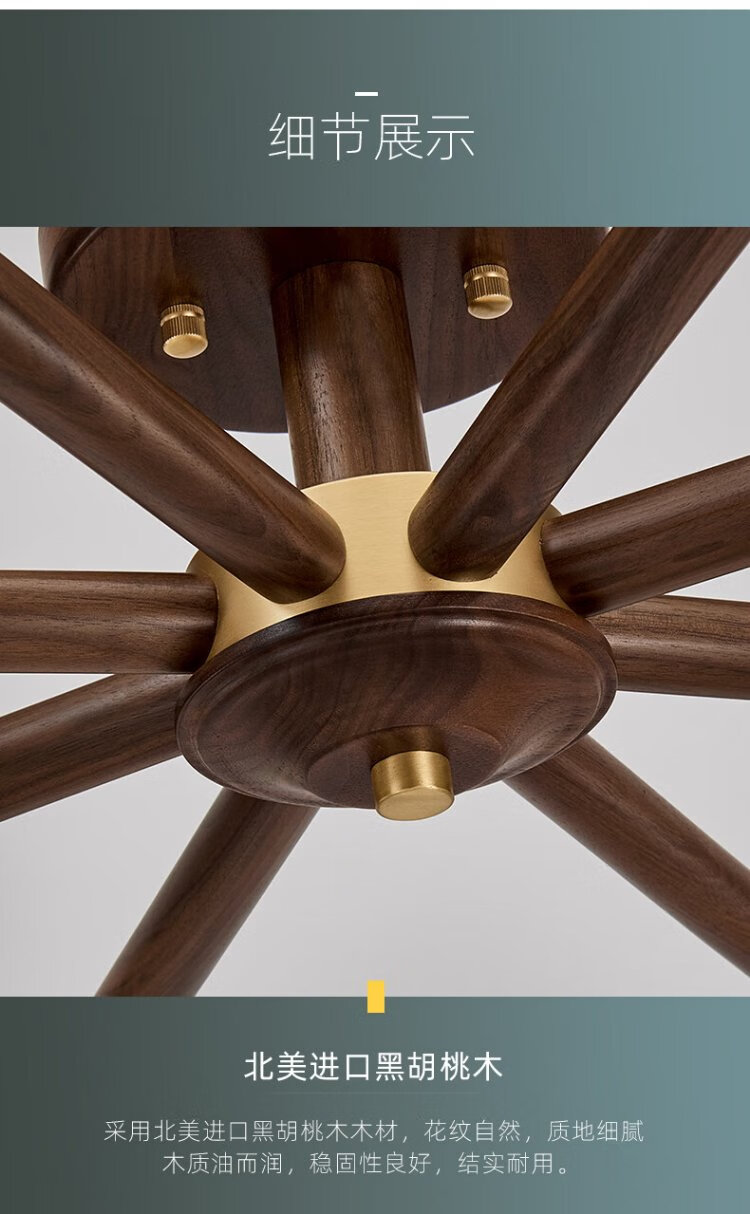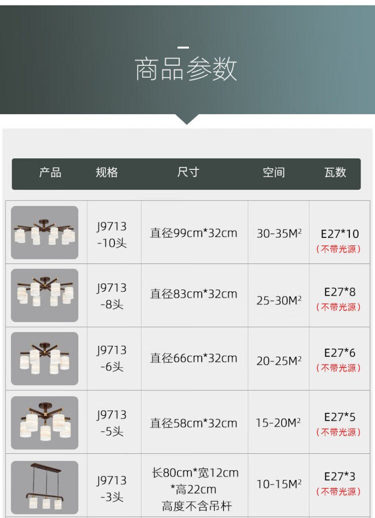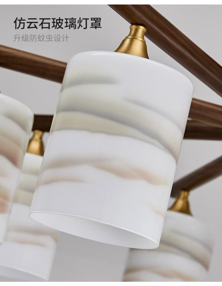 铜心木韵新中式吊灯led简约客厅灯大气黑胡桃实木餐厅卧室灯酒店别墅吊灯 J9717-5头吊灯【不带光源】