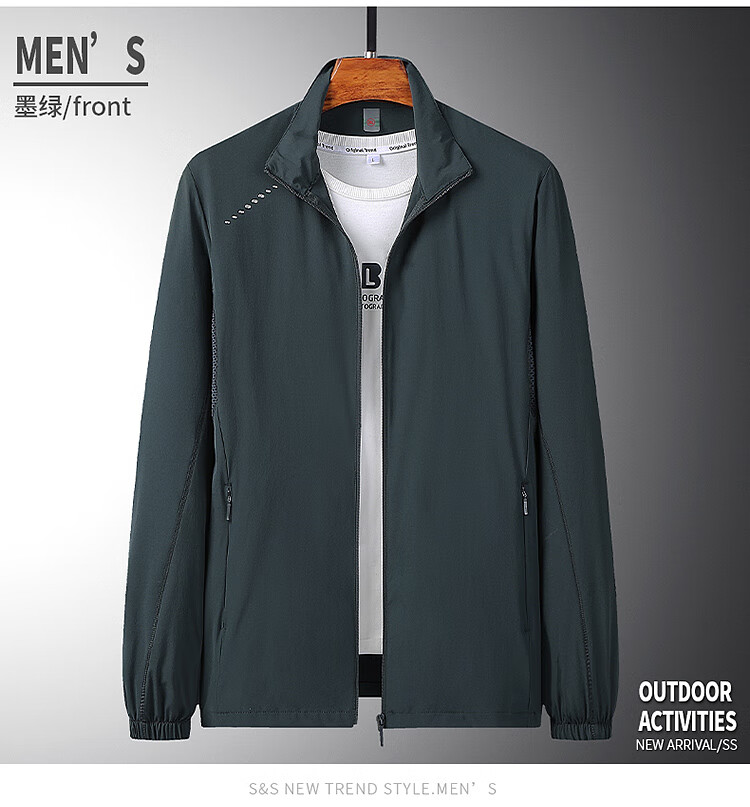 皮尔卡丹(pierre cardin)中老年春夏季薄款防嗮外套冰丝衣服春秋男士休闲中年爸爸夹克 829雾蓝 XL【建议110-125斤】