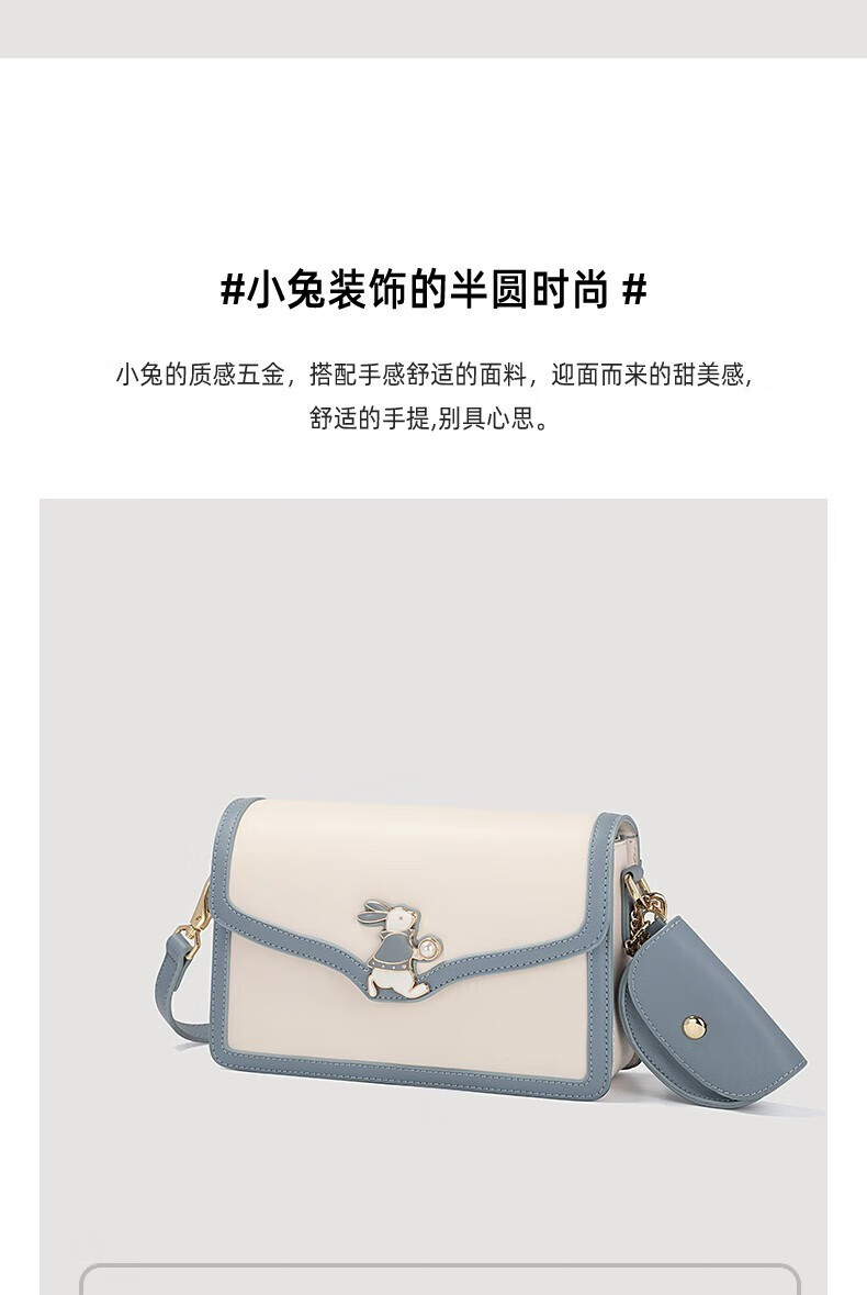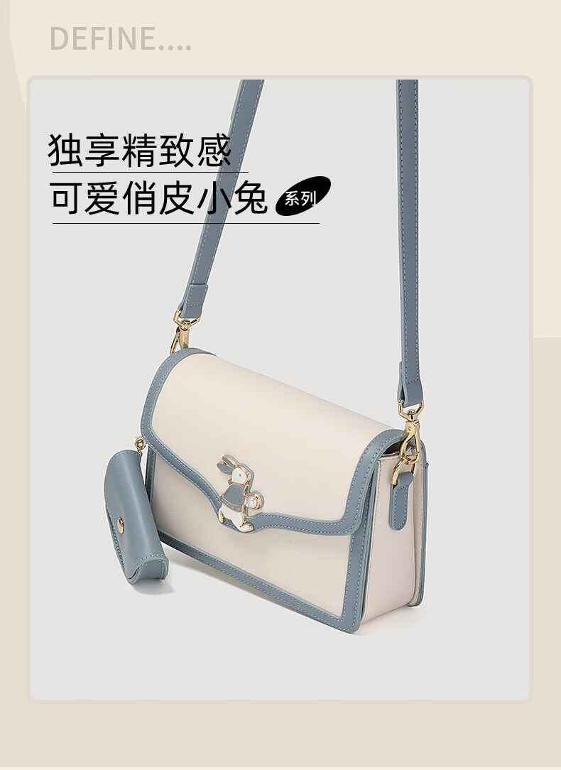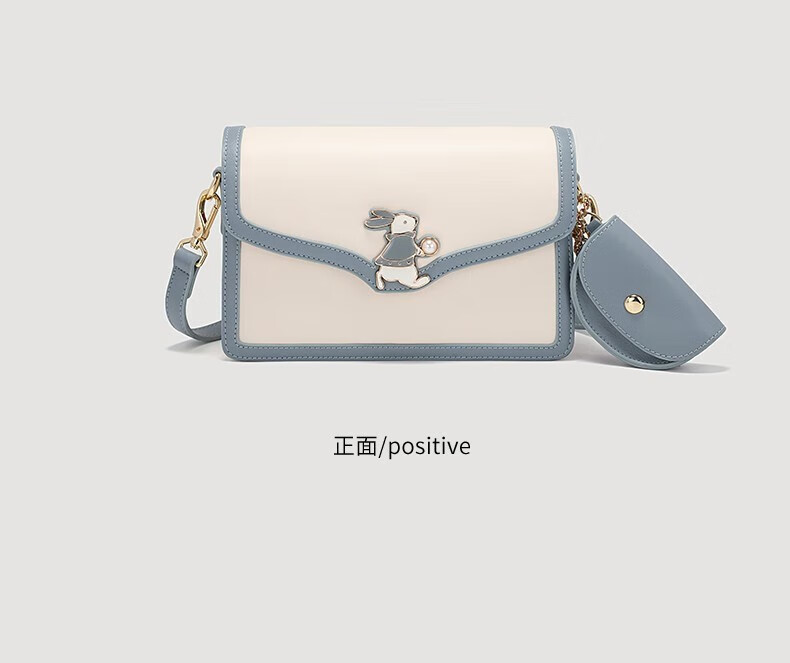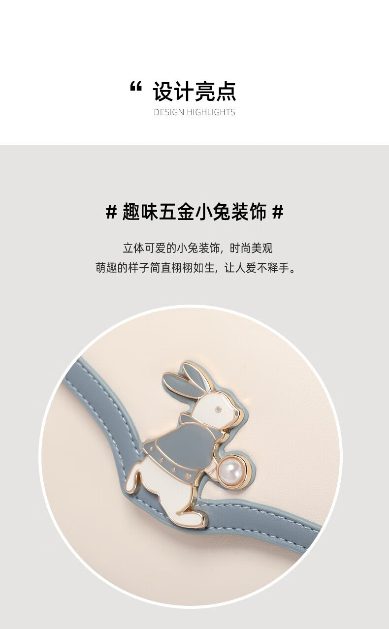 柏萨尼(PESASRIE)轻奢品牌包包女包小兔子女士单肩斜挎包真皮小方包生日跨年礼物 米白蓝-兔年限定【礼盒包装】
