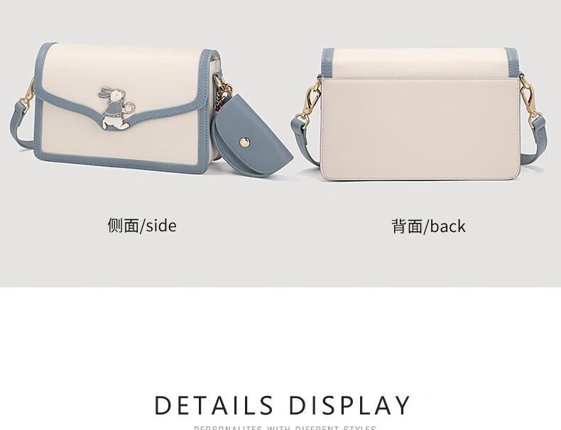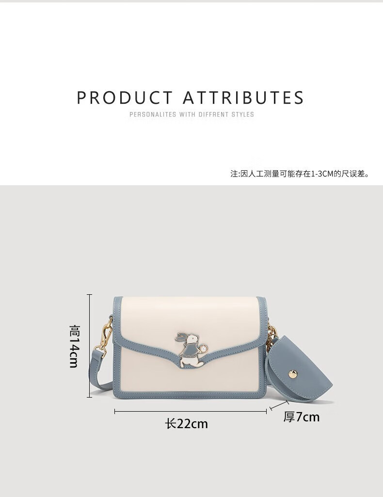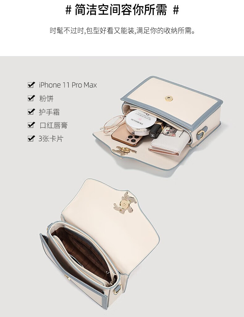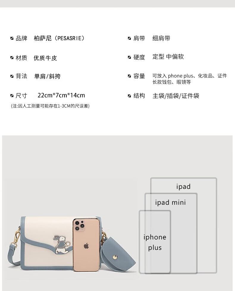 柏萨尼(PESASRIE)轻奢品牌包包女包小兔子女士单肩斜挎包真皮小方包生日跨年礼物 米白蓝-兔年限定【礼盒包装】