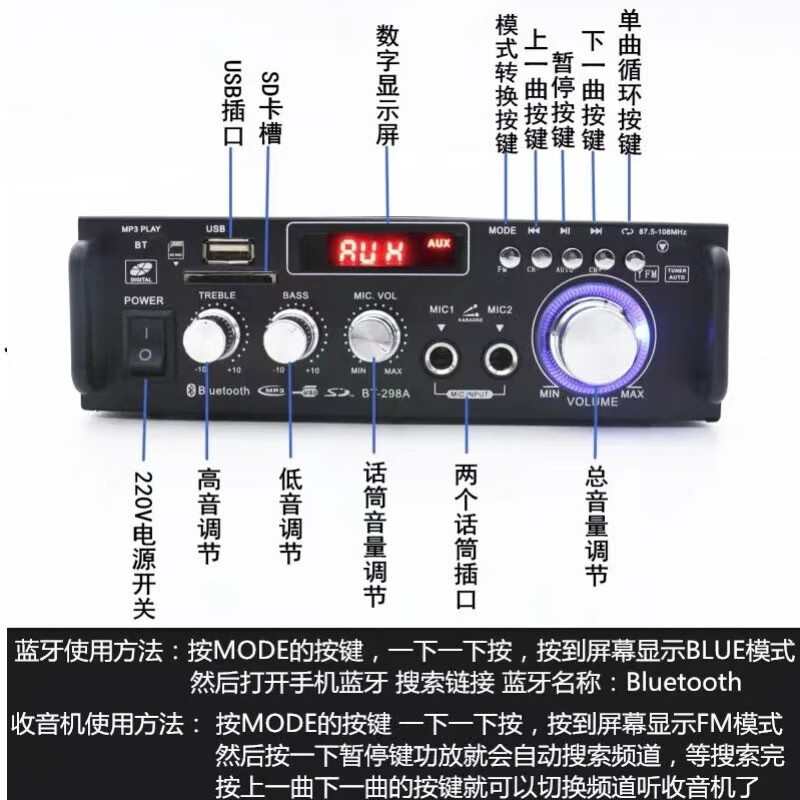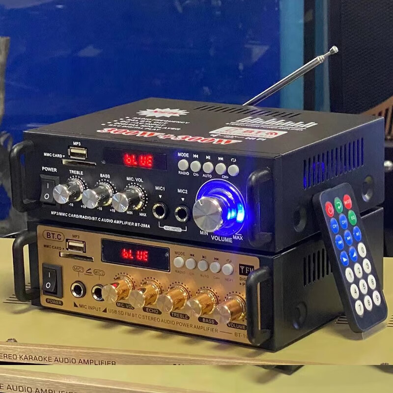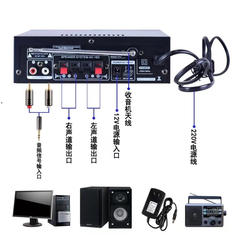 Starklok迷你小型功放机音箱功率放大 插卡U盘收音直流车载(12伏220V)功放 金色