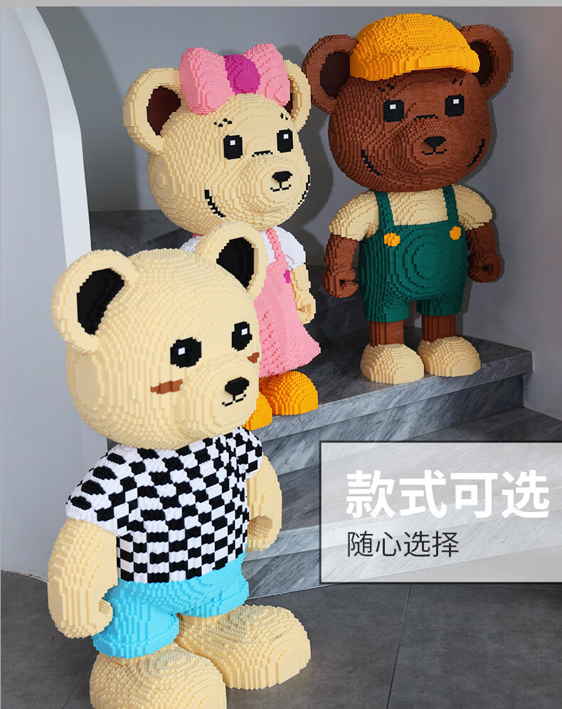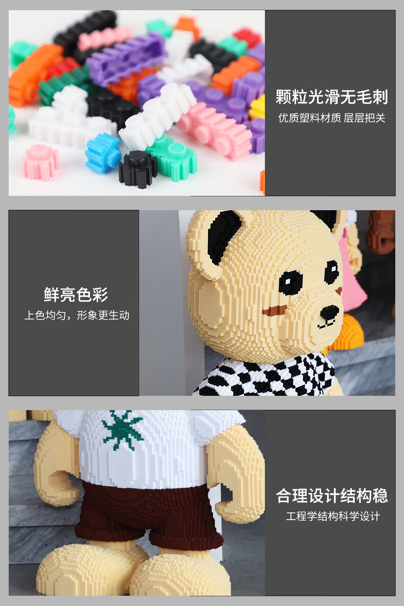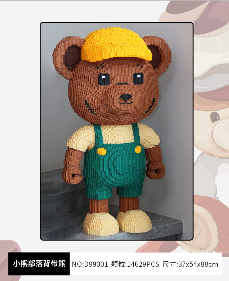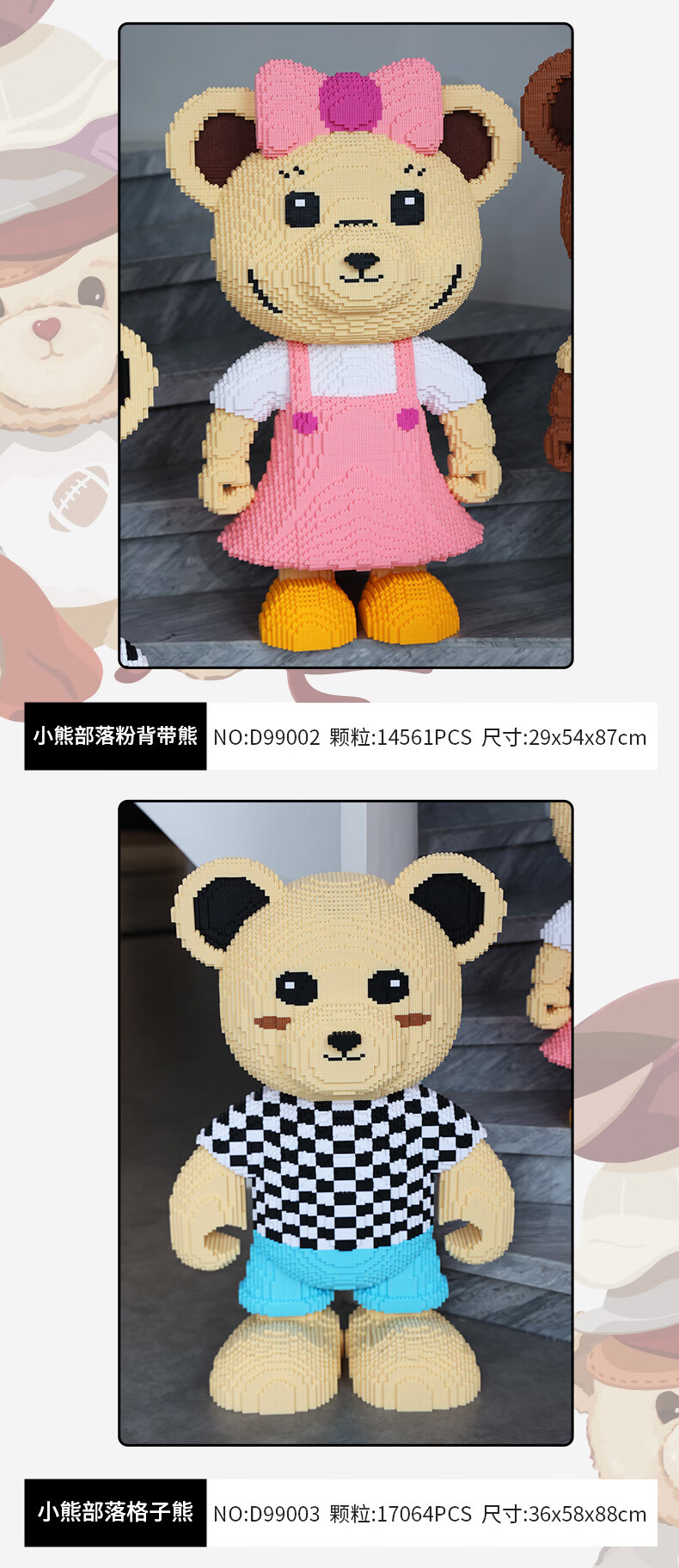 Hi Colourful Assembly Super Bear Tribe Superman Bausteine ​​mit hohem Schwierigkeitsgrad, Teddybär-Spielzeug, Ornament, Kindertagsgeschenk, rosa Riemen, Teddybär, 3895 Partikel, kostenloser Kleber, Hammer-Montagewerkzeug, 1 Set