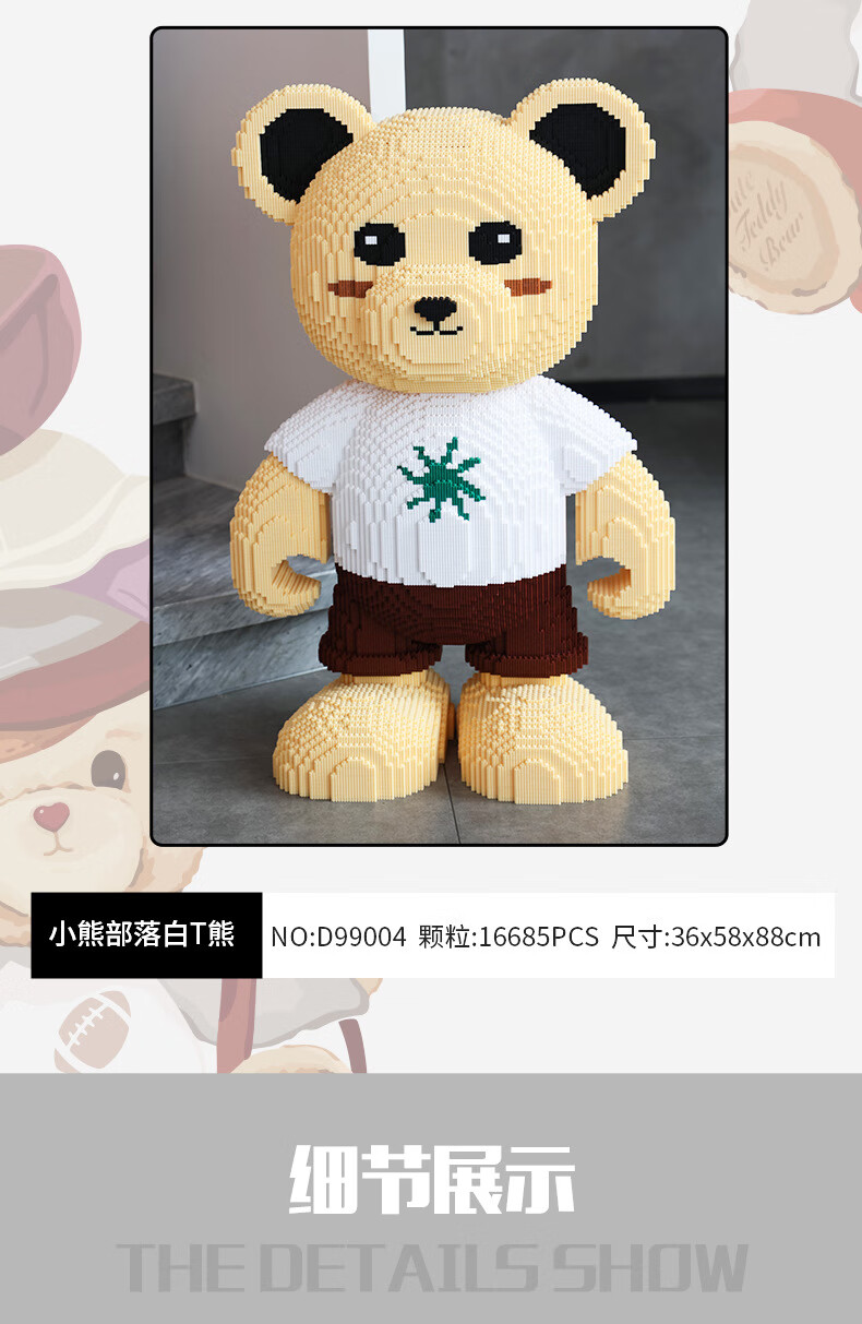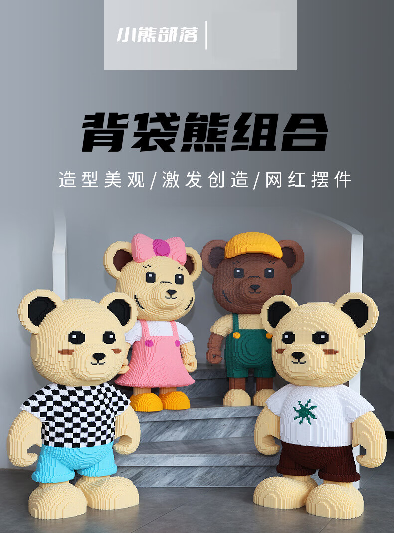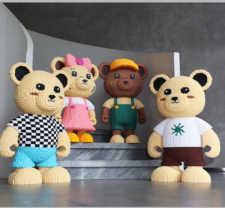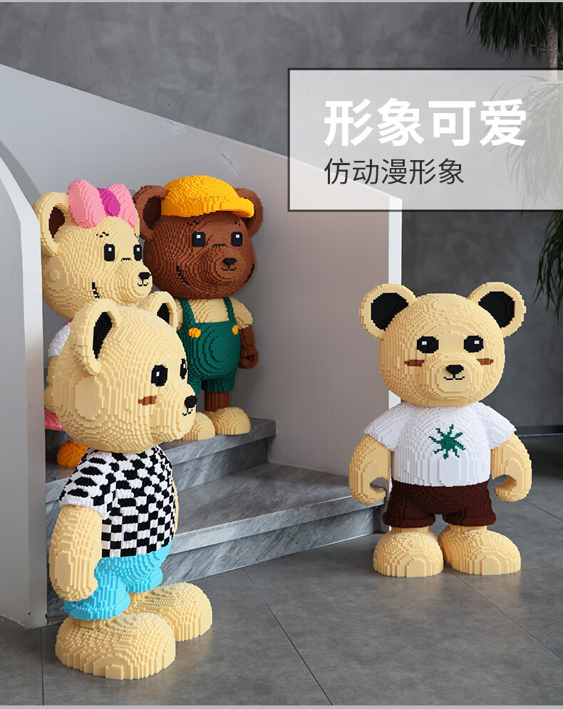 Hi Colourful Assembly Super Bear Tribe Superman Bausteine ​​mit hohem Schwierigkeitsgrad, Teddybär-Spielzeug, Ornament, Kindertagsgeschenk, rosa Riemen, Teddybär, 3895 Partikel, kostenloser Kleber, Hammer-Montagewerkzeug, 1 Set
