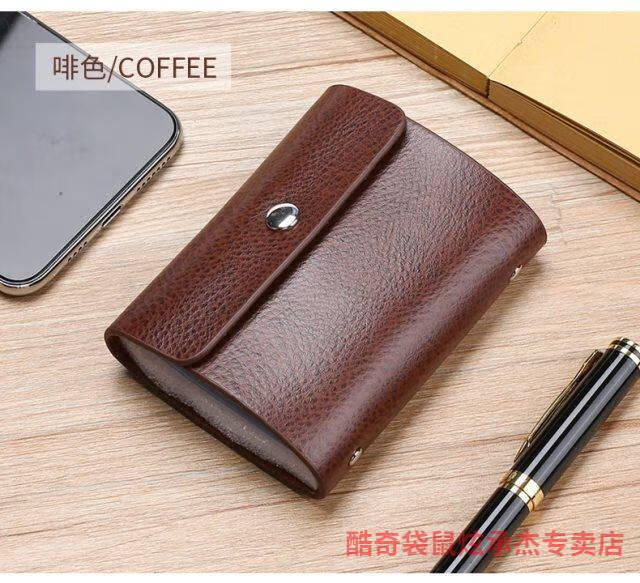 Kuqi Kangaroo (KUQIDAISHU) new men's card holder, large capacity, multiple card slots, large capacity business card holder, multi-functional card holder, compact storage card holder, business thickened version - anti-degaussing and anti-theft brush - cool coffee