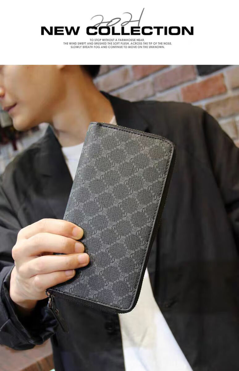 PLOVER Geldbörse aus echtem weichem Leder, lange Geldbörse für Herren, 2025, leichte Luxus-Herren-Geldbörse, Kartenhalter, große Kapazität, multifunktionale Handtasche mit Reißverschluss, Karomuster