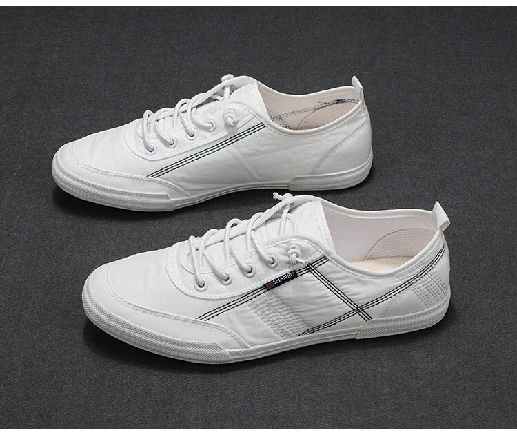 CARTELO neue Sommer-Leinwandschuhe für Herren, koreanische Version, vielseitige Freizeitschuhe, atmungsaktive Jugend-Schnürschuhe aus Eisseidenstoff, weiße Schuhe für Herren, weiß 21011 38