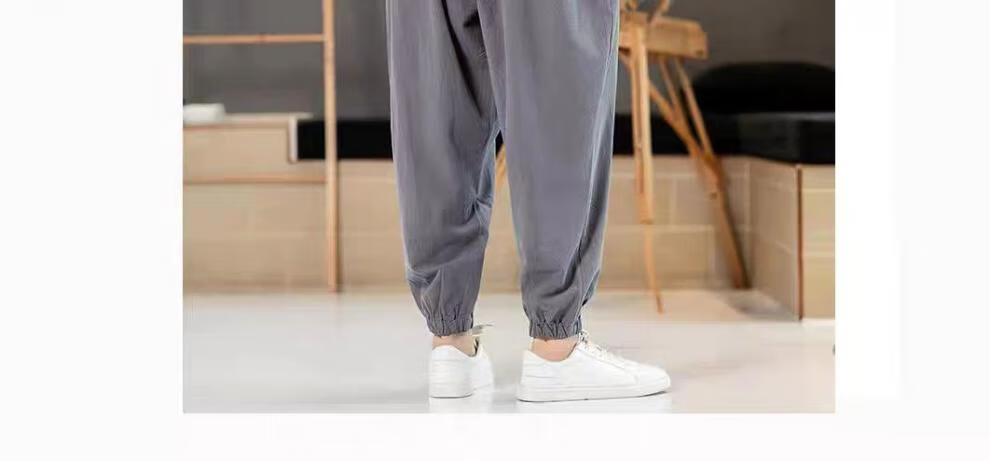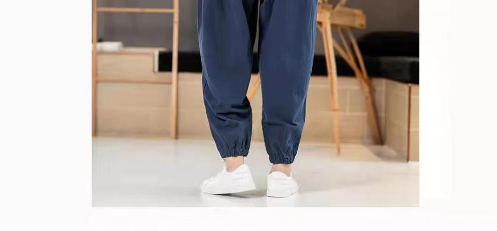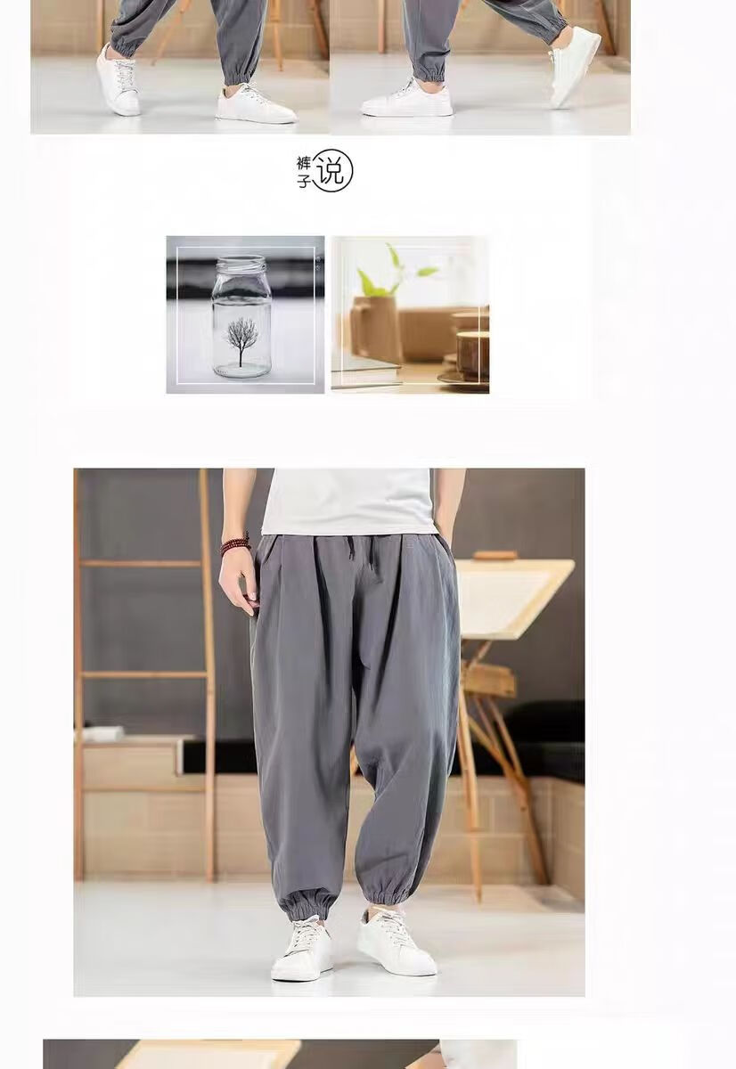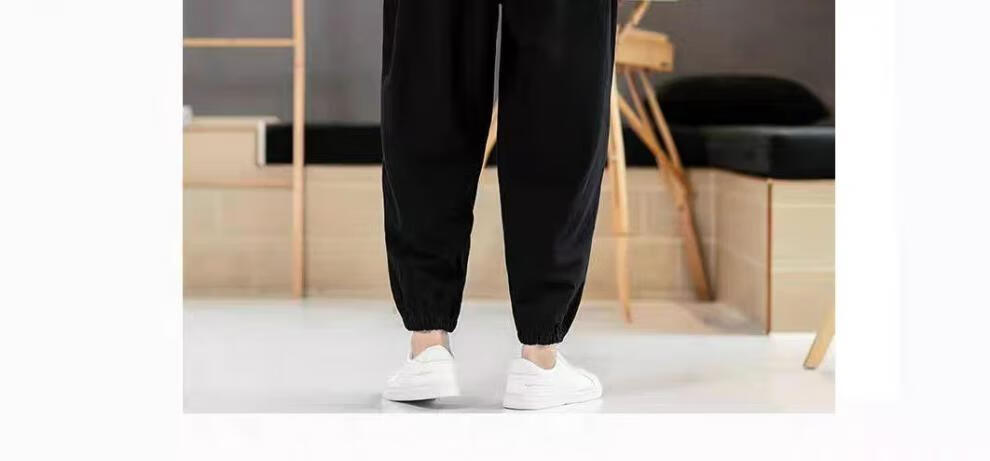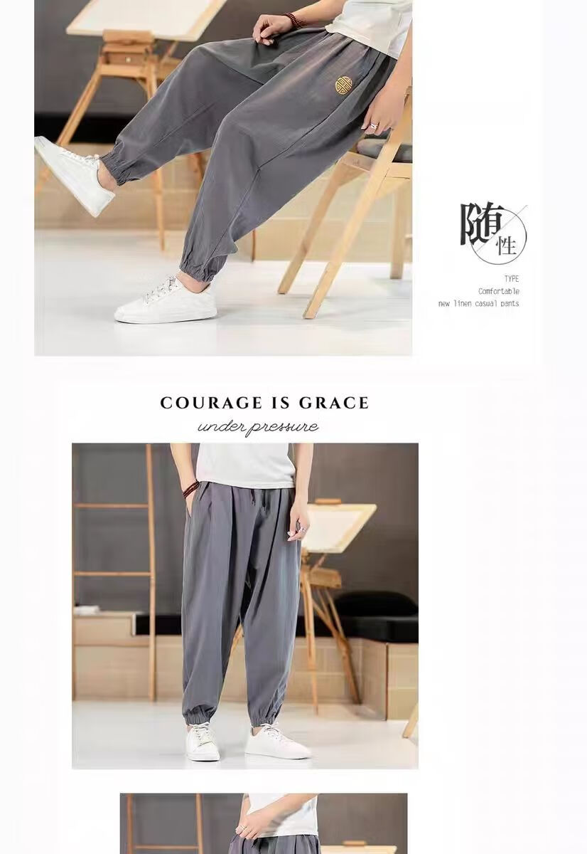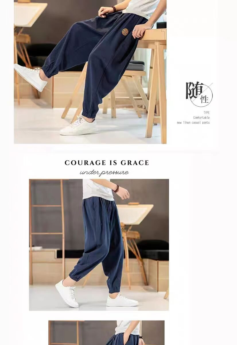 皮尔卡丹(pierre cardin)灯笼裤男宽松中国风休闲九分裤夏季薄款刺绣束脚裤棉麻针织 黑色 2XL 145斤-160斤