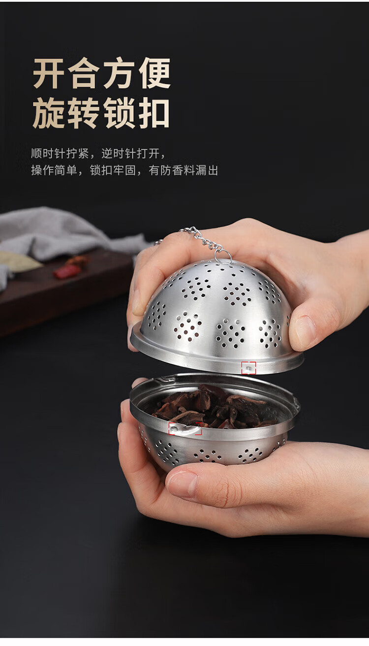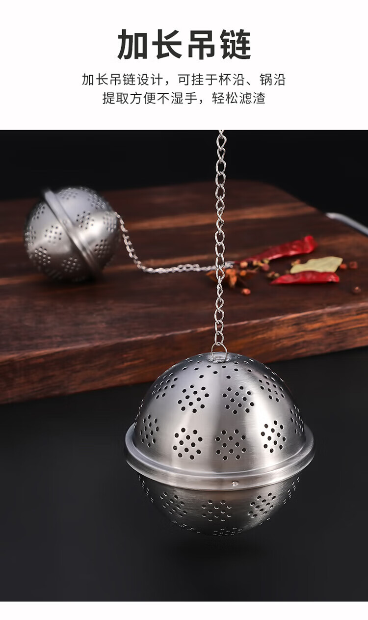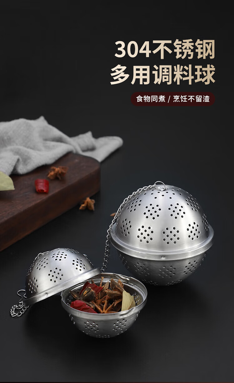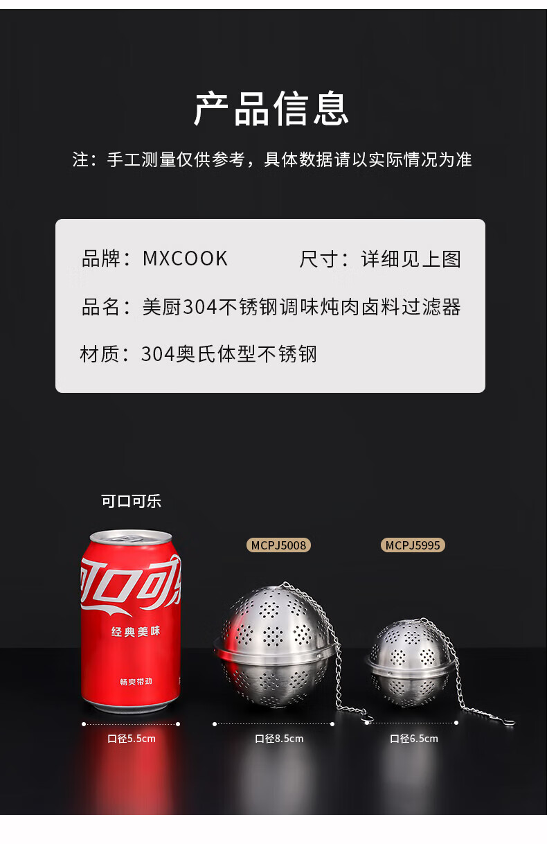 MAXCOOK 304 stainless steel mesh seasoning balls, seasoning bags, stewed meat soup balls, brine balls, tea seasoning spice balls, diameter 8.5cm, large size MCPJ5008