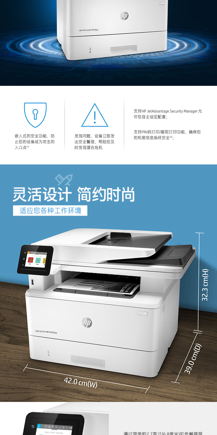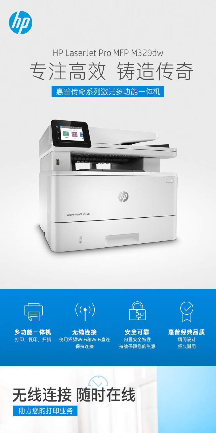 HP kommerzieller Schwarzweiß-Laserdrucker für Büro, Kopier- und Scan-All-in-One-Gerät 329dw (drahtloser Netzwerk-Drei-in-Eins-Dokumenteneinzug) Standard