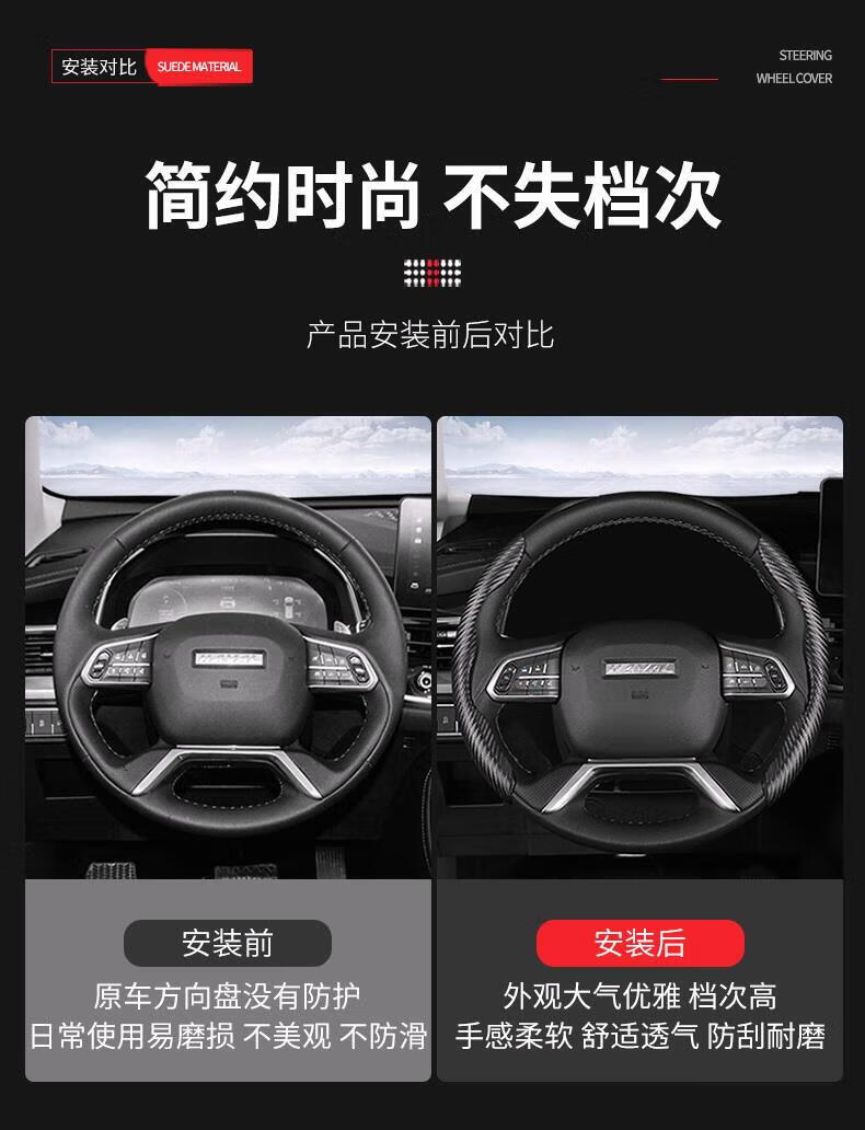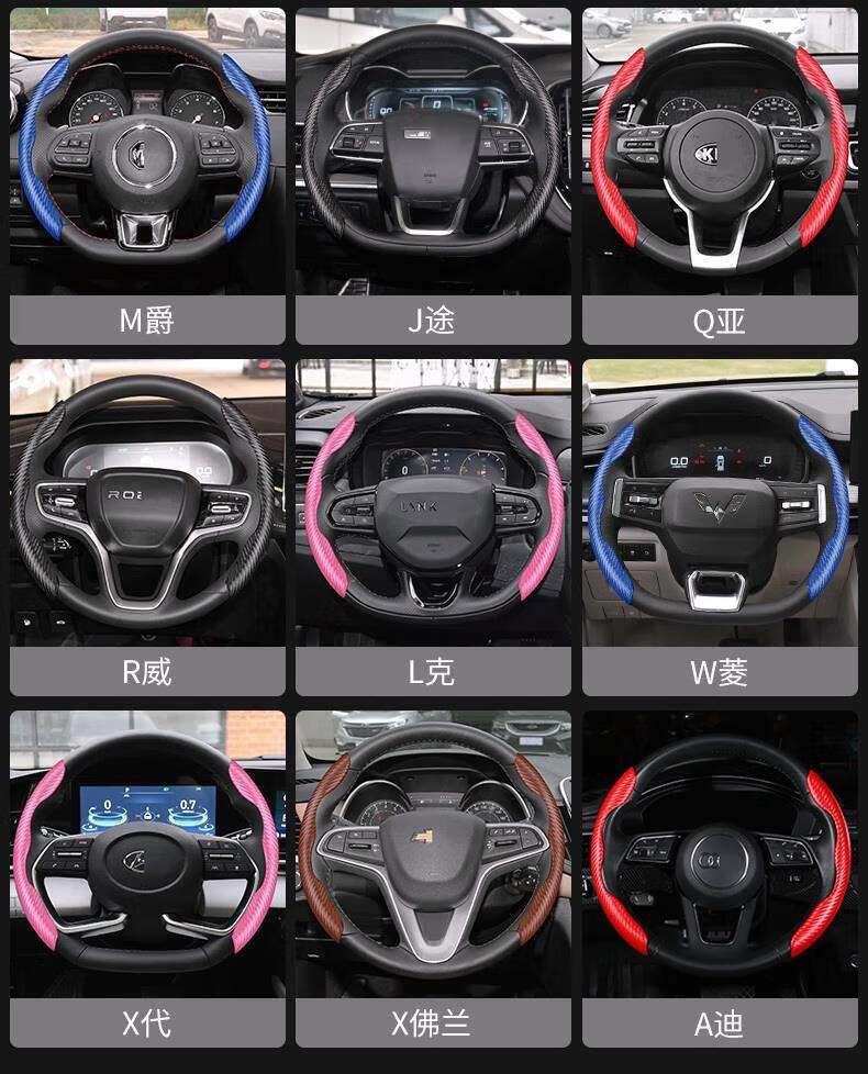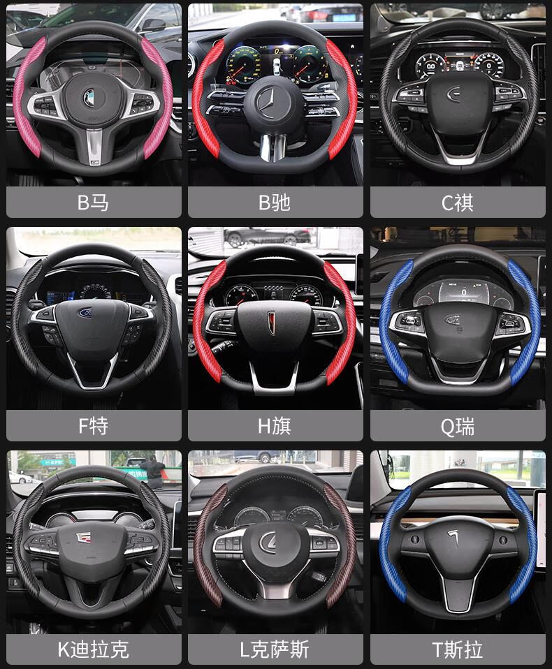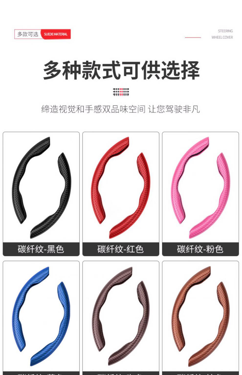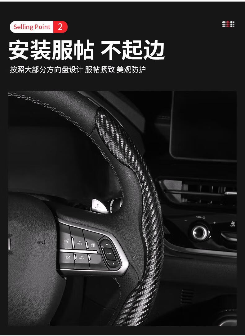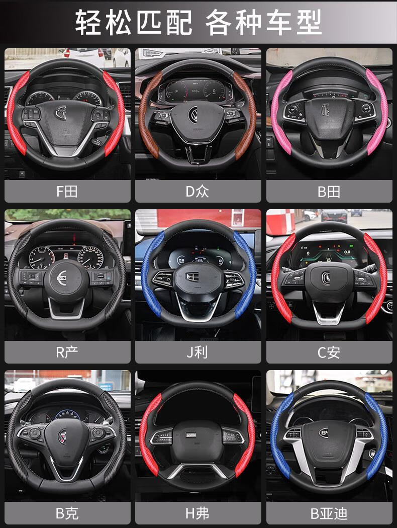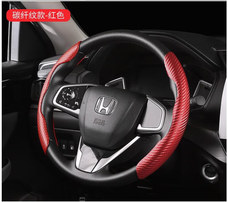Yiyuan Automobil-Lenkradabdeckung, geeignet für Peugeot 408 3008 508L 4008 307 5008 206 308, Auto-Lenkrad-Anti-Rutsch-Abdeckung mit Kohlefasermuster (rotes Paar)