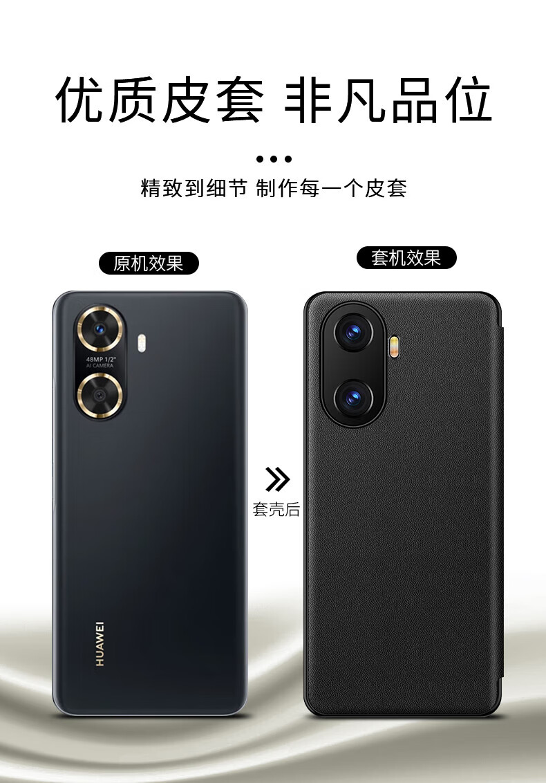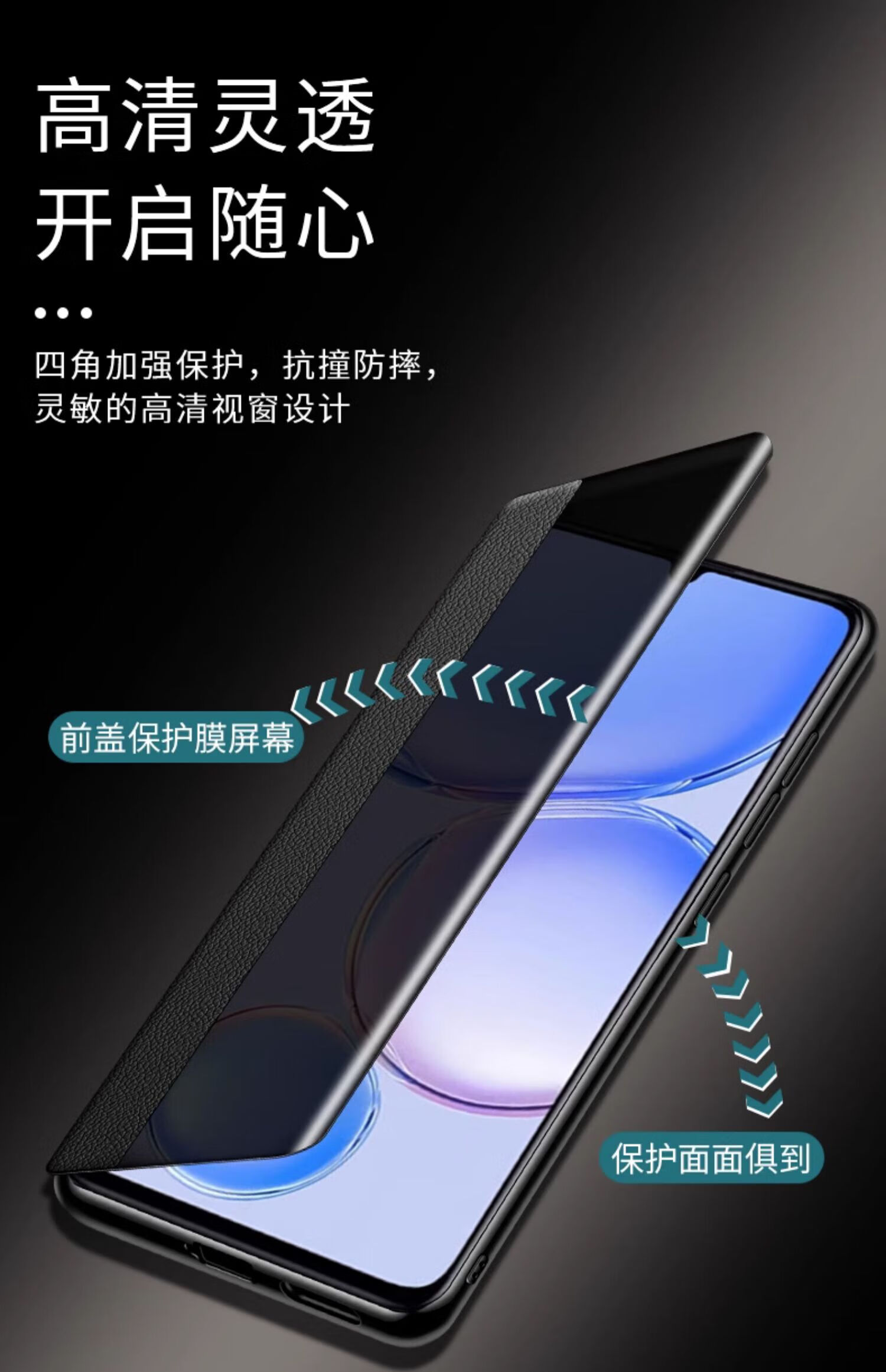 ZKU Huawei nvoa10SE Handyhülle BNE-AL00 All-Inclusive-Flip-Lederhülle für Männer, mittleres Alter und ältere Unternehmen, mattierte Anti-Fall-Schutzhülle, Smart-Screen-Antworttelefon Softshell nova10SE elegante schwarze All-Inclusive-Anti-Fall-Flip-Lederhülle + Folie