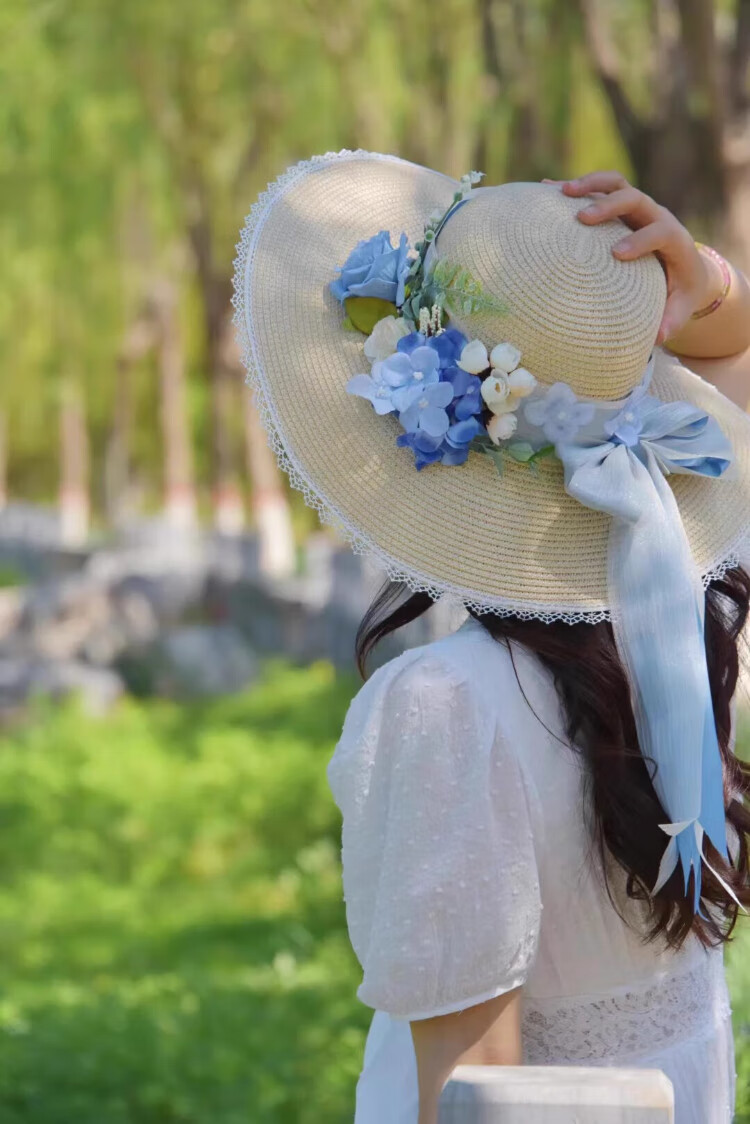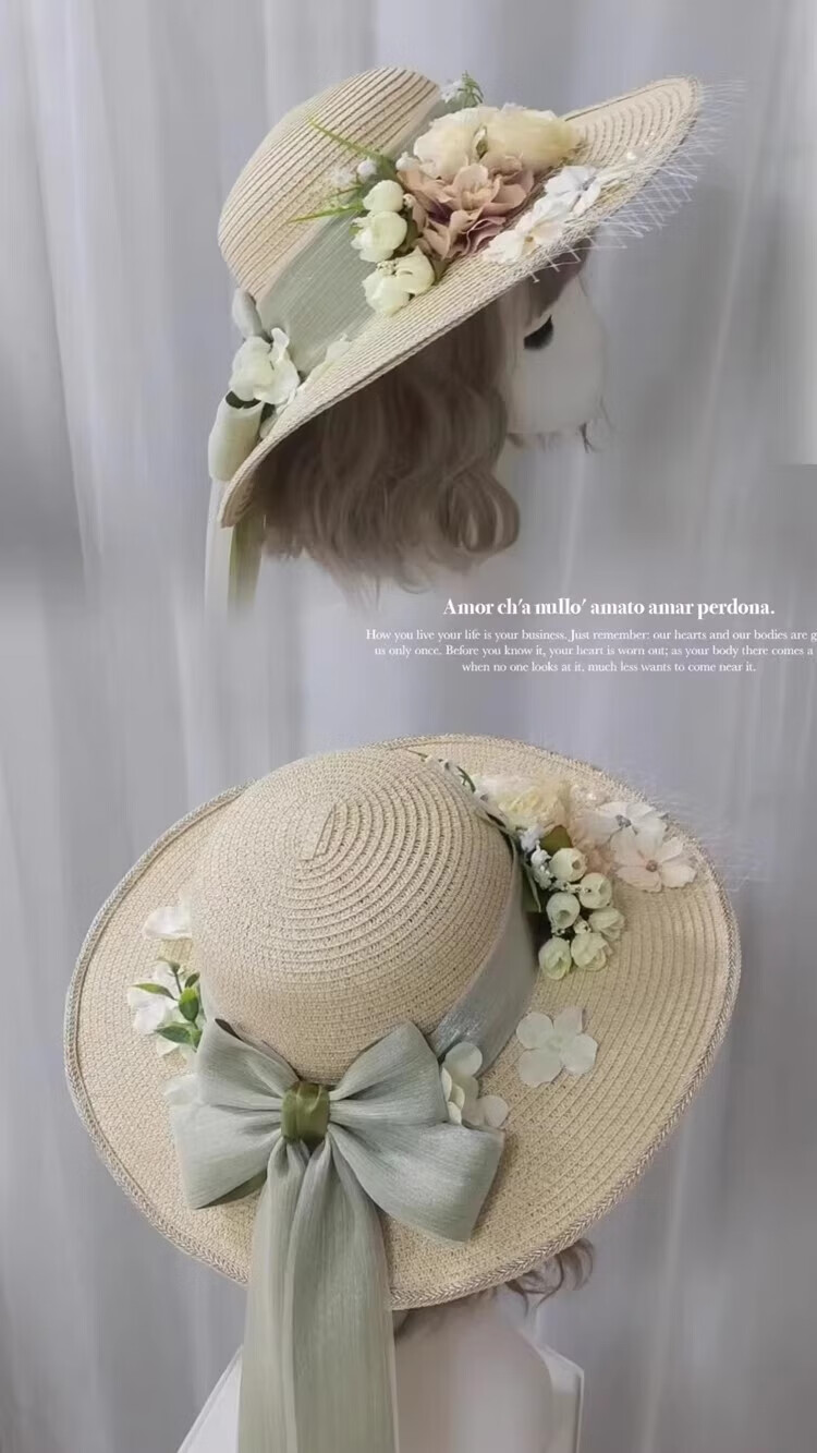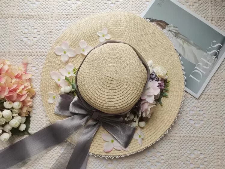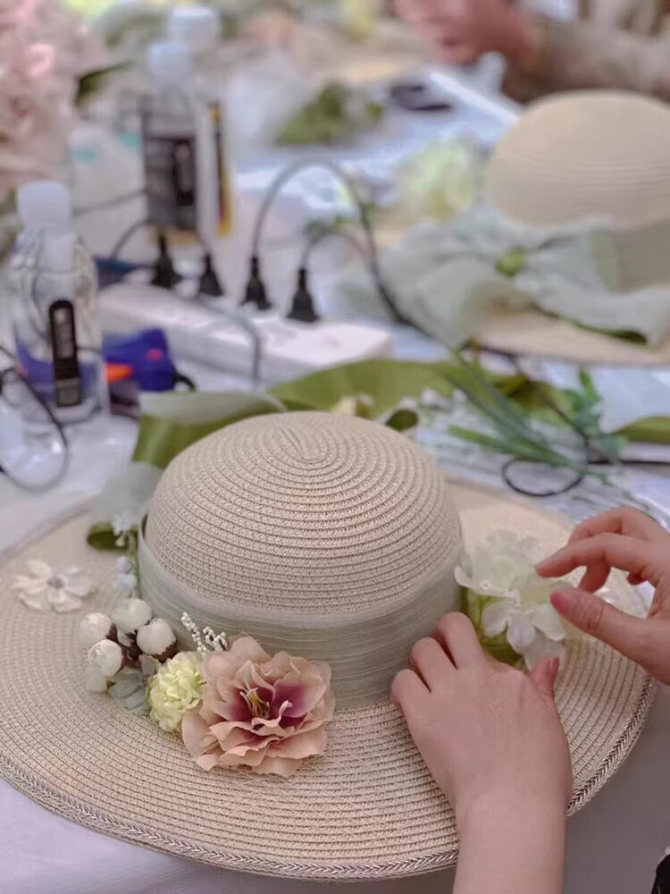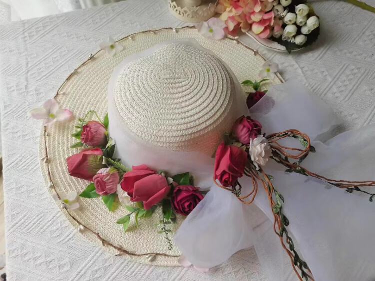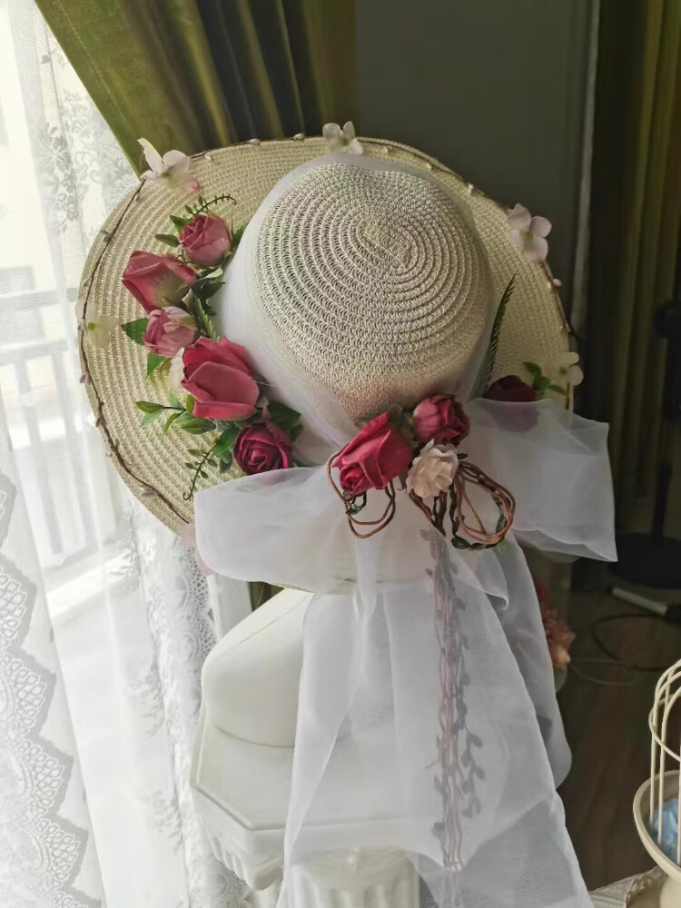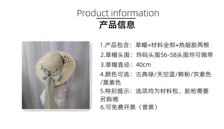 Handmade diy straw hat sun hat Mother's Day gift holiday sun hat hat event warm-up material package silk flower style classic green material package one size fits all