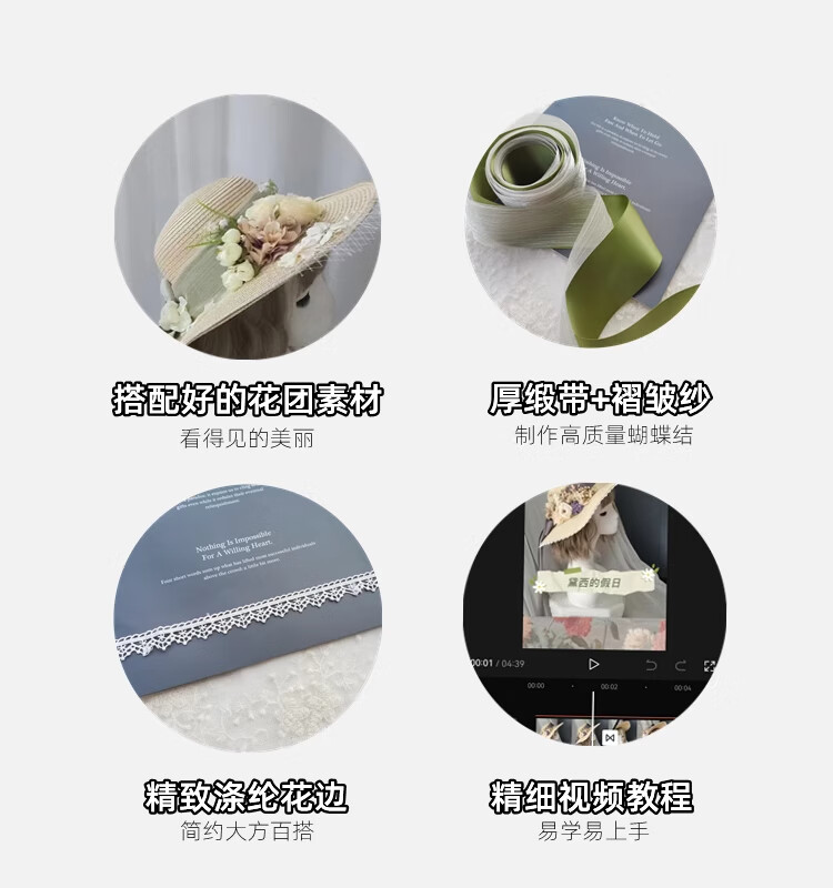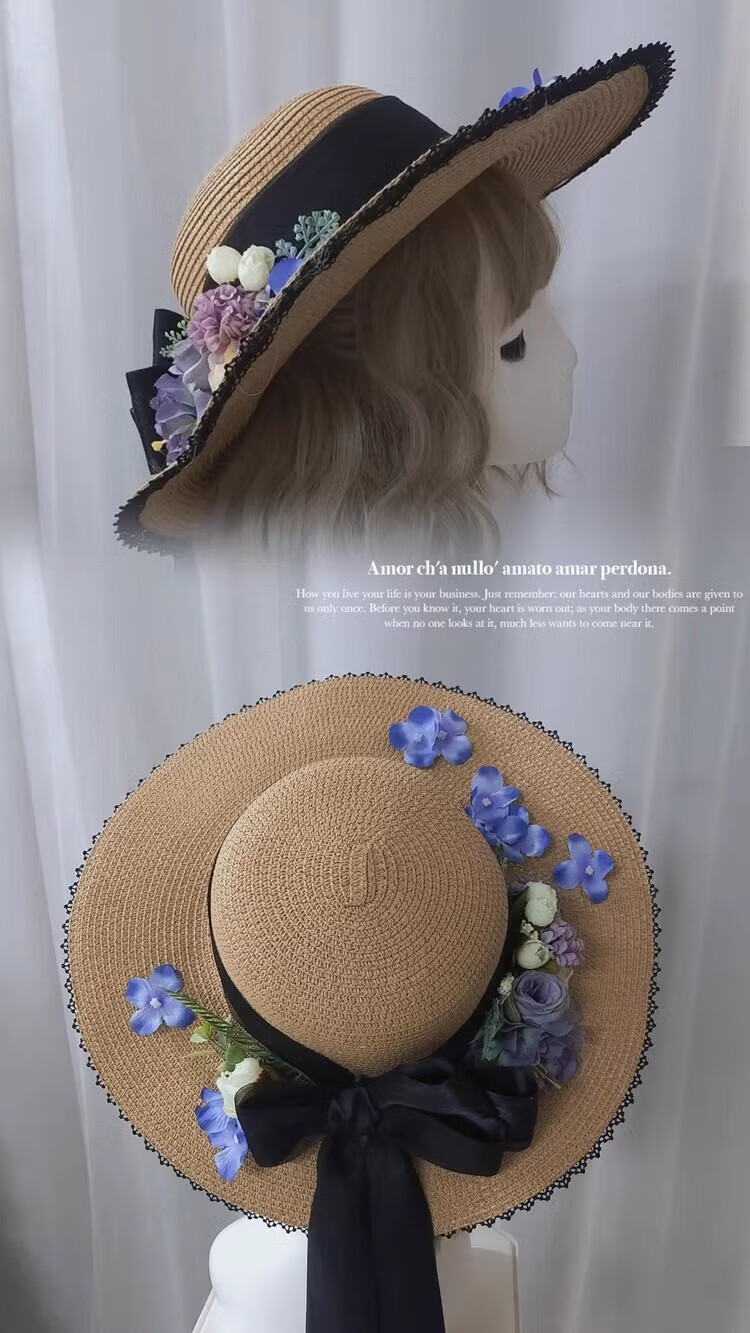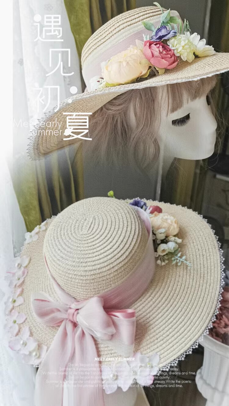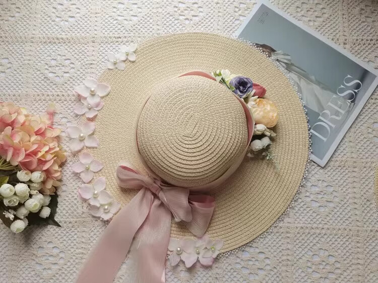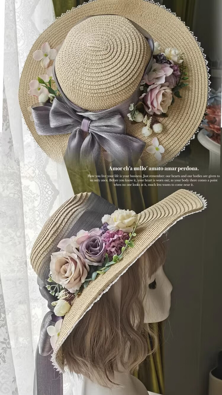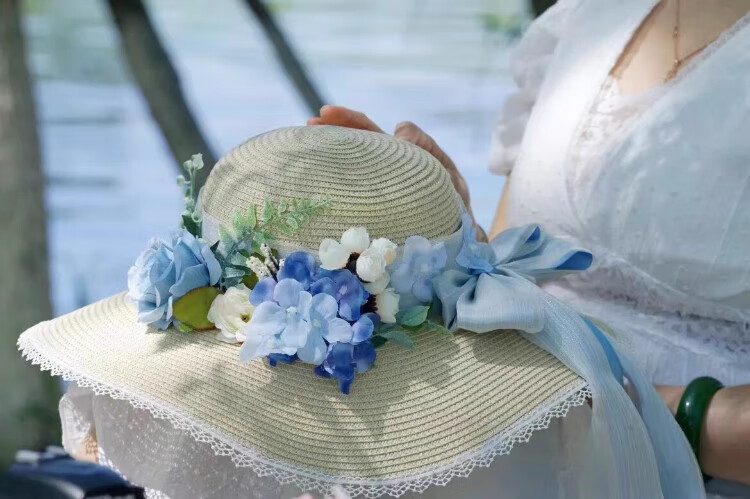 Handmade diy straw hat sun hat Mother's Day gift holiday sun hat hat event warm-up material package silk flower style classic green material package one size fits all