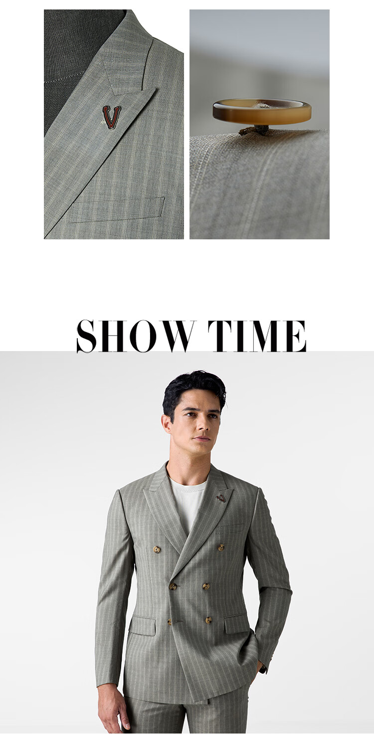 VICUTU Men's Suit Jacket 100% Wool Business Formal Suit Jacket Top Brown Stripes 180B