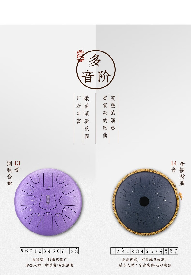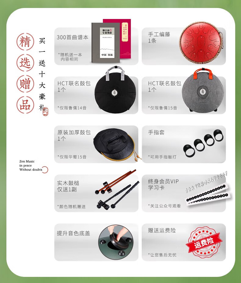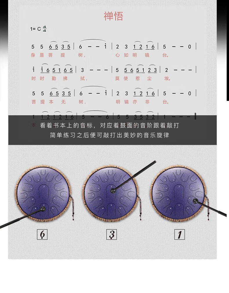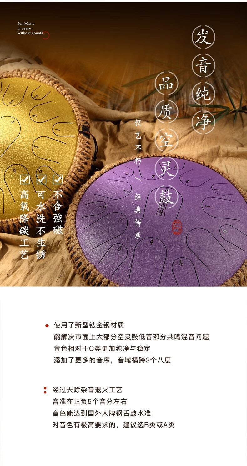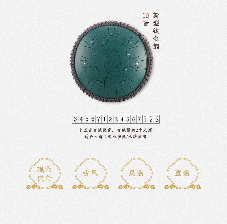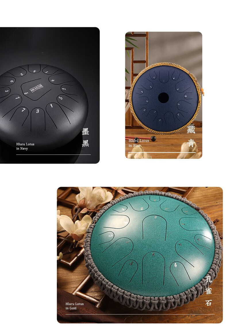 鲁儒鲁儒空灵鼓15音钛金钢羊阿宝空灵鼓高音伴侣8音琴初学专业色空鼓 钛金钢款15音孔雀石