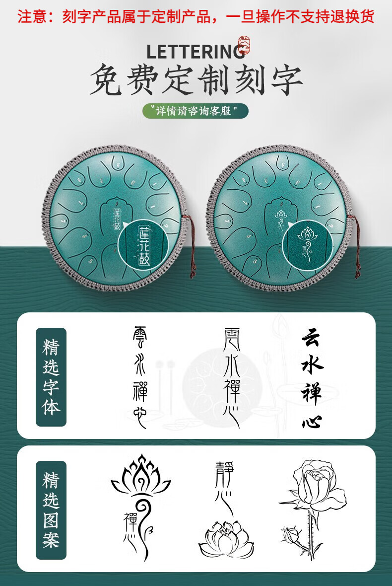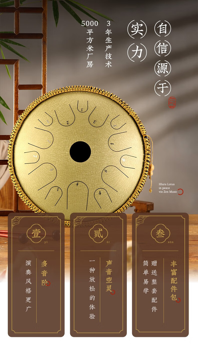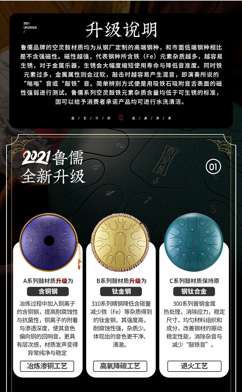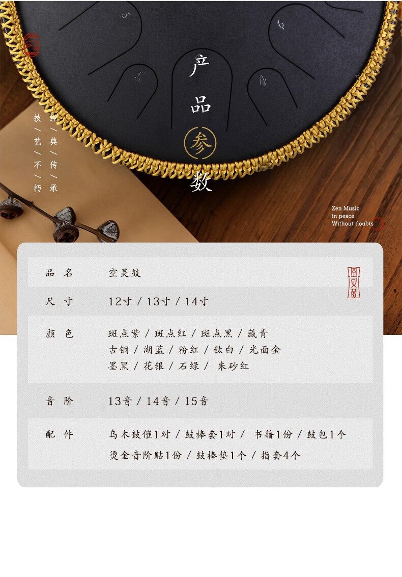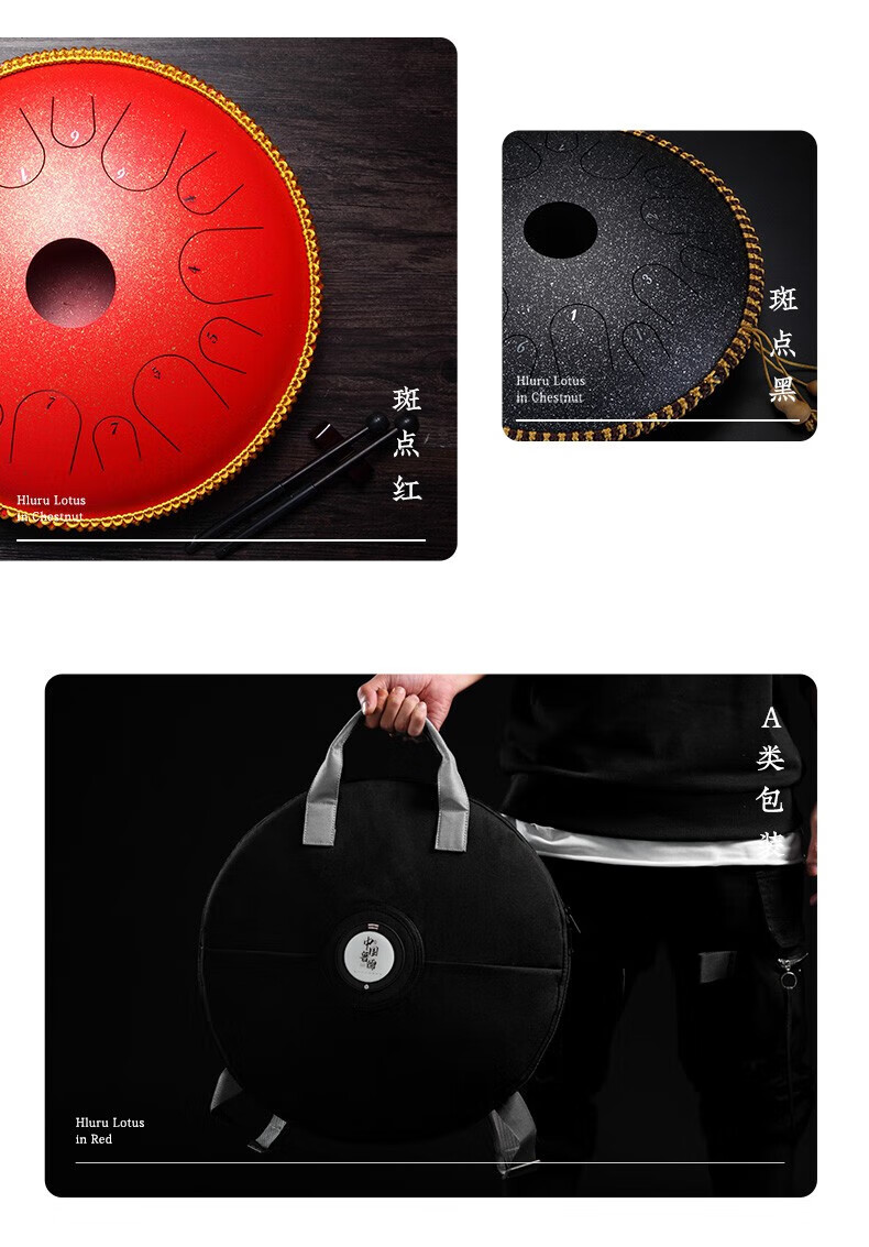 鲁儒鲁儒空灵鼓15音钛金钢羊阿宝空灵鼓高音伴侣8音琴初学专业色空鼓 钛金钢款15音孔雀石