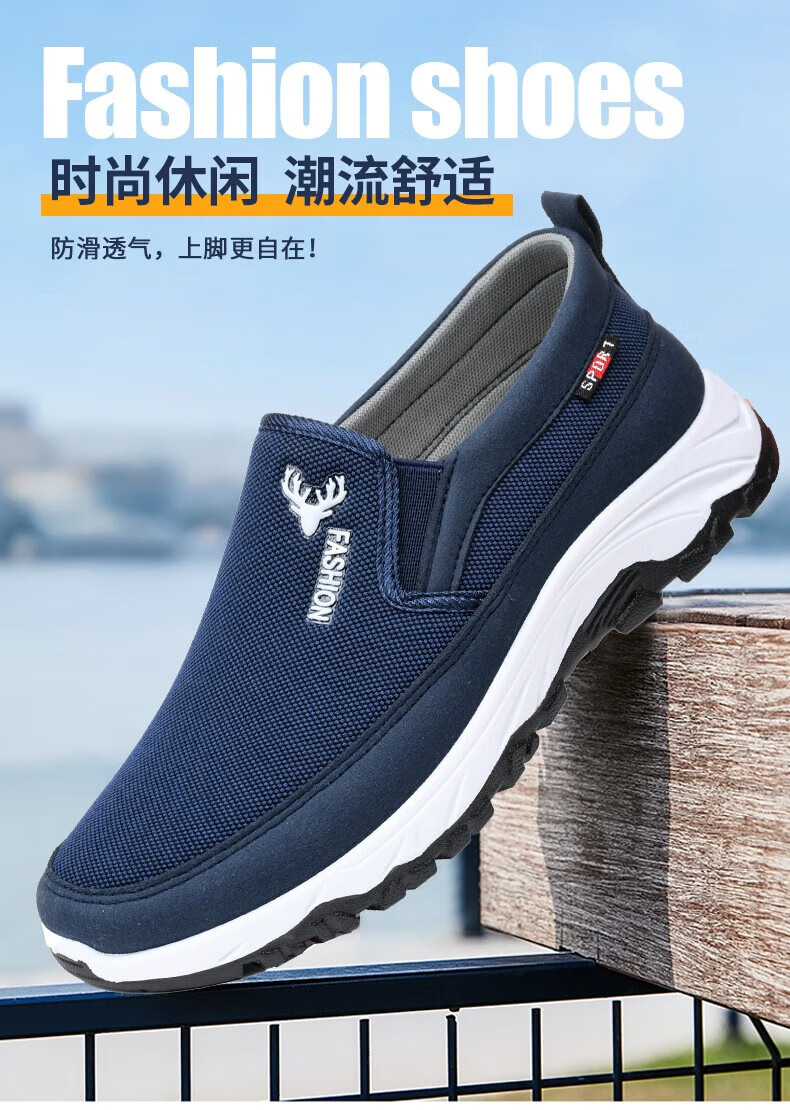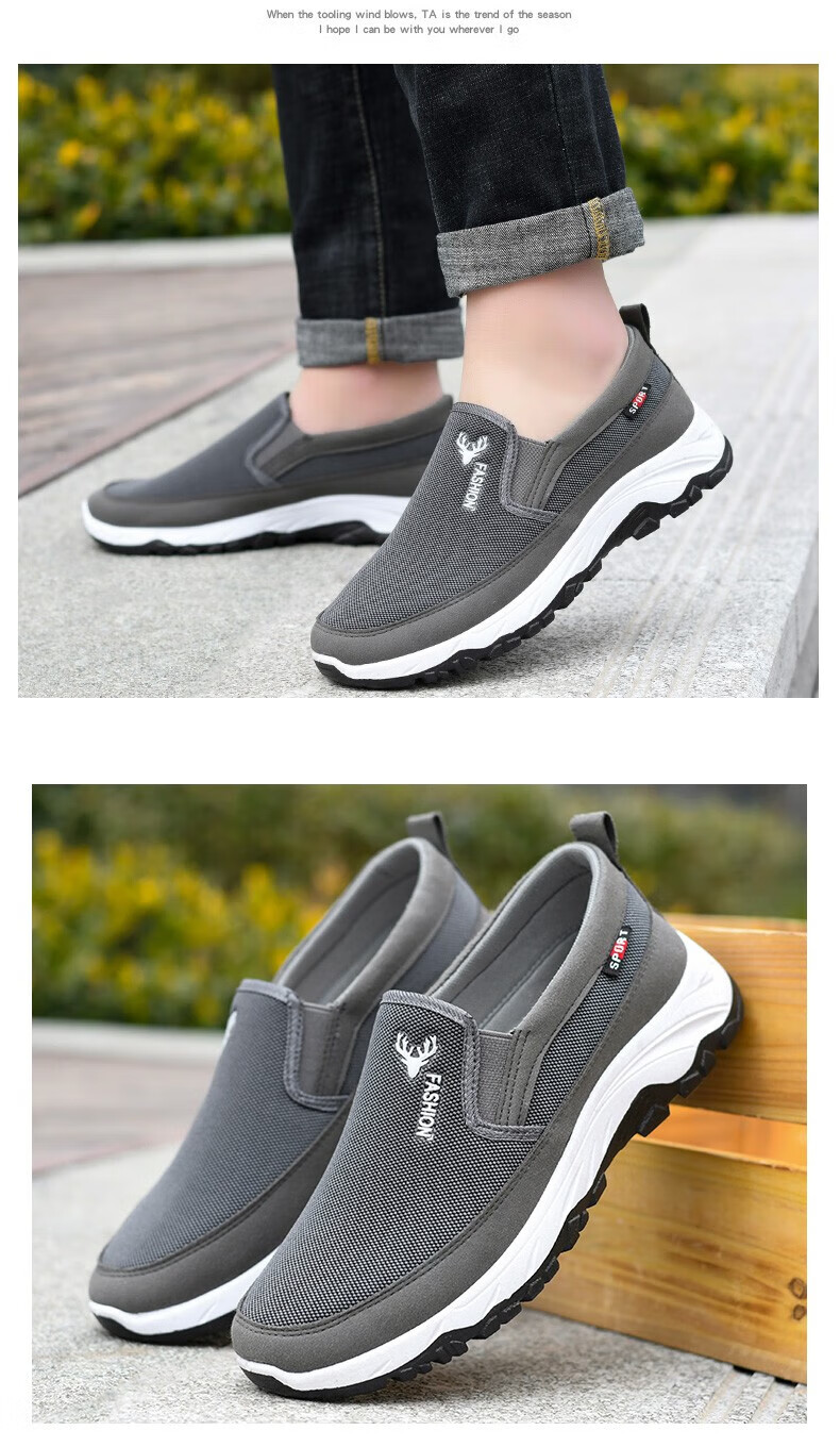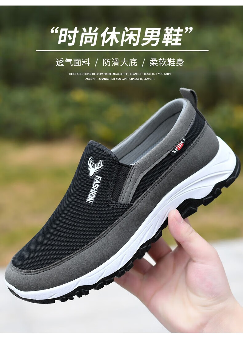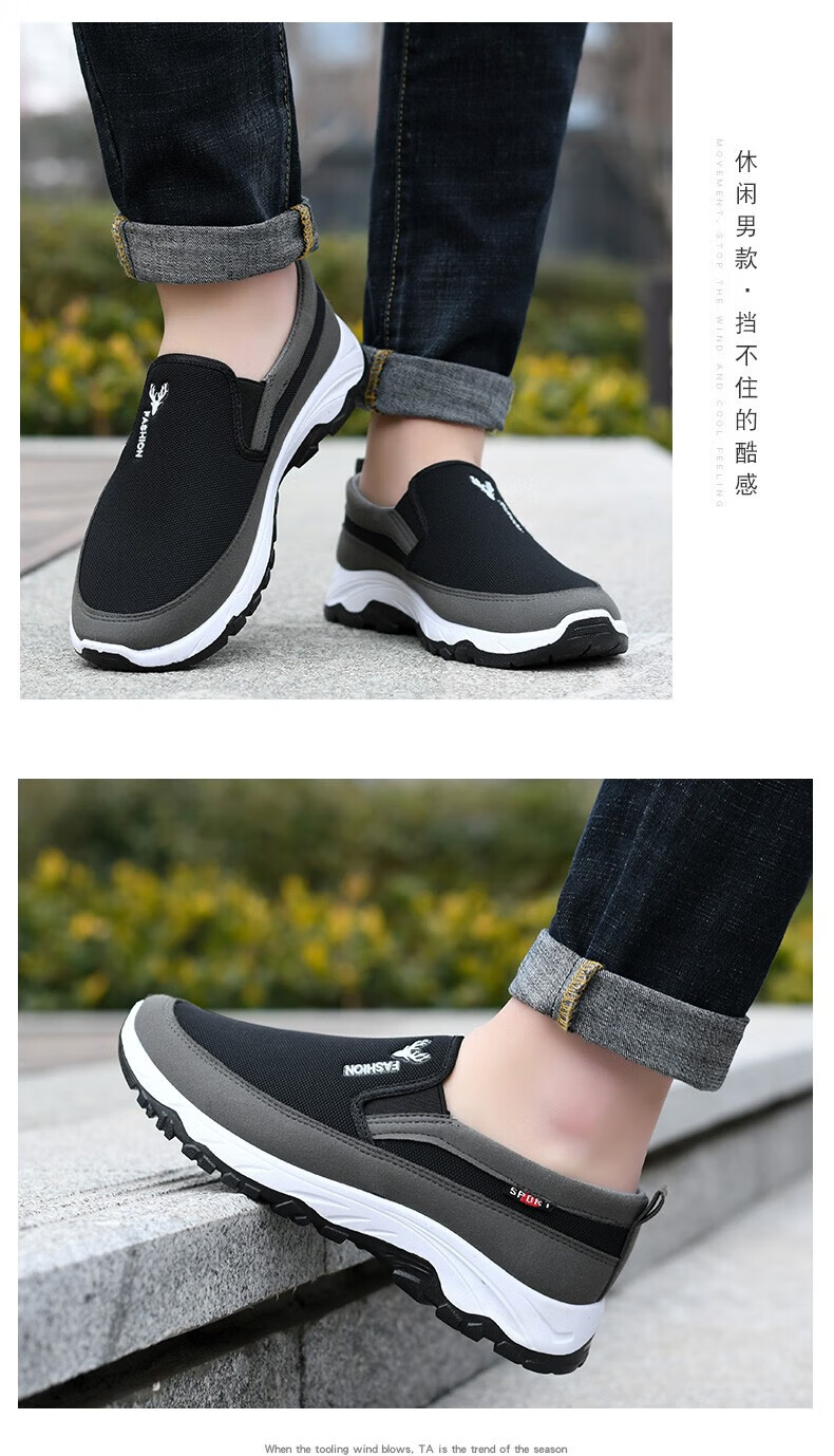 鬼八哥老北京布鞋夏季中老年爸爸鞋子男防滑耐磨一脚蹬懒人软底板鞋男 FH-东弘LS-118黑色 41