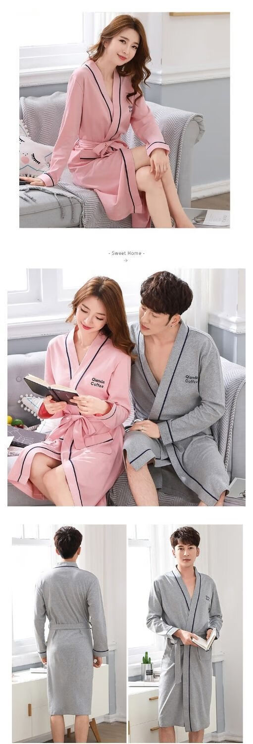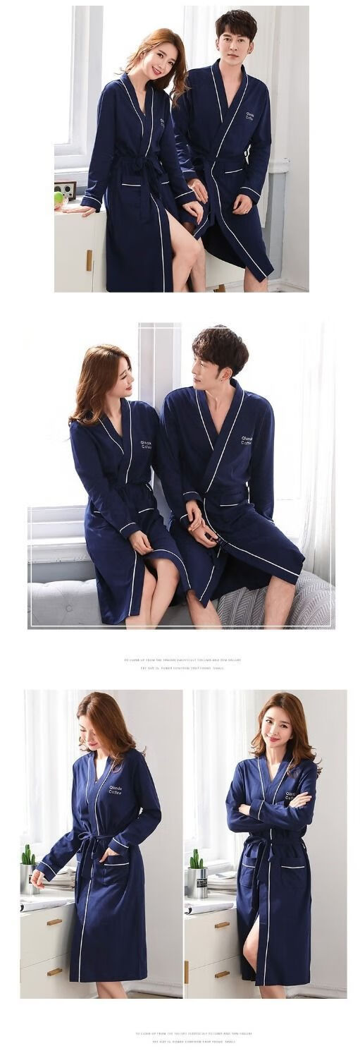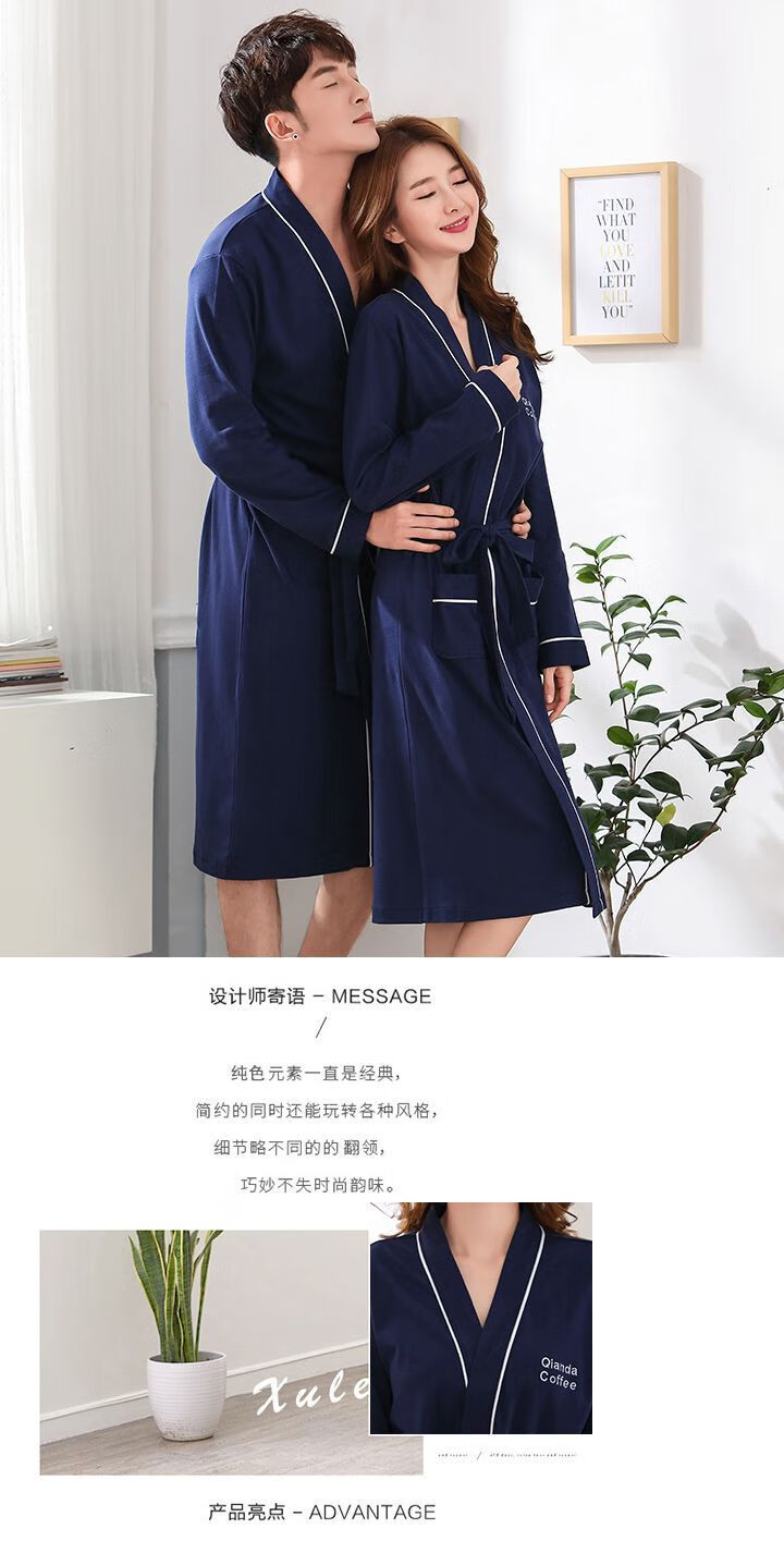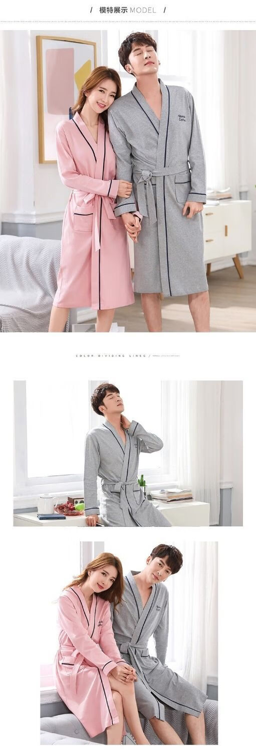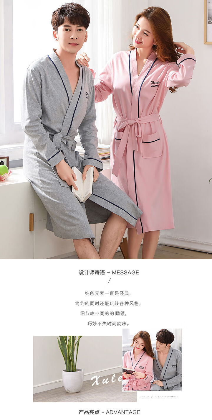 俏丽雅(qiaoliya)情侣睡袍纯棉长袖春秋季男士浴袍女长款浴衣情侣睡衣夏季大码 723女 XL女