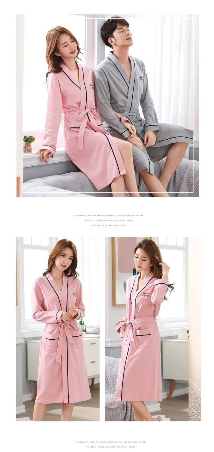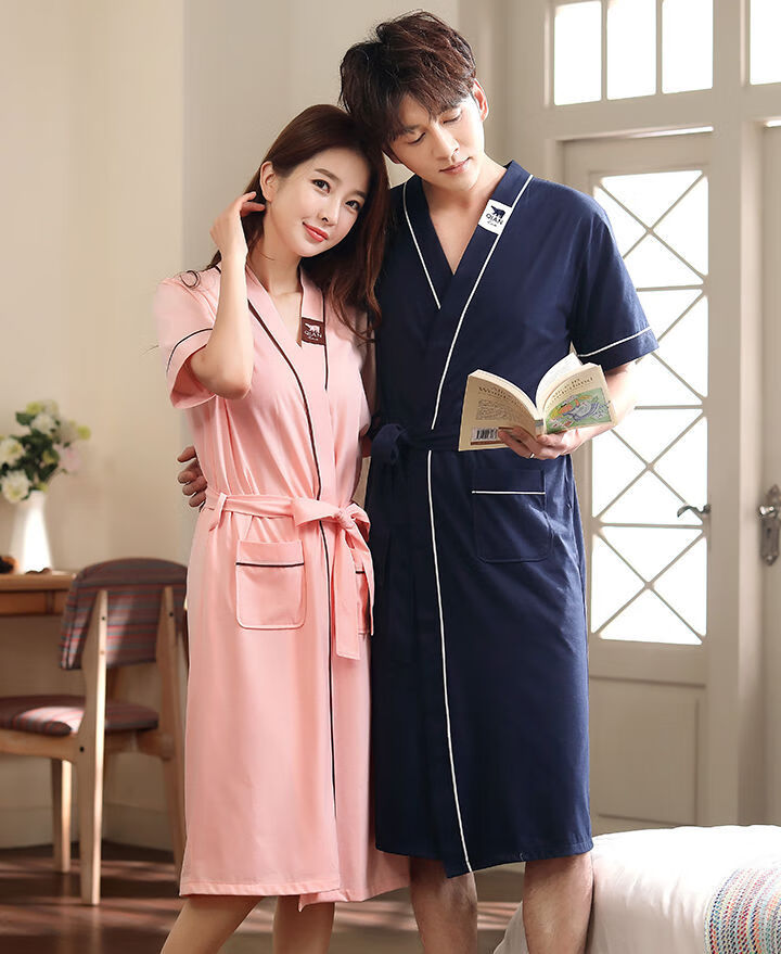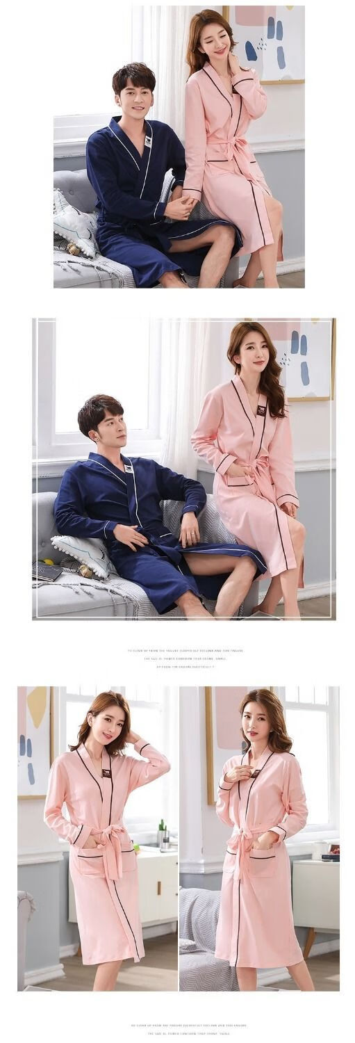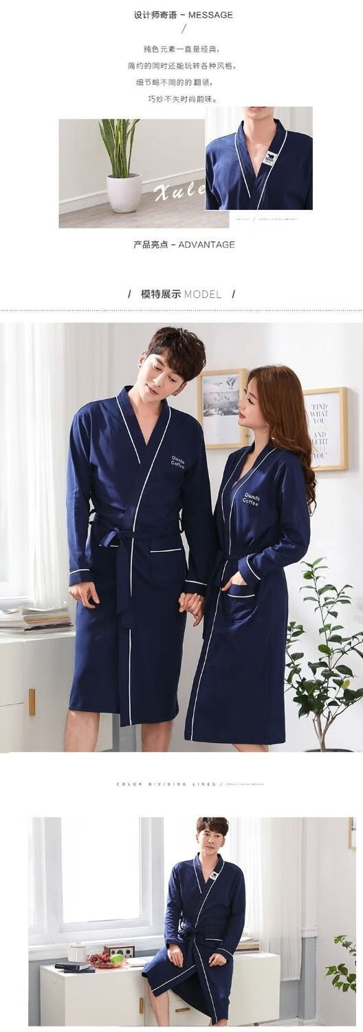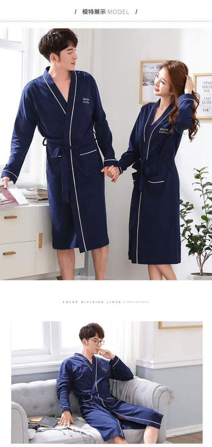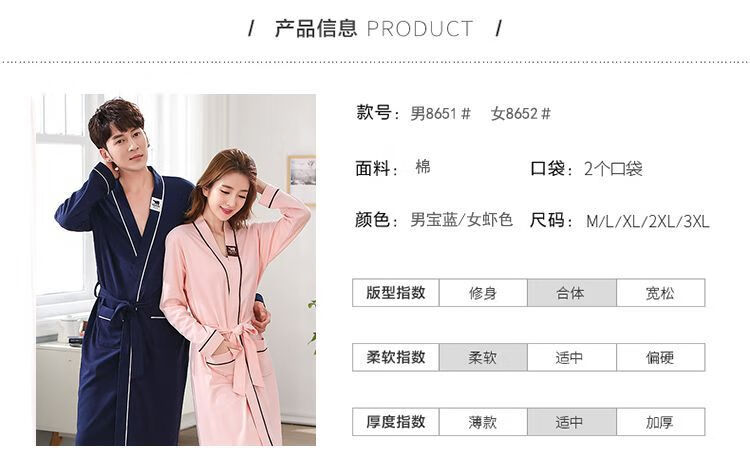 俏丽雅(qiaoliya)情侣睡袍纯棉长袖春秋季男士浴袍女长款浴衣情侣睡衣夏季大码 723女 XL女