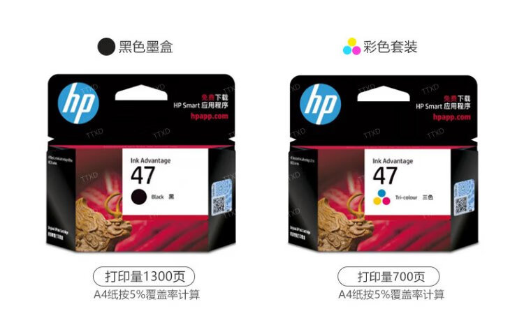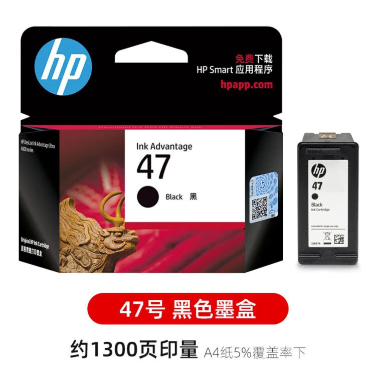 惠普HP原装47黑色墨盒彩色墨水 DJ4826 4825 4828 4829 4877打印机 惠普47黑彩套装黑1300页+彩700页